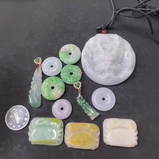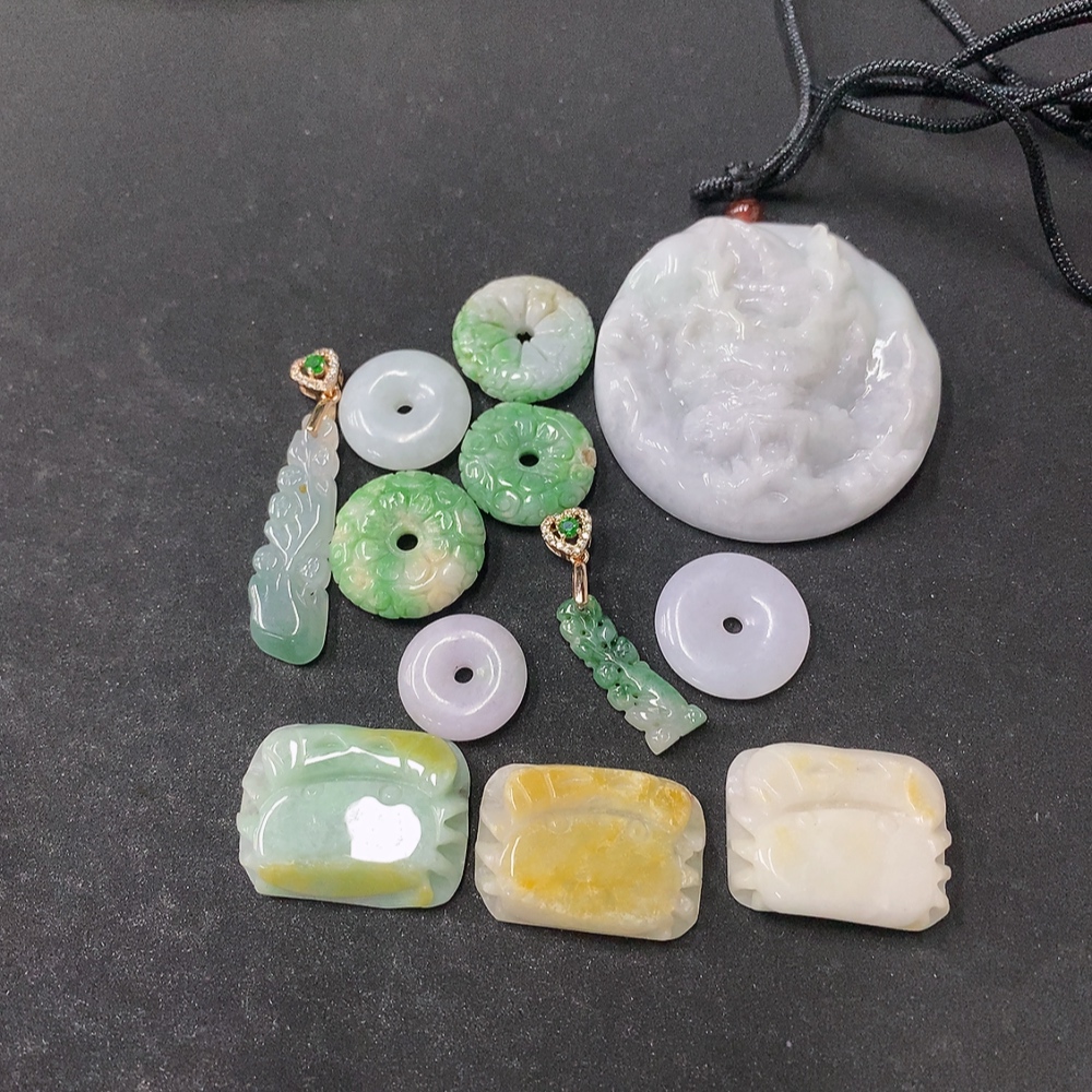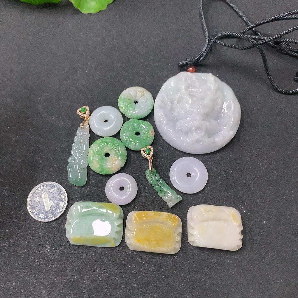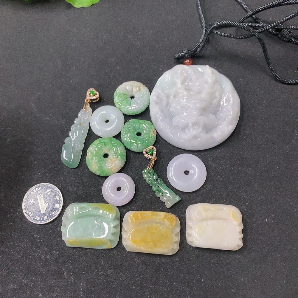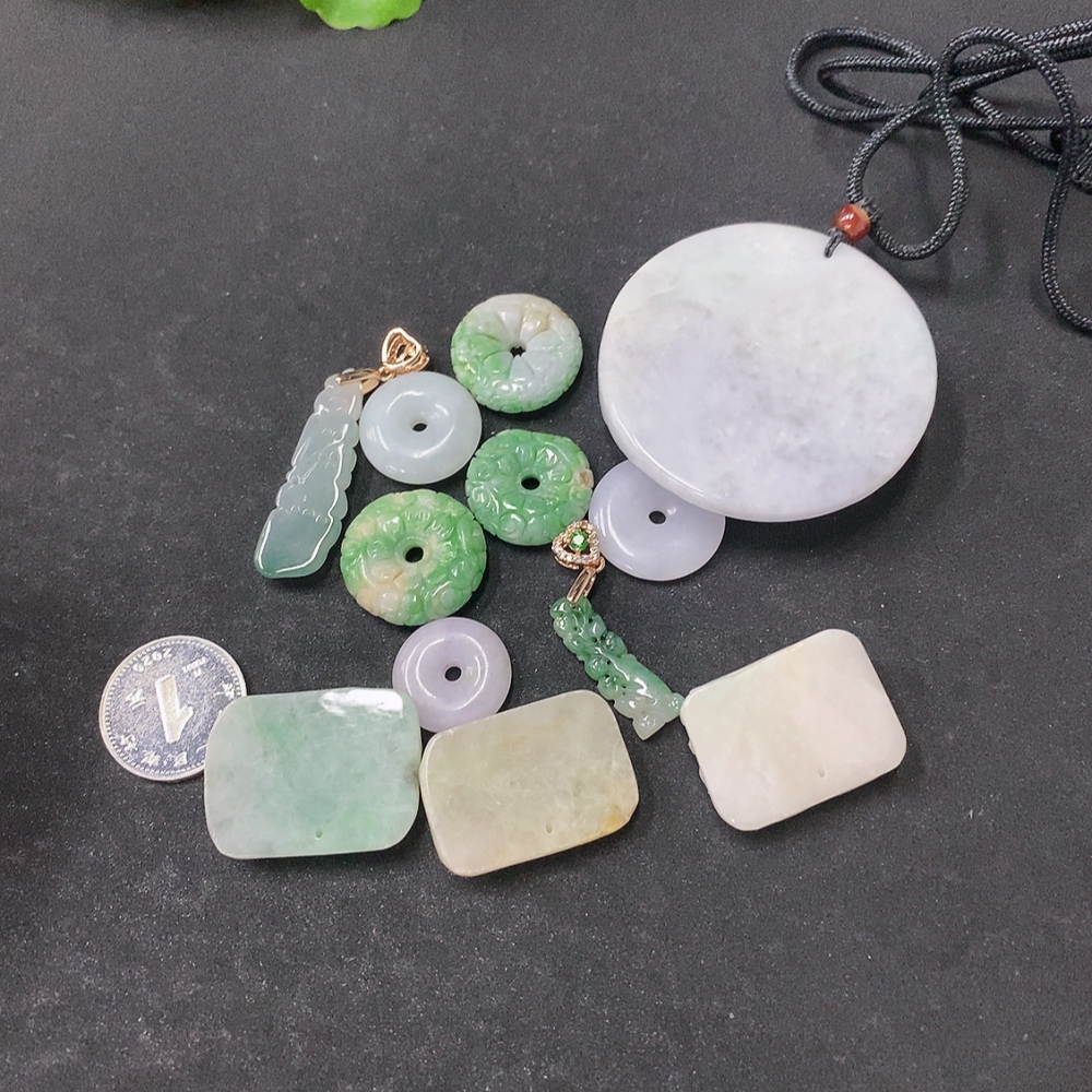 Jadeite Pendant Sell as a Lot Non-Gold Color Origin Undetermined