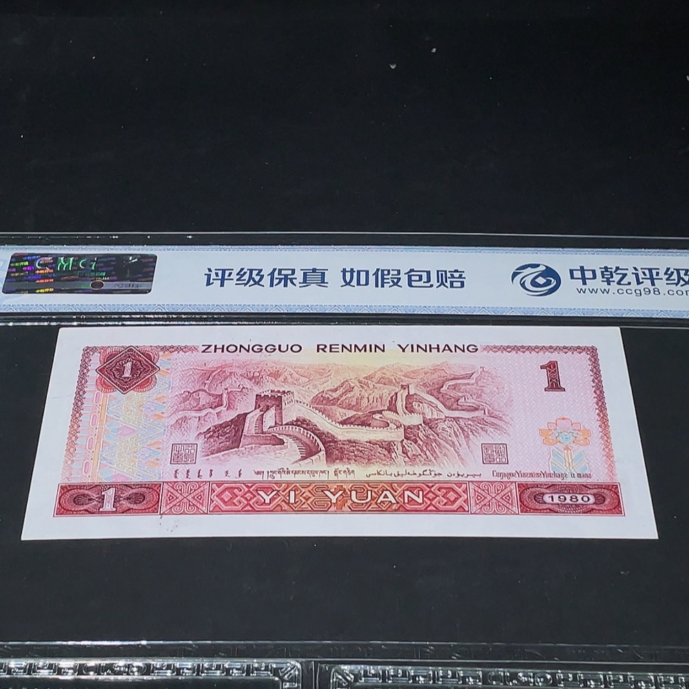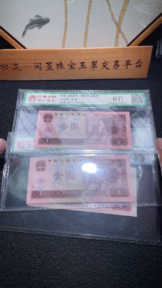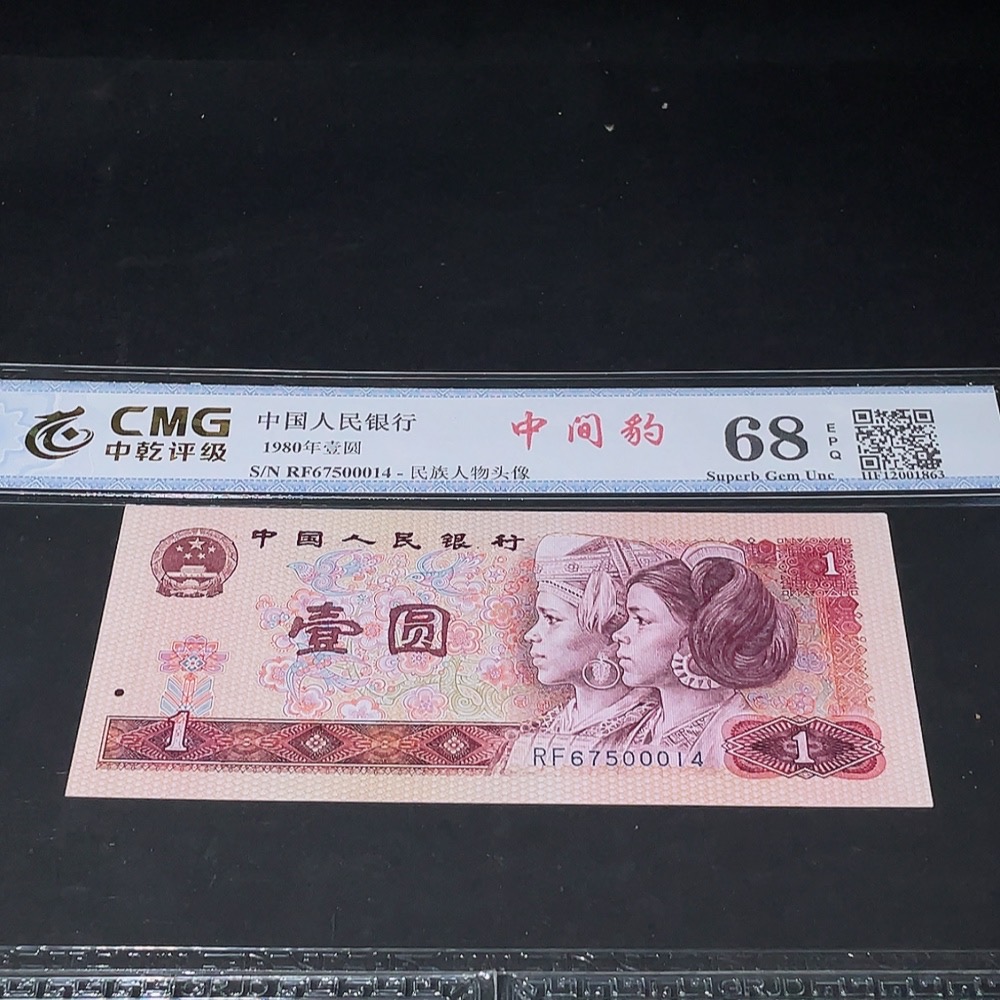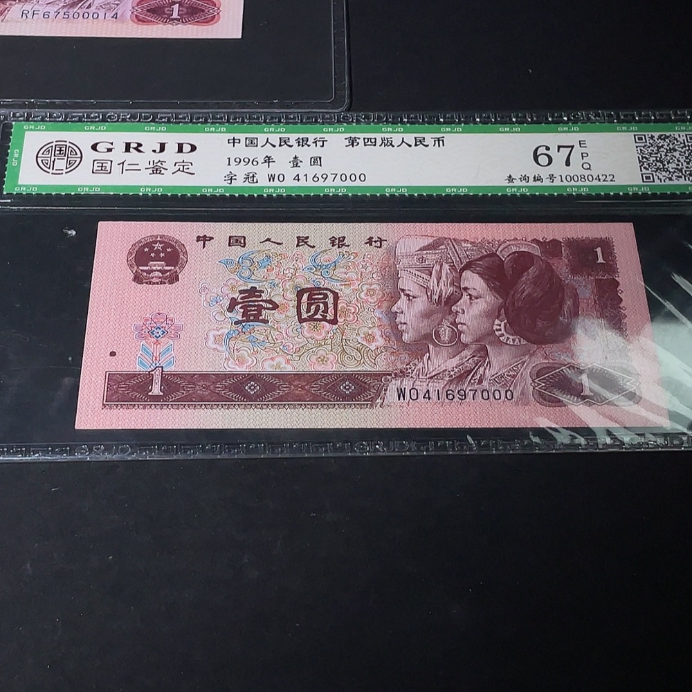 Three Graded Fourth Edition One Yuan Banknotes with Leopard Serial Numbers