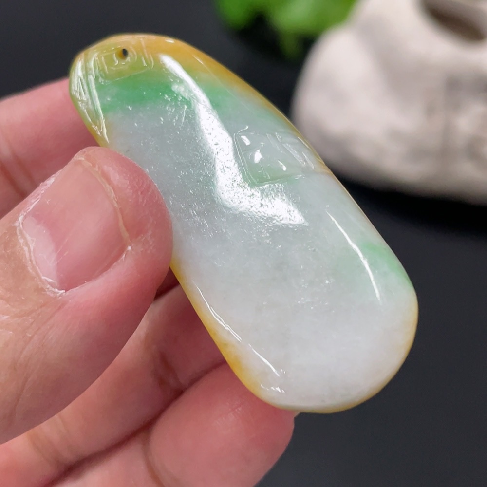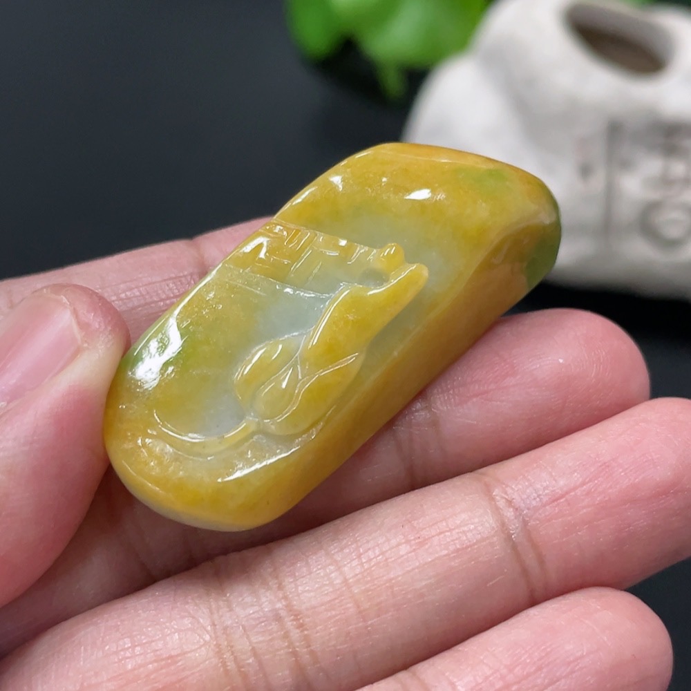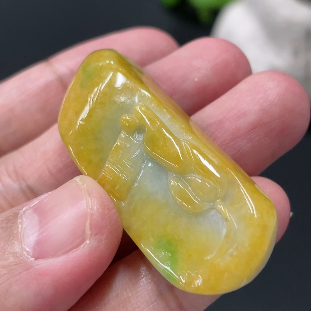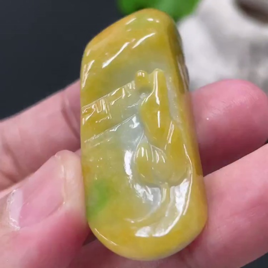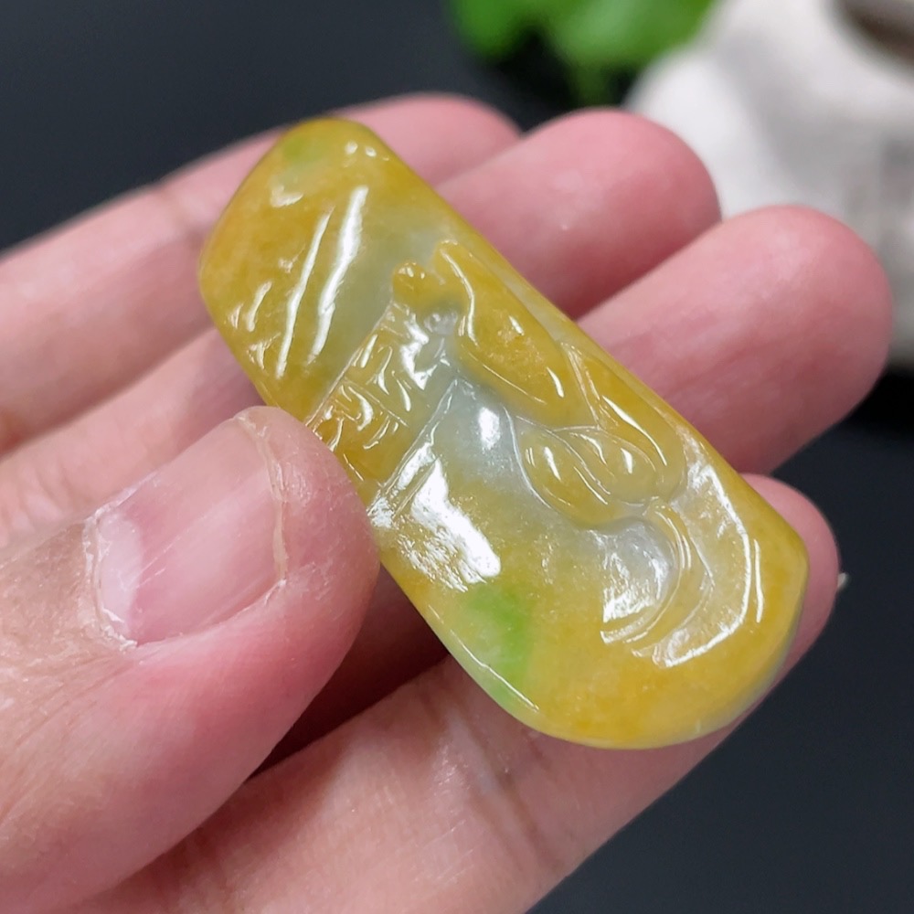 Jadeite Enlightenment Pendant with a total weight of approximately 16 grams, yellow color origin undetermined