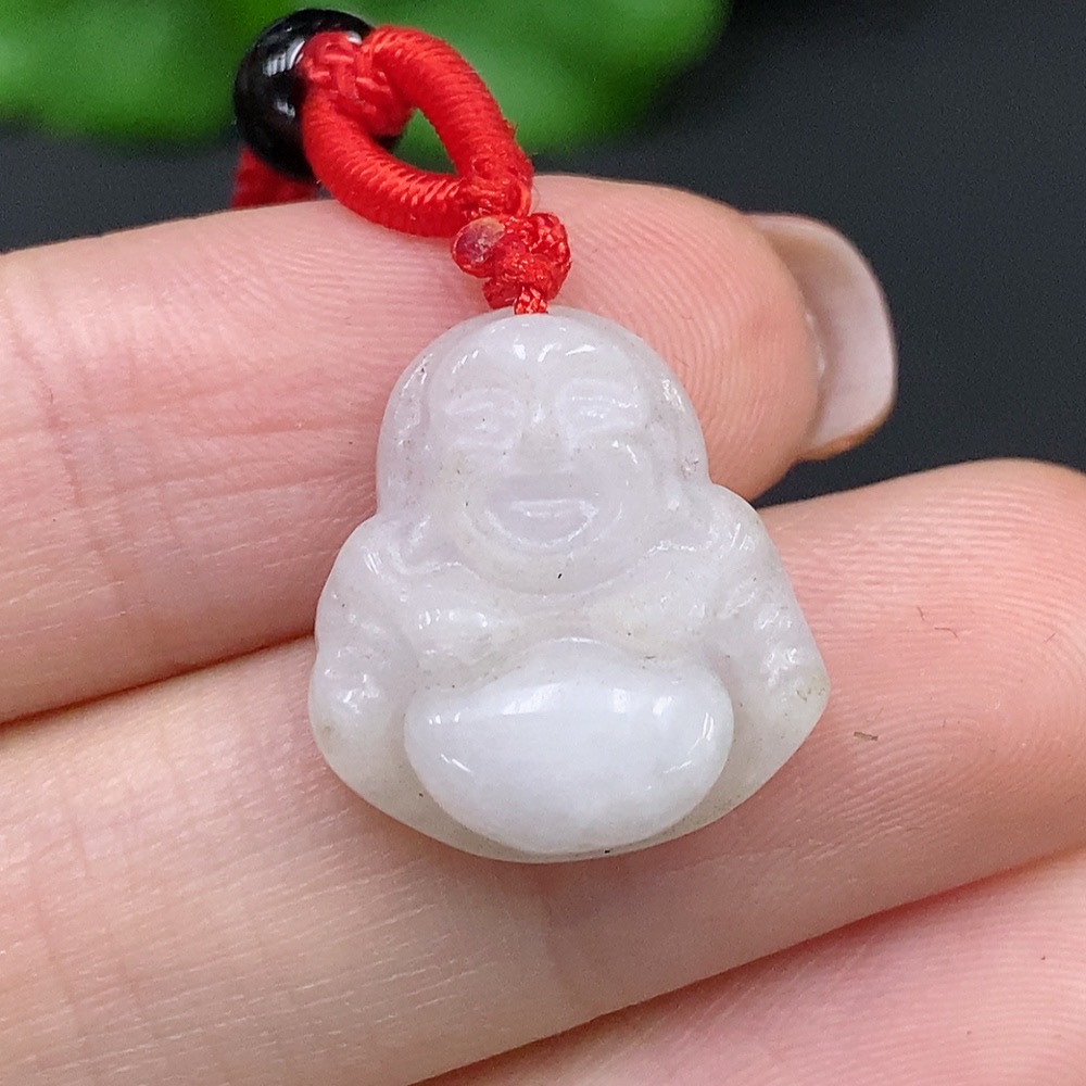 Jadeite Buddha Pendant Total Weight Approx. 4.3g (Including Rope Weight)
