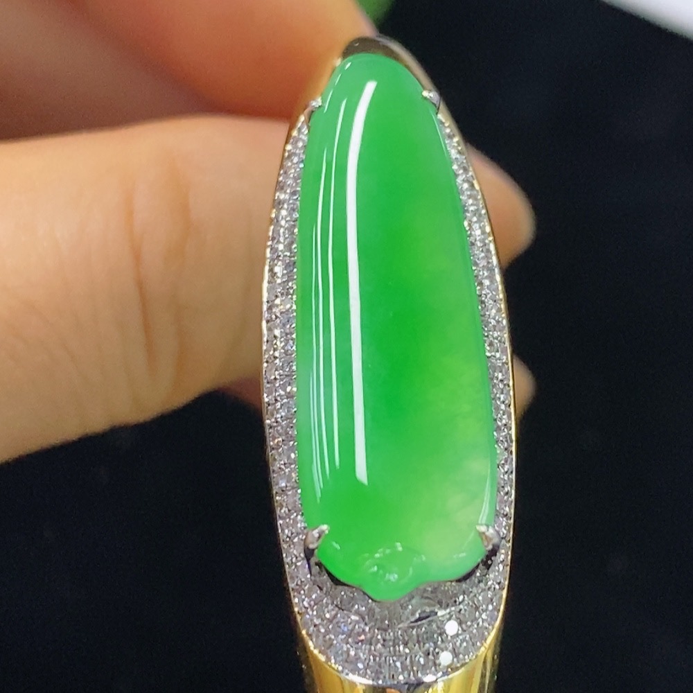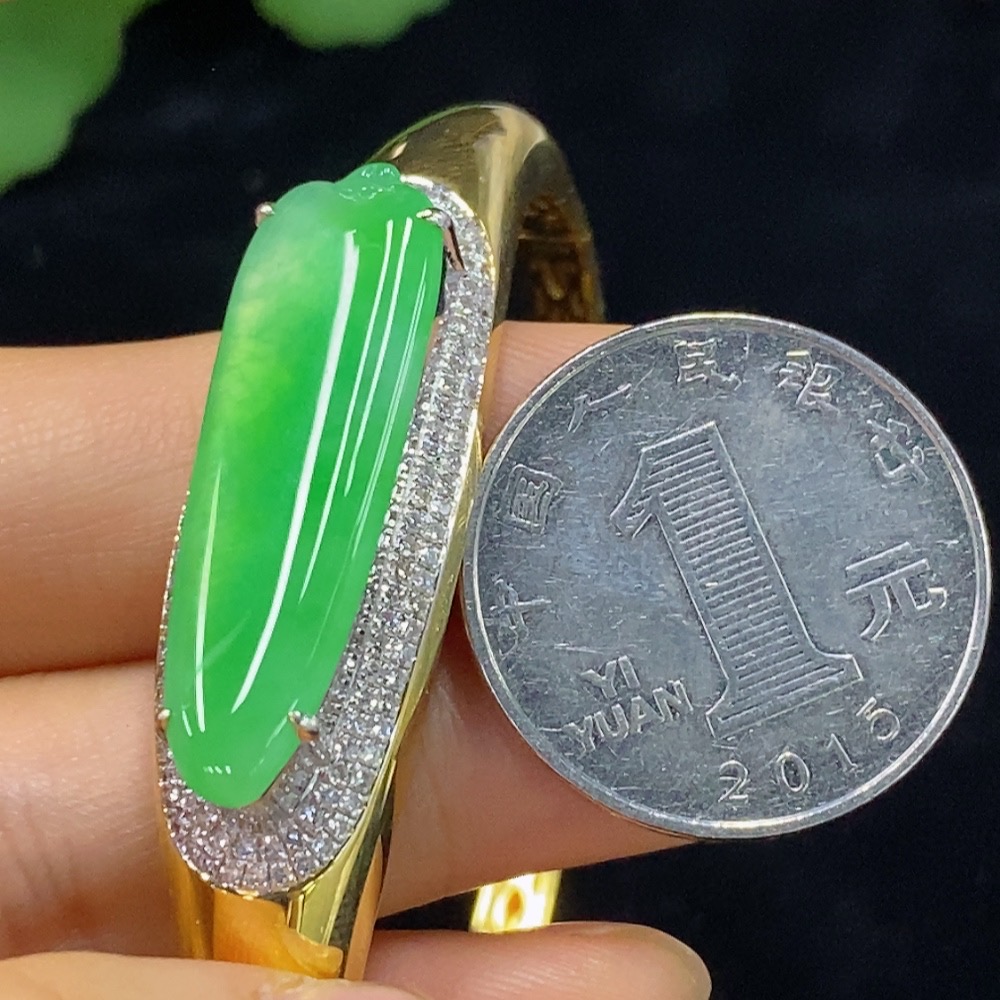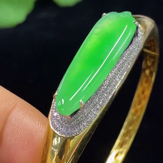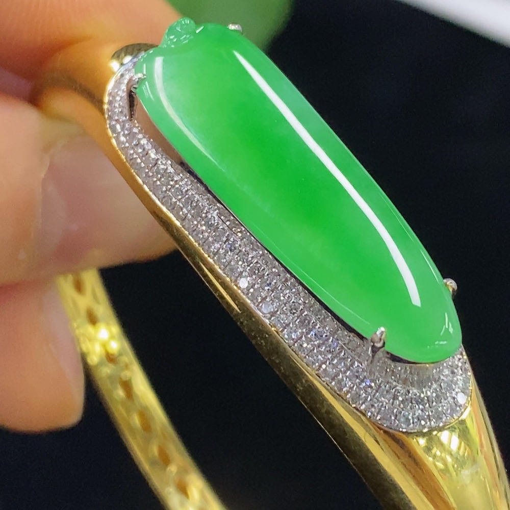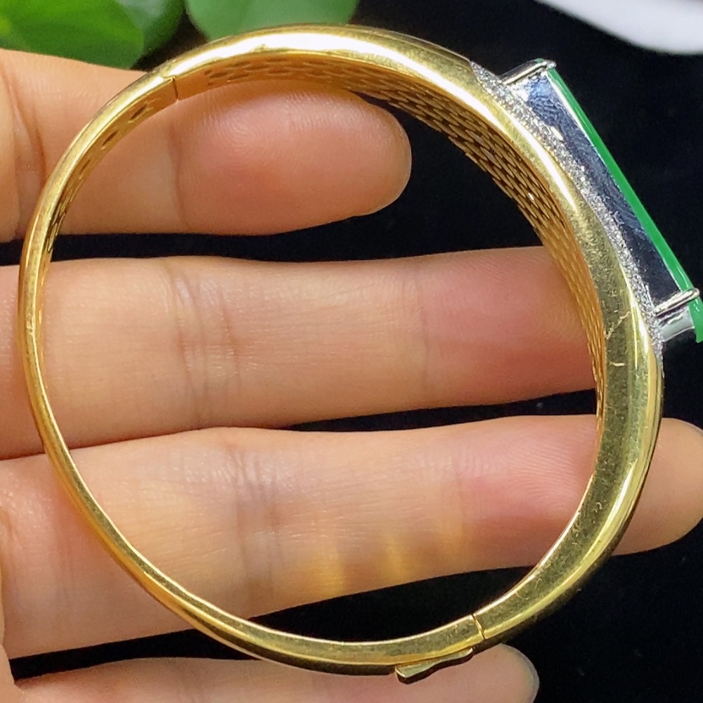 Jadeite Inlaid Bracelet 18k with Diamond Accent, Total Weight Approx. 16.37g