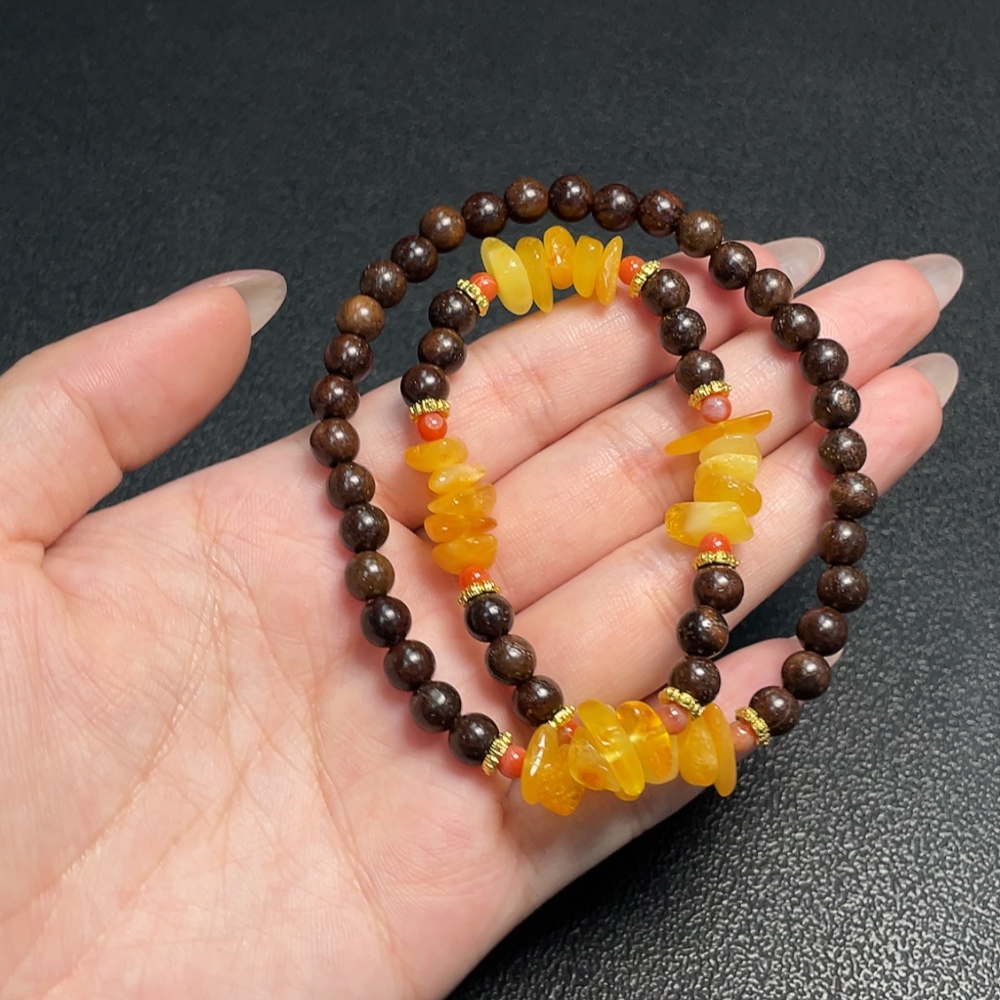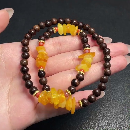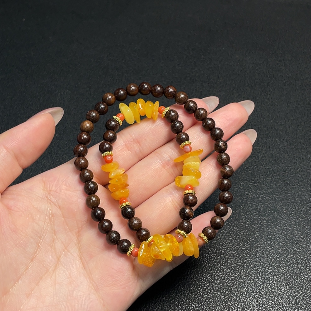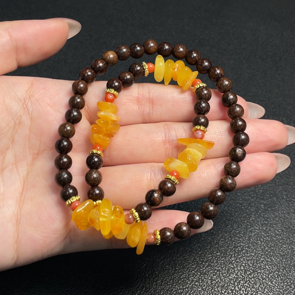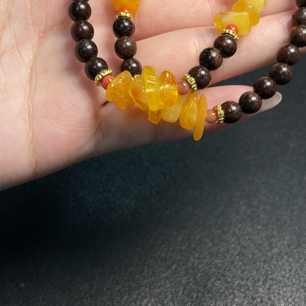 Amber Beeswax Bead Necklace with Southern Red Agate, Non-Natural Accent Stones, Total Weight Approx. 12.56g, Size 11.5mm, Non-Gold
