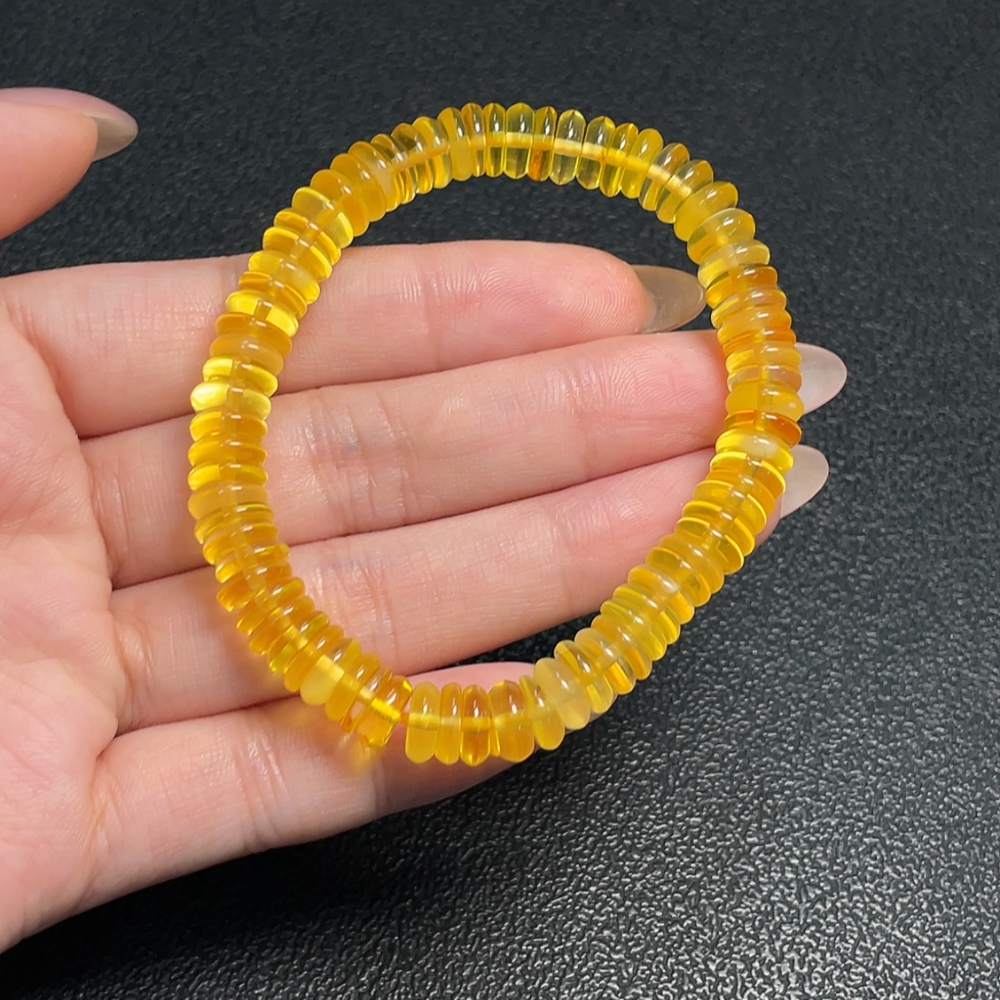 Amber and Beeswax Bracelet, total weight approx. 7.71g, bead size approx. 7.8mm