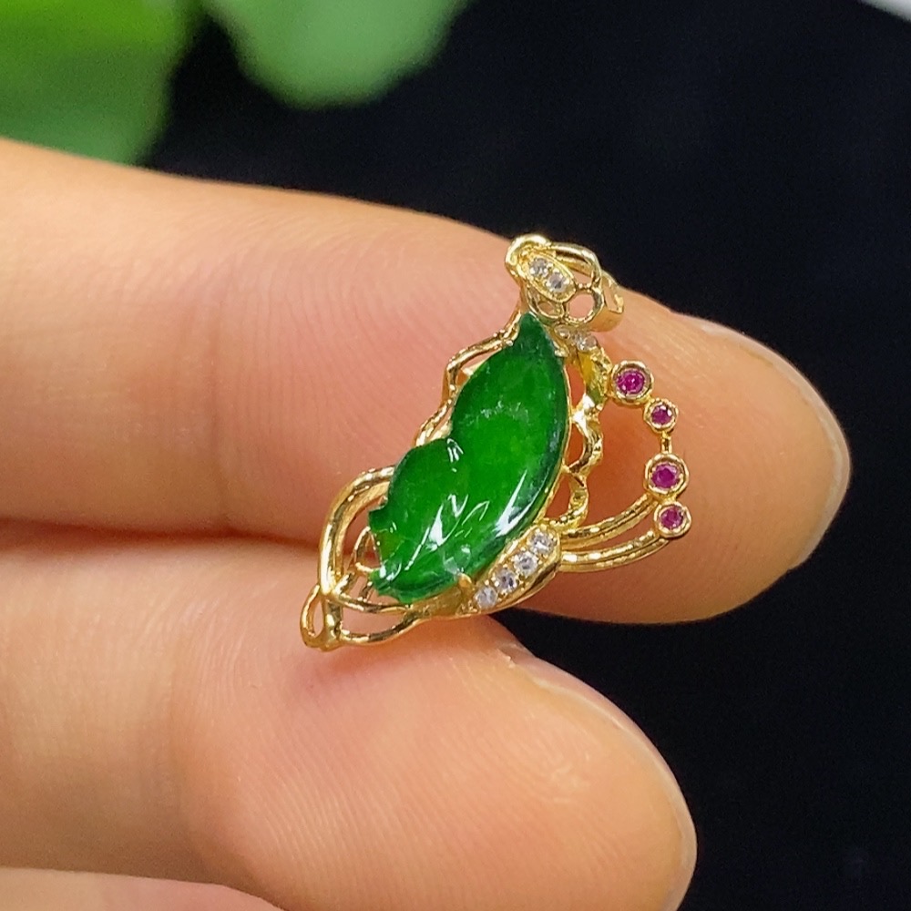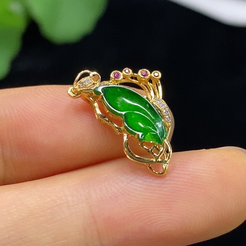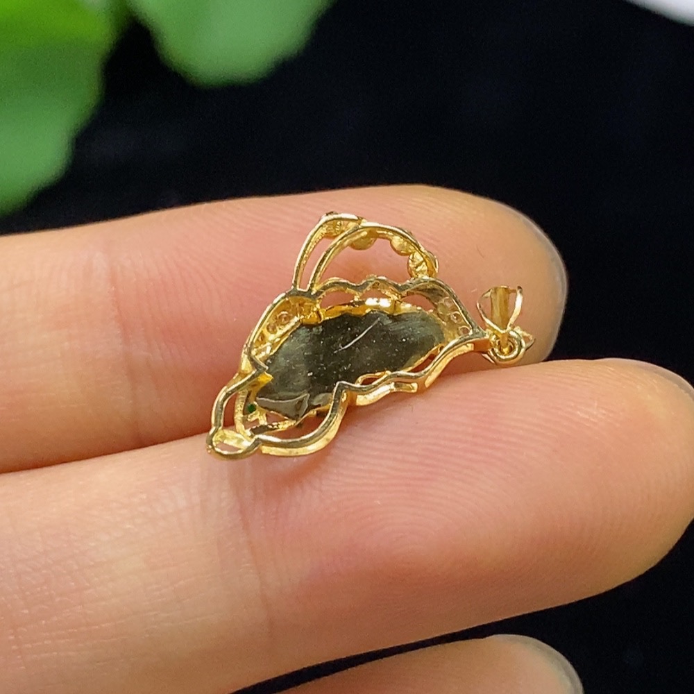Jadeite Inlaid Pendant 18k with Diamond Accents (Colorless) Damaged Total Weight Approx. 0.8g