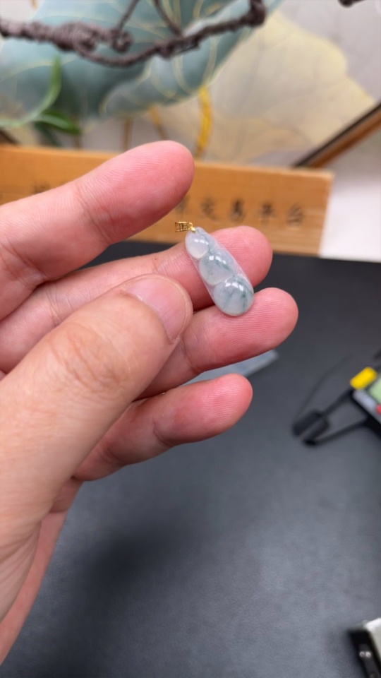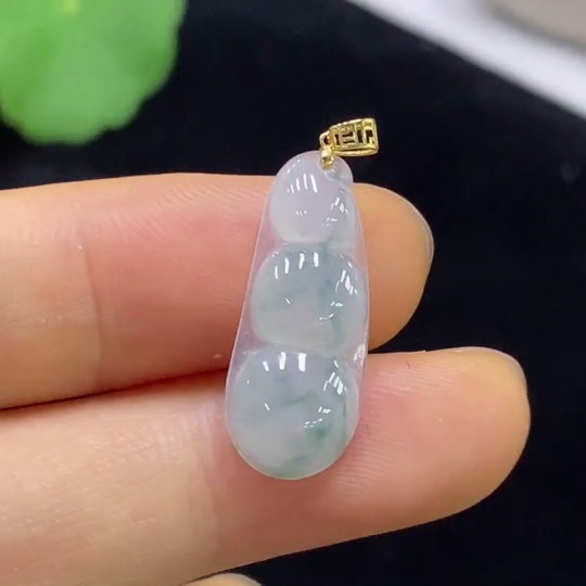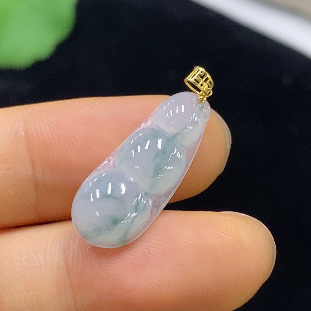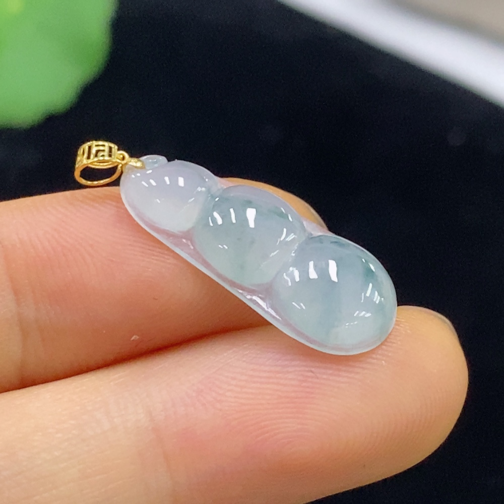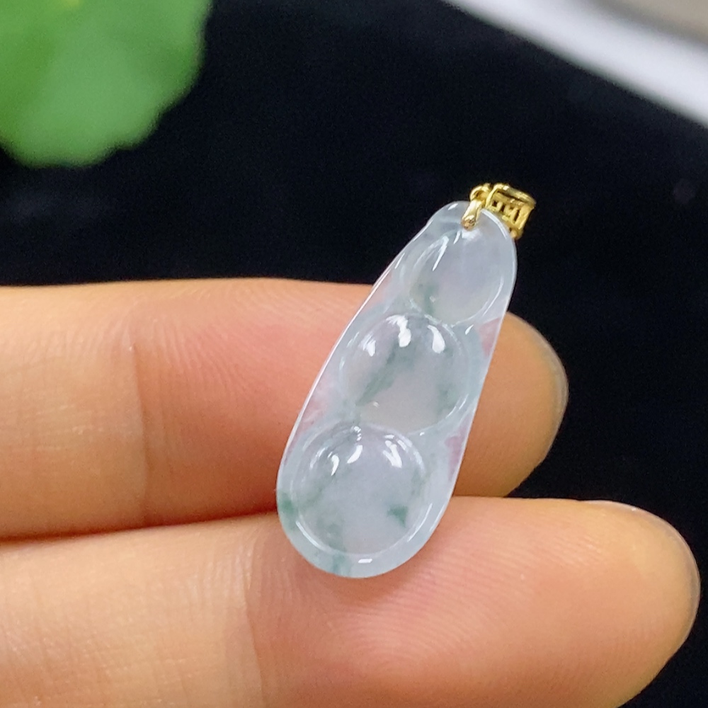 Jadeite Pendant Bean with 18k Bezel, Total Weight Approximately 1.24g