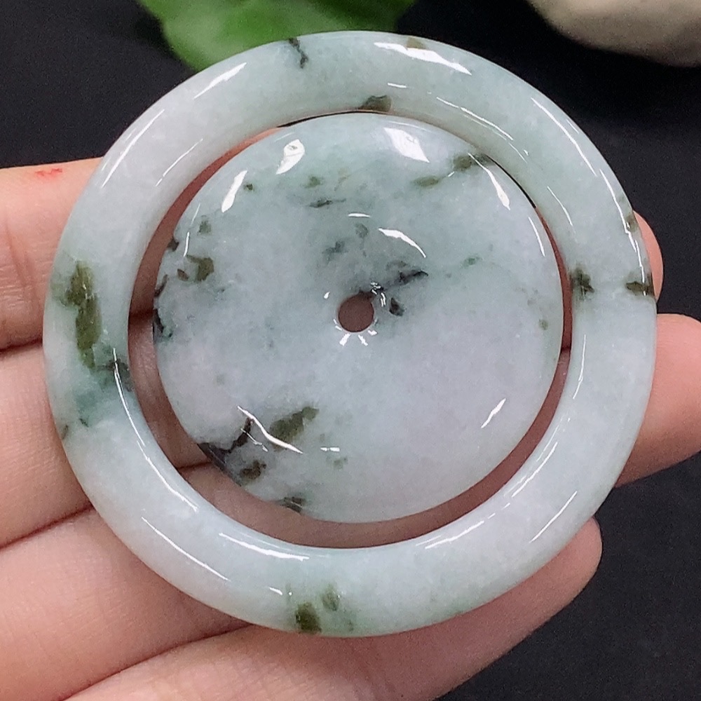 Jadeite Mother-and-Child Button Set Containing Other Mineral Components