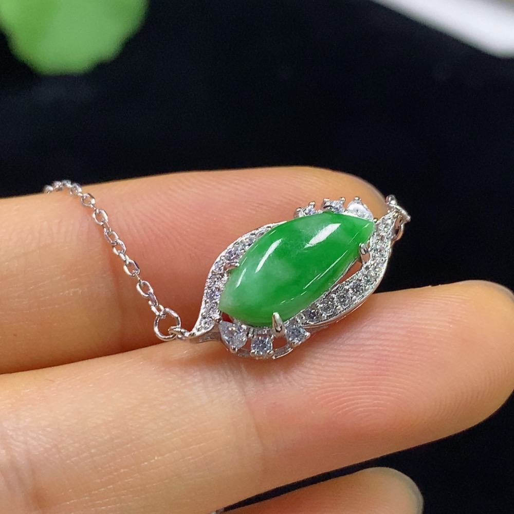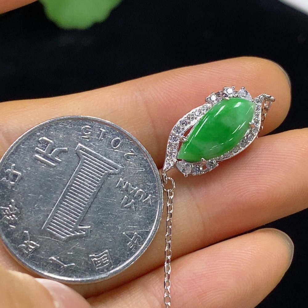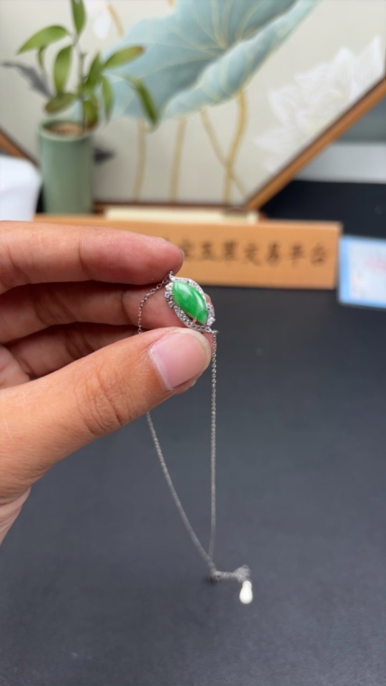 Jadeite Inlaid Pendant Non-Gold Total Weight Approx. 2.82g (Including Chain)