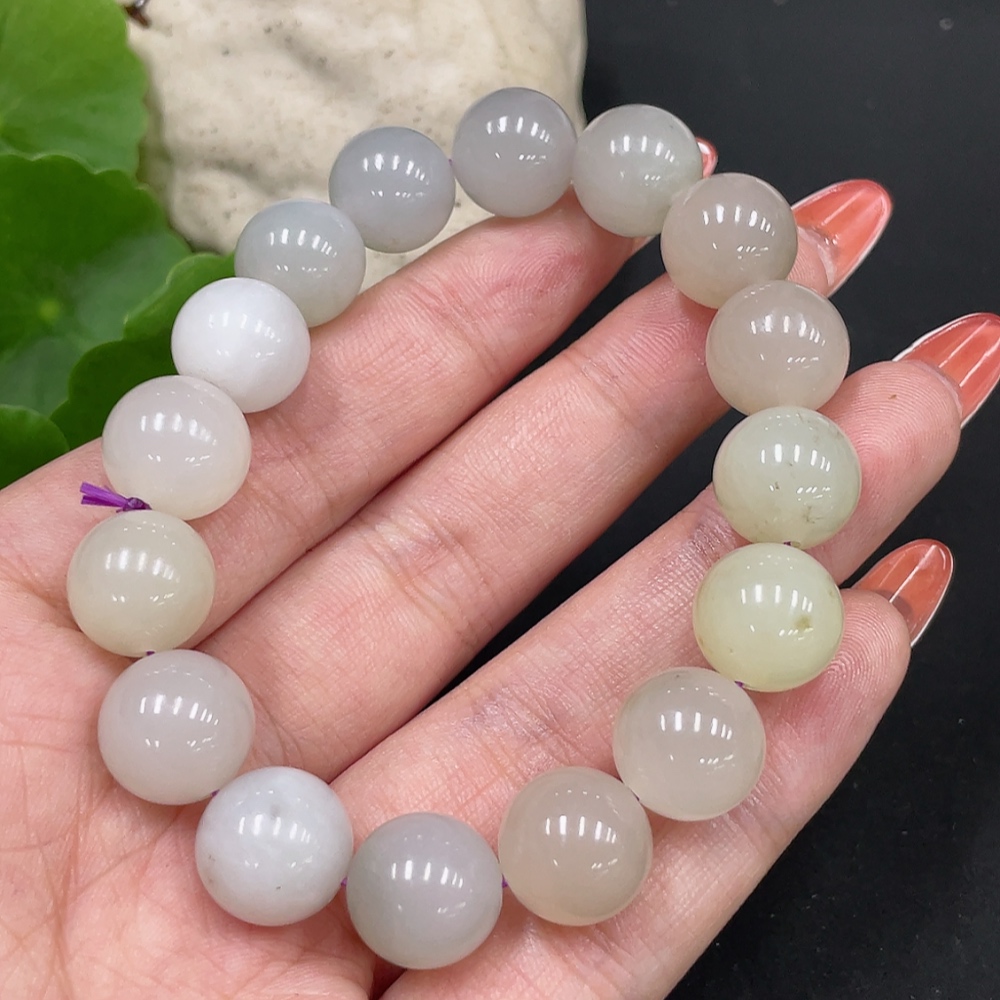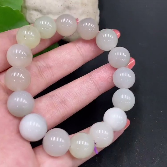 Hetian Jade Bracelet, Approx. 12mm Beads, Total Weight Approx. 42.4g