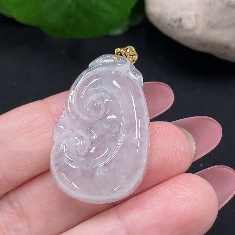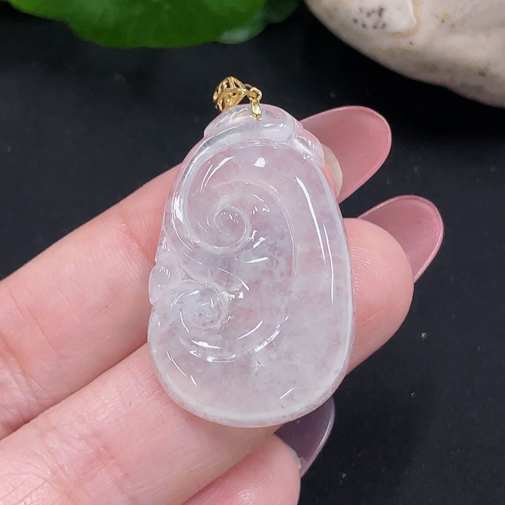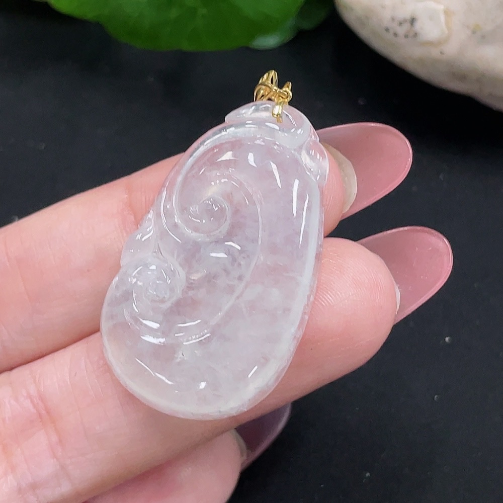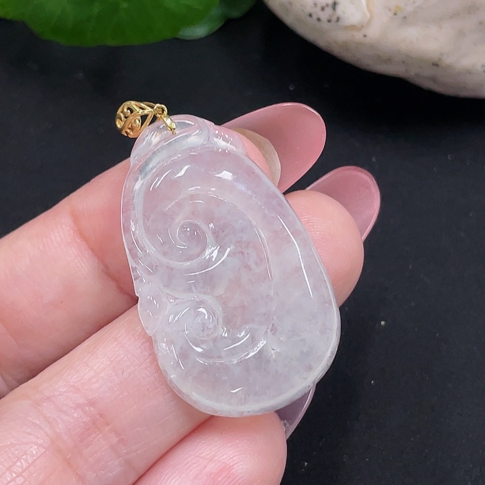 Jadeite Ruyi Pendant 18K Gold Total Weight Approx. 5.3g