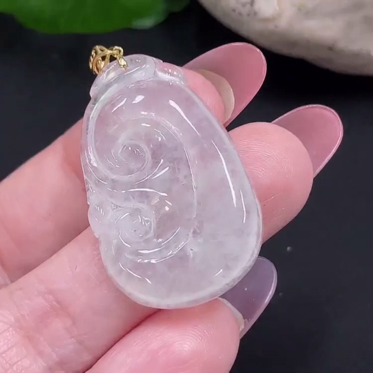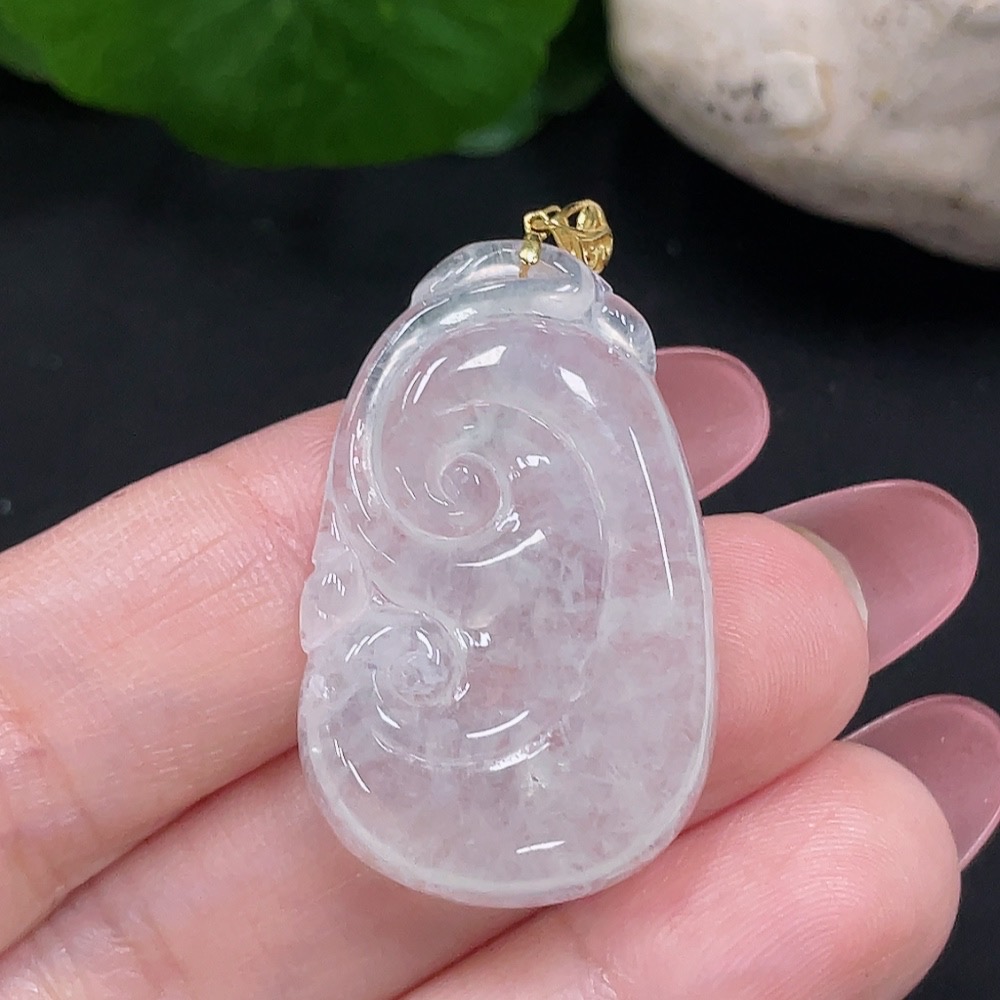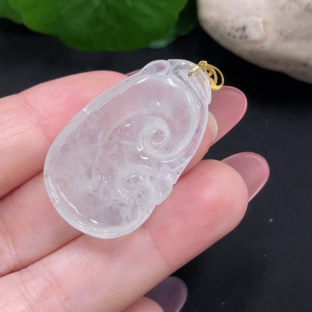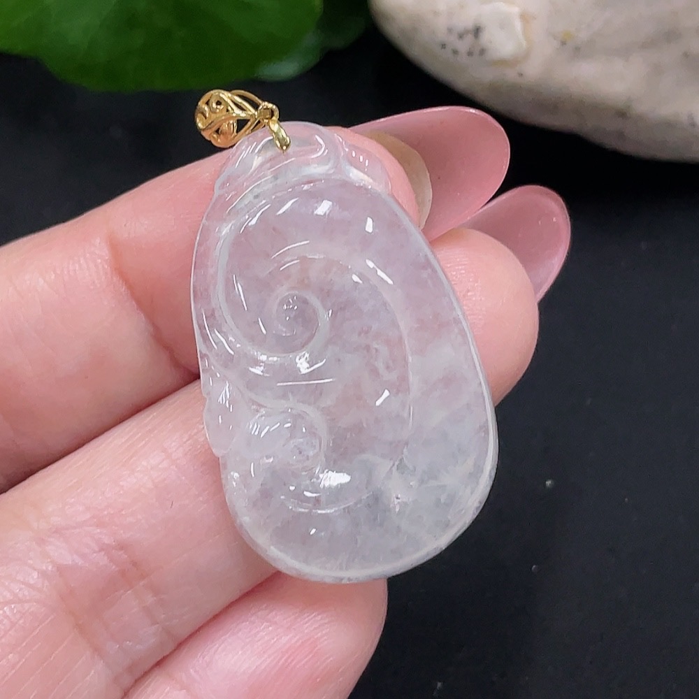 Jadeite Ruyi Pendant 18K Gold Total Weight Approx. 5.3g