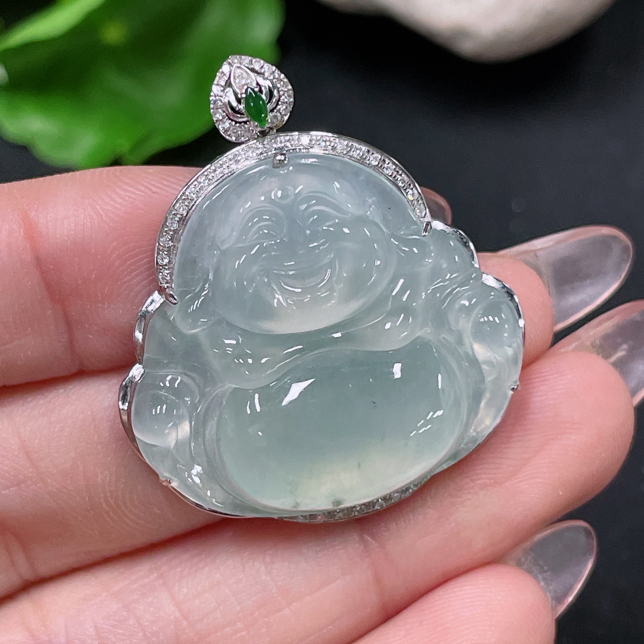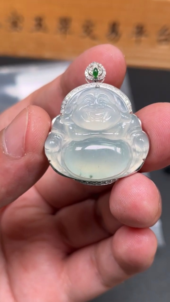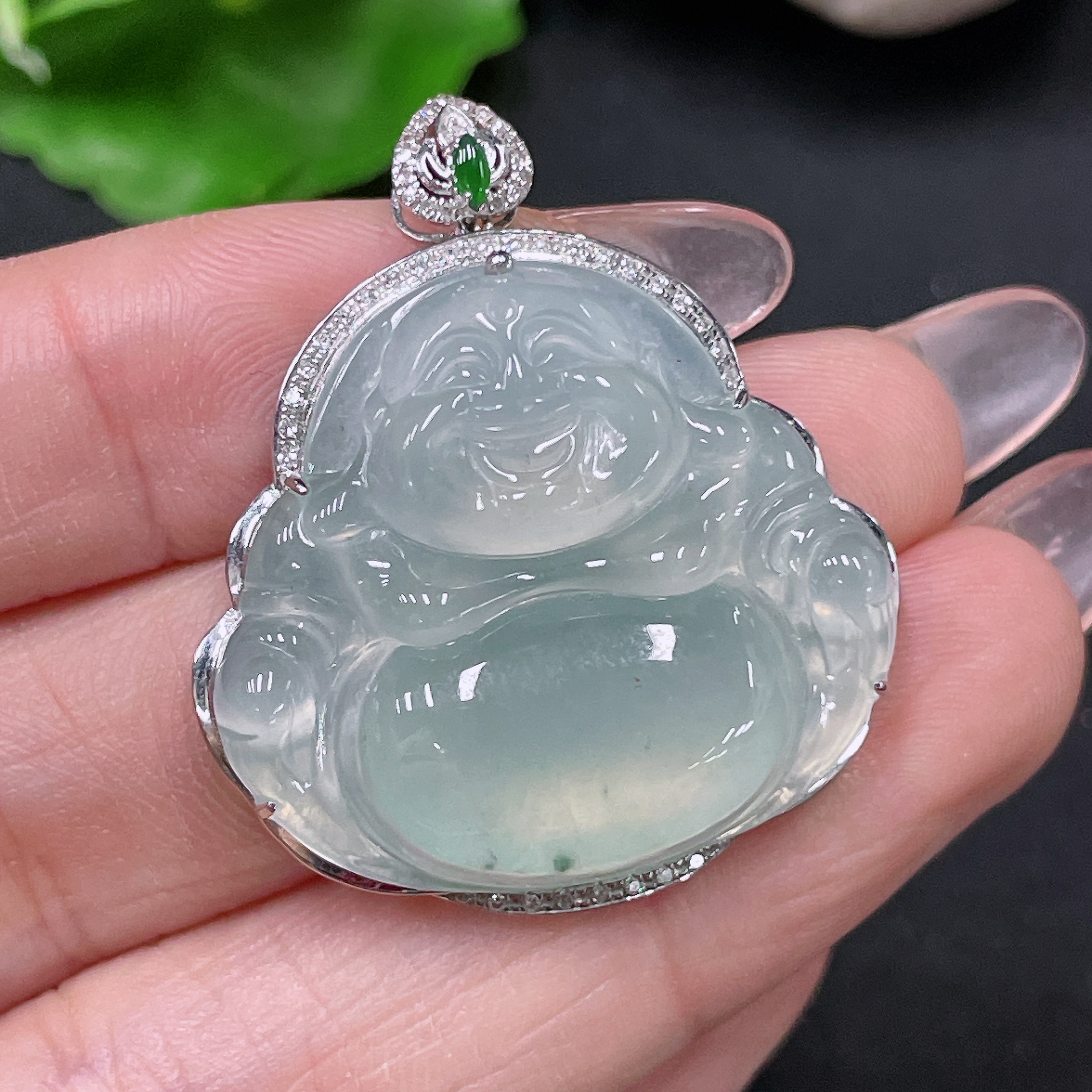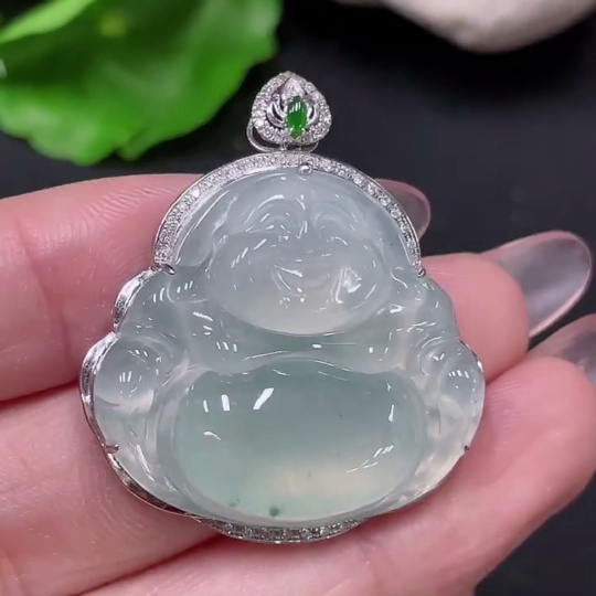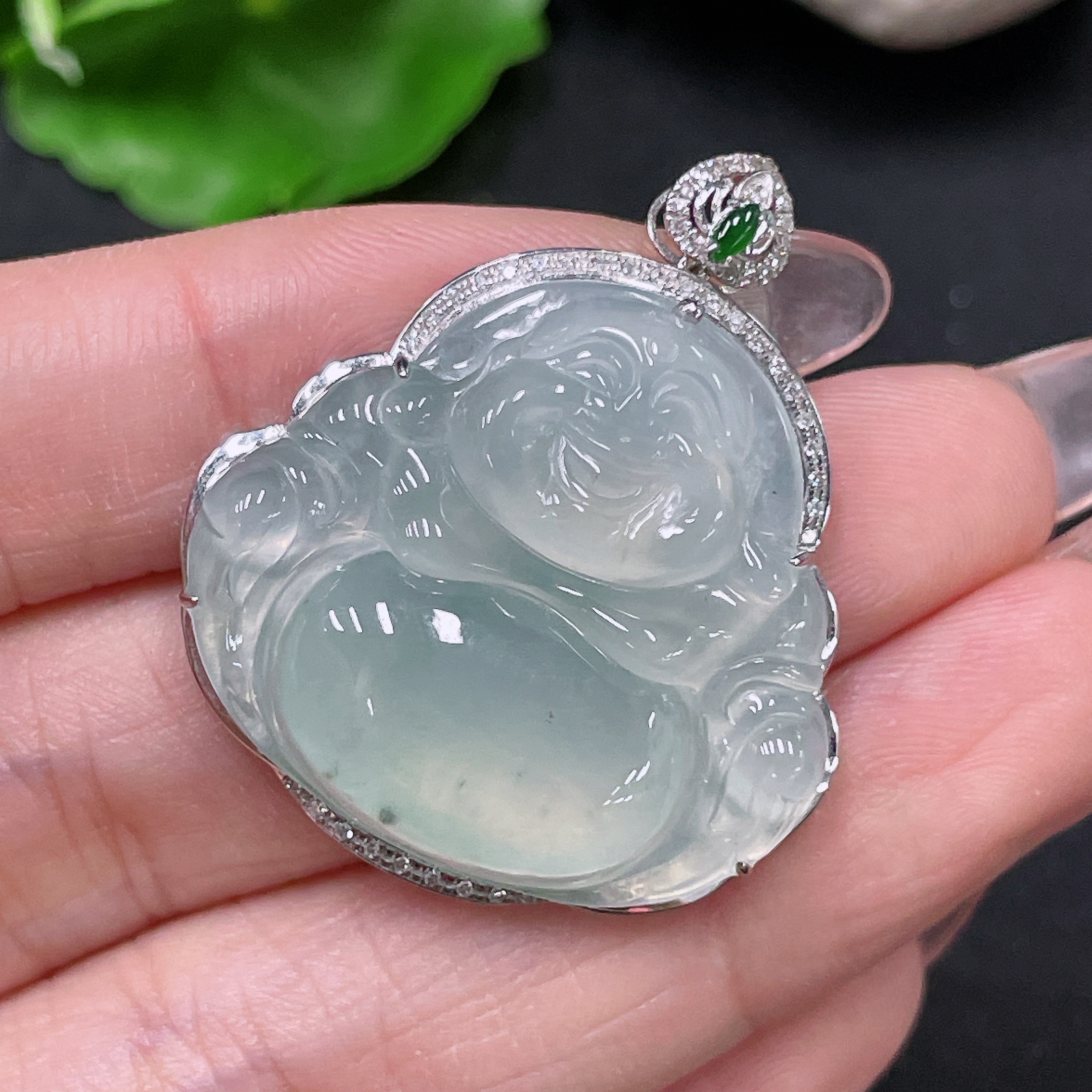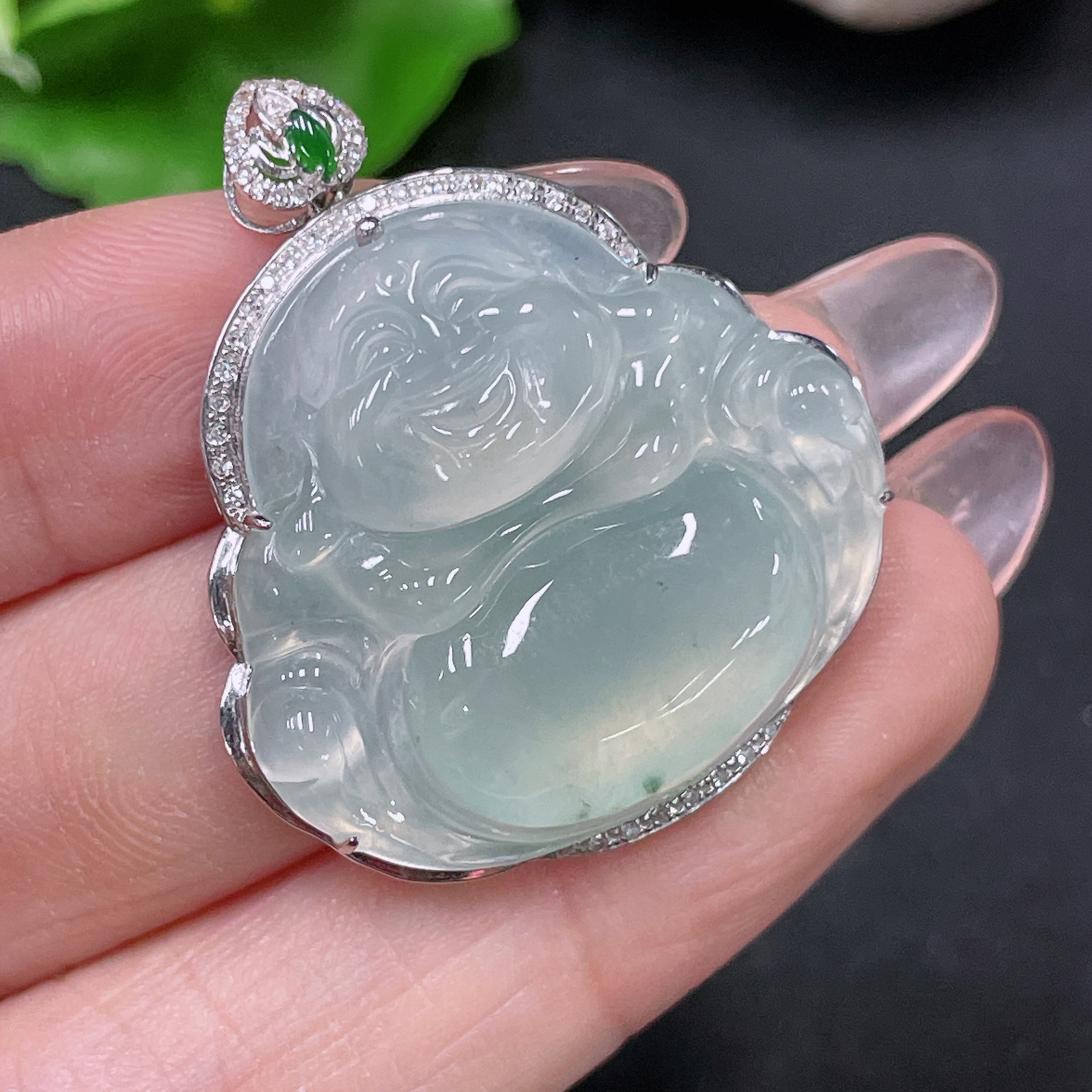 Jadeite Buddha Inlay Piece 18k Gold Inlaid with Diamonds Total Weight Approximately 8.48g