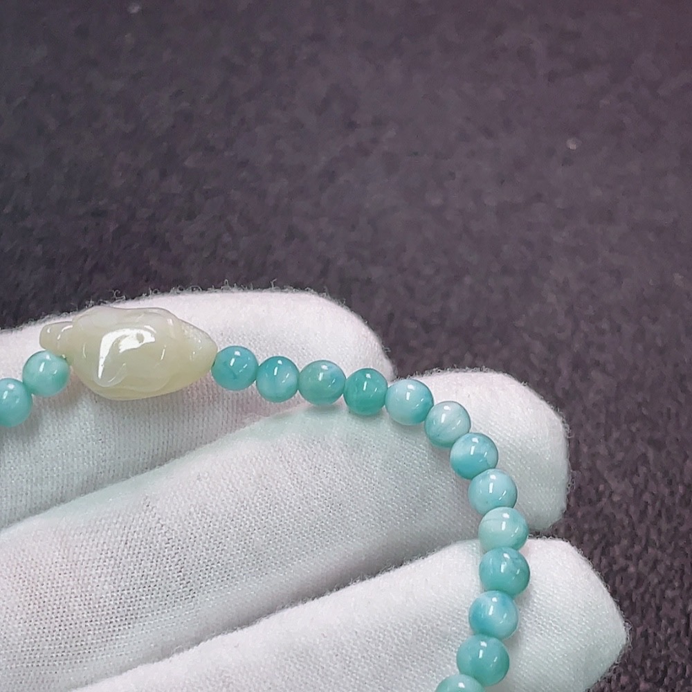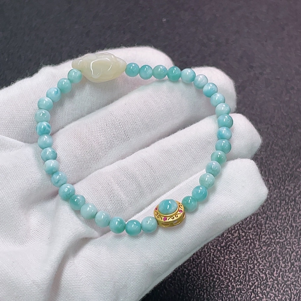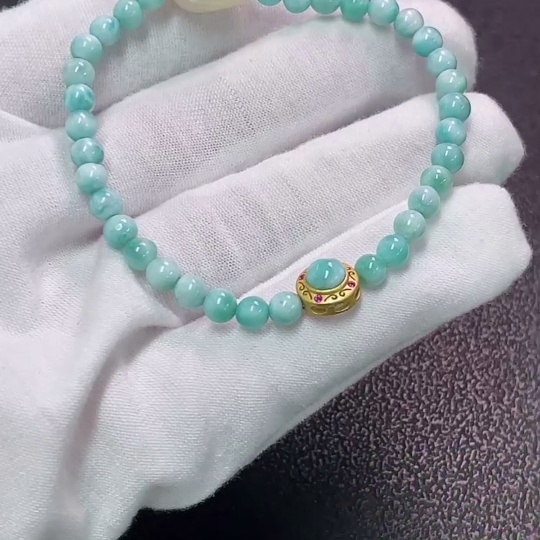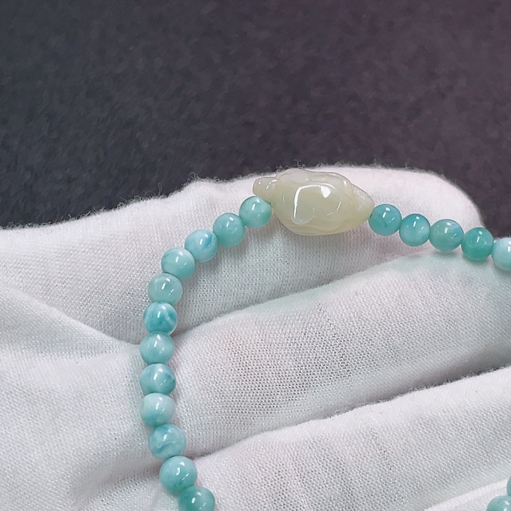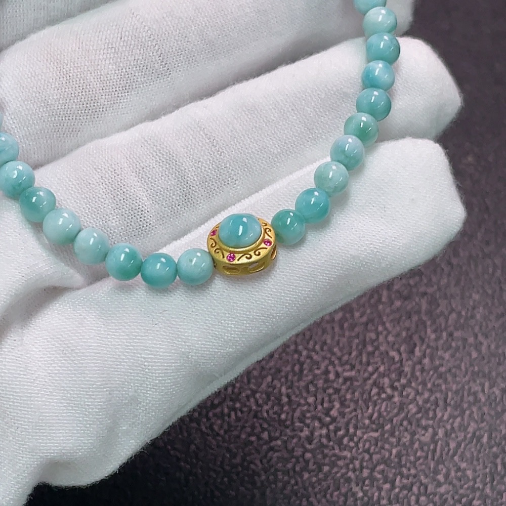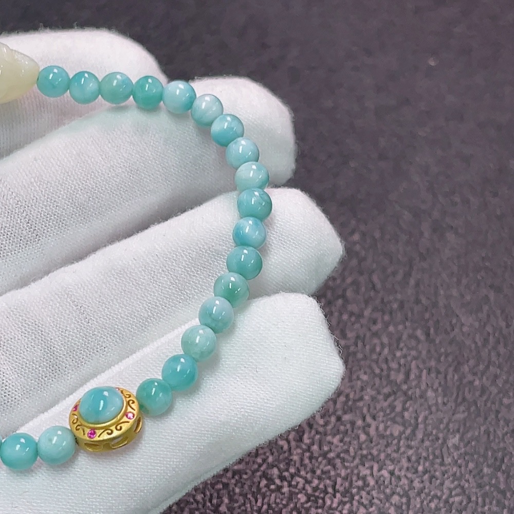 Larimar Bracelet with Visible Organic Inclusions, Non-Natural Accent Stones, Non-Metal, Total Weight Approx. 7.07g, Bead Size 4.3mm
