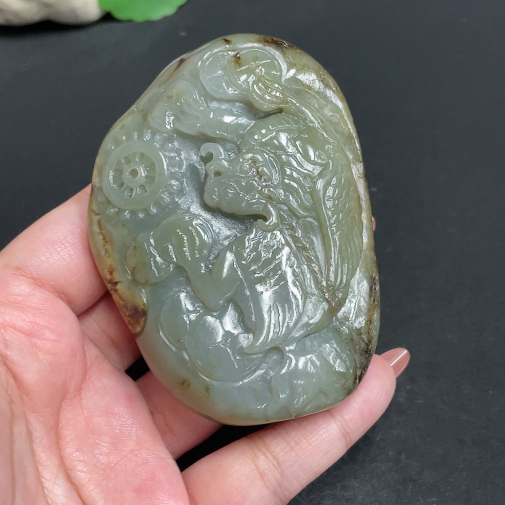 Hetian Jade Seed Material Handheld Carving Pi Xiu Total Weight About 225g Undetermined Skin Color Origin
