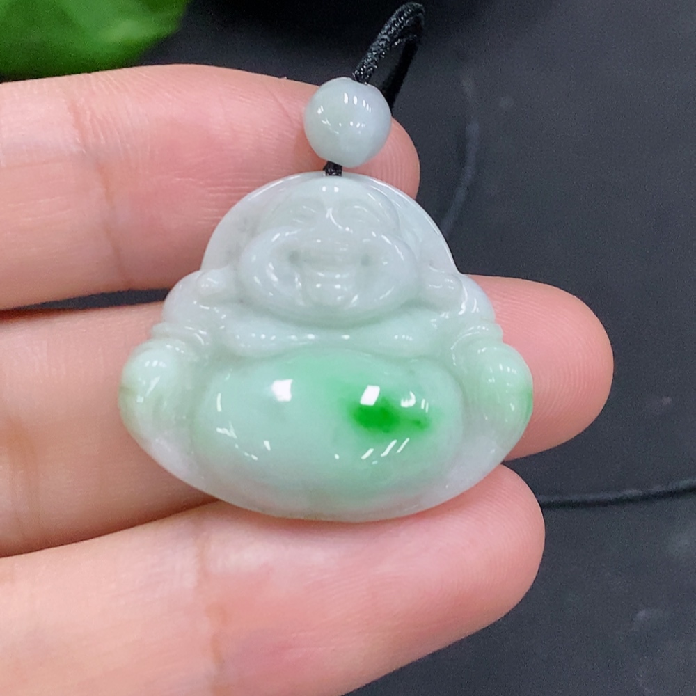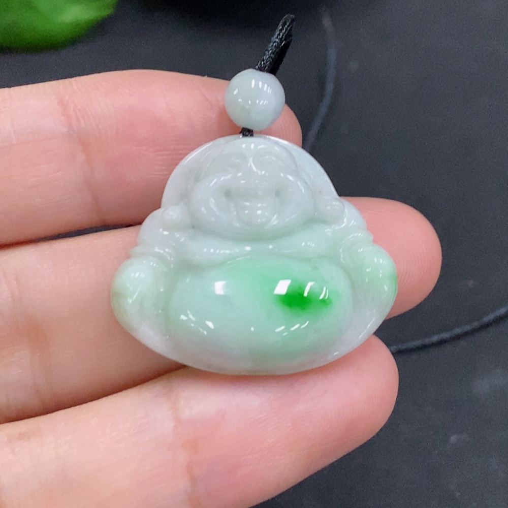 Jadeite Buddha Pendant with Cord, Total Weight Approx. 6.7g