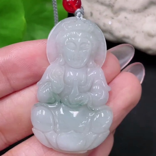 Jadeite Guanyin Pendant Total Weight Approx. 10.7g (Beads Non-A)