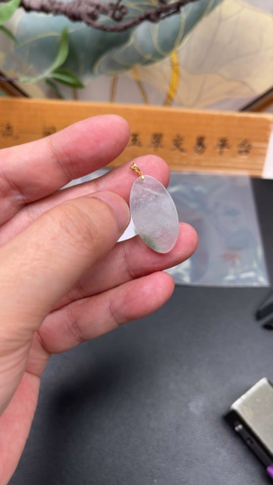 Jadeite Plain Pendant with 18K Gold Clasp Total Weight Approx. 2.9g