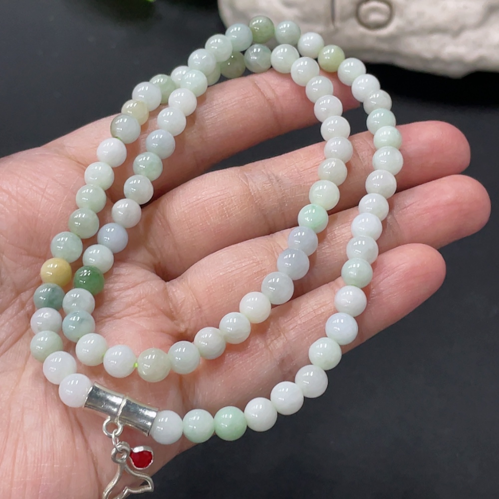 Jadeite Bead Necklace Approx. 5.8mm Total Weight Approx. 27g Non-Gold Clasp