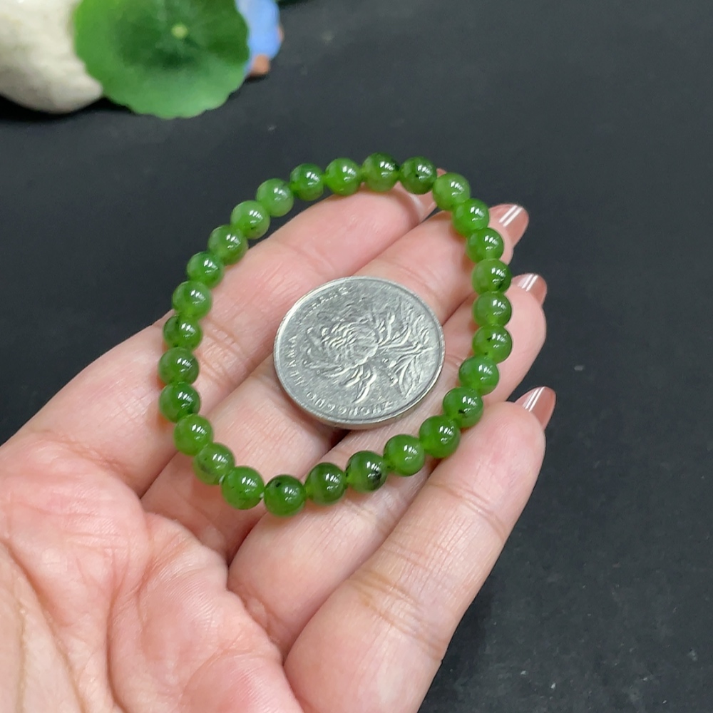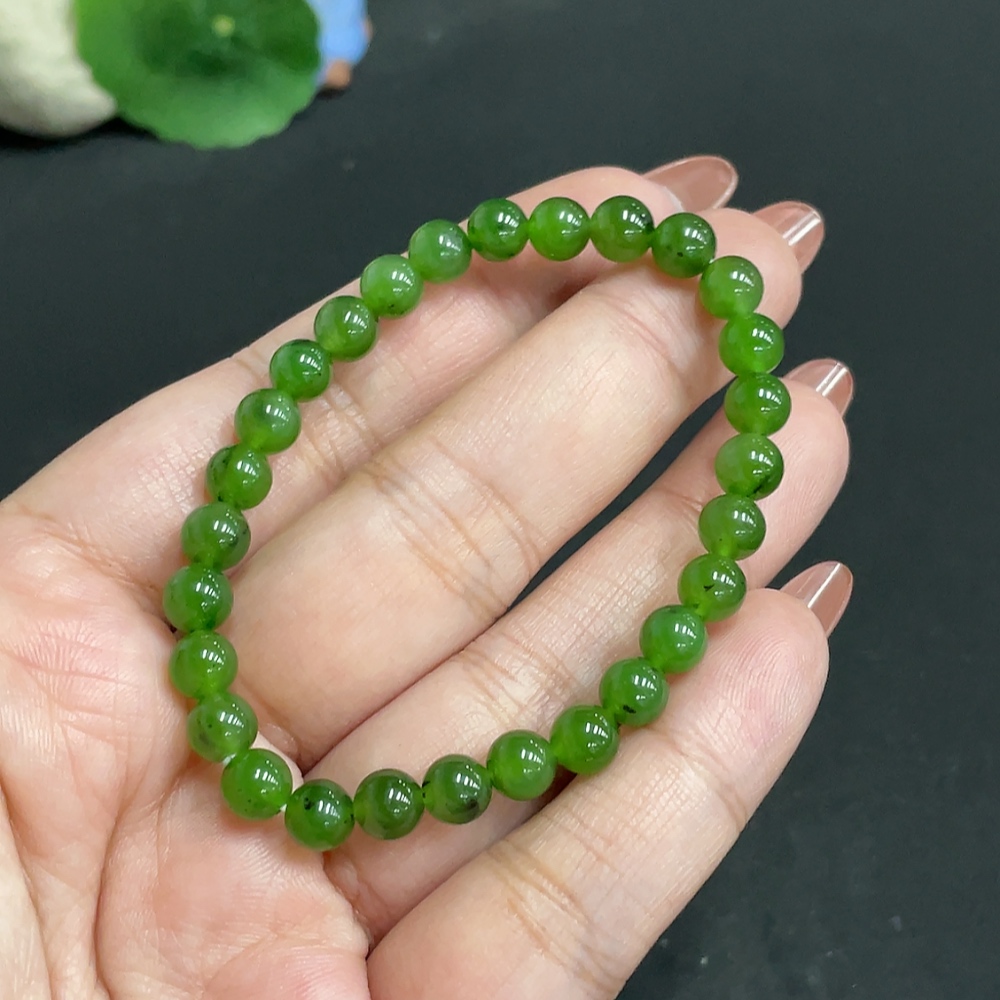 Hetian Jade Jasper Bead Bracelet, approx. 6mm, total weight about 9.6g