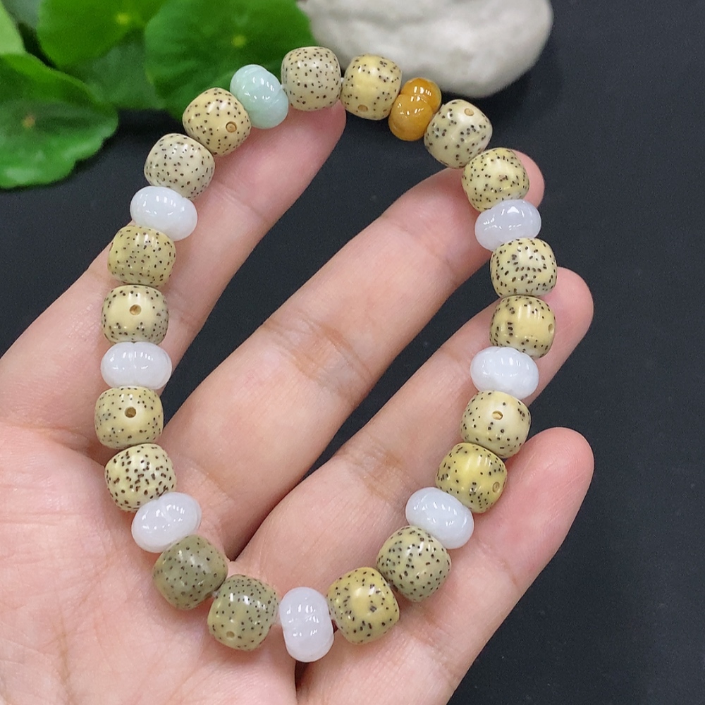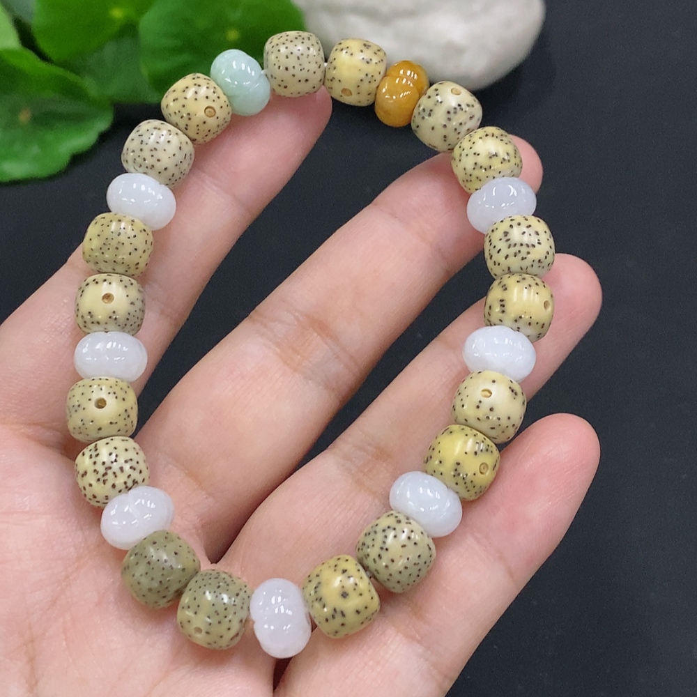 Jadeite Beaded Necklace Approx. 9.3mm Total Weight Approx. 20g (Yellow Color Origin Undetermined) (Matching Beads Non-Grade A)