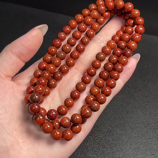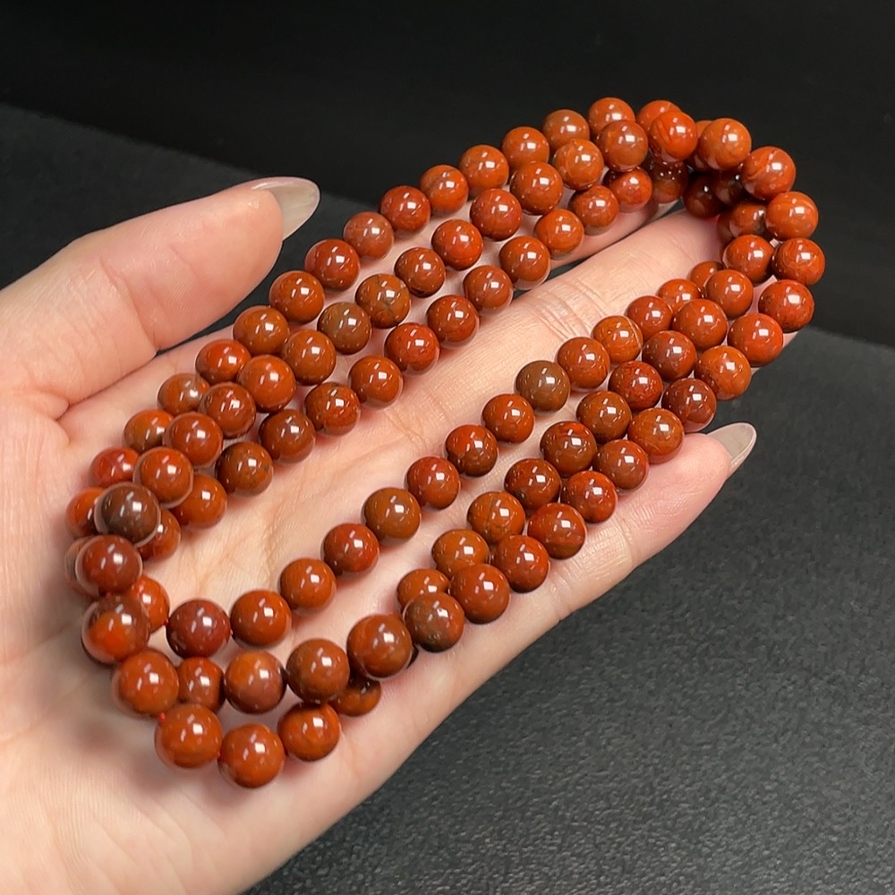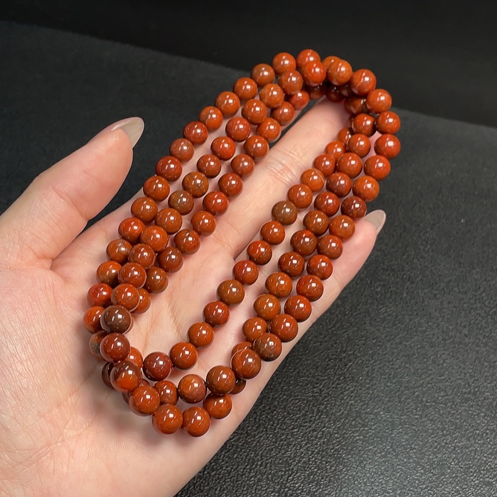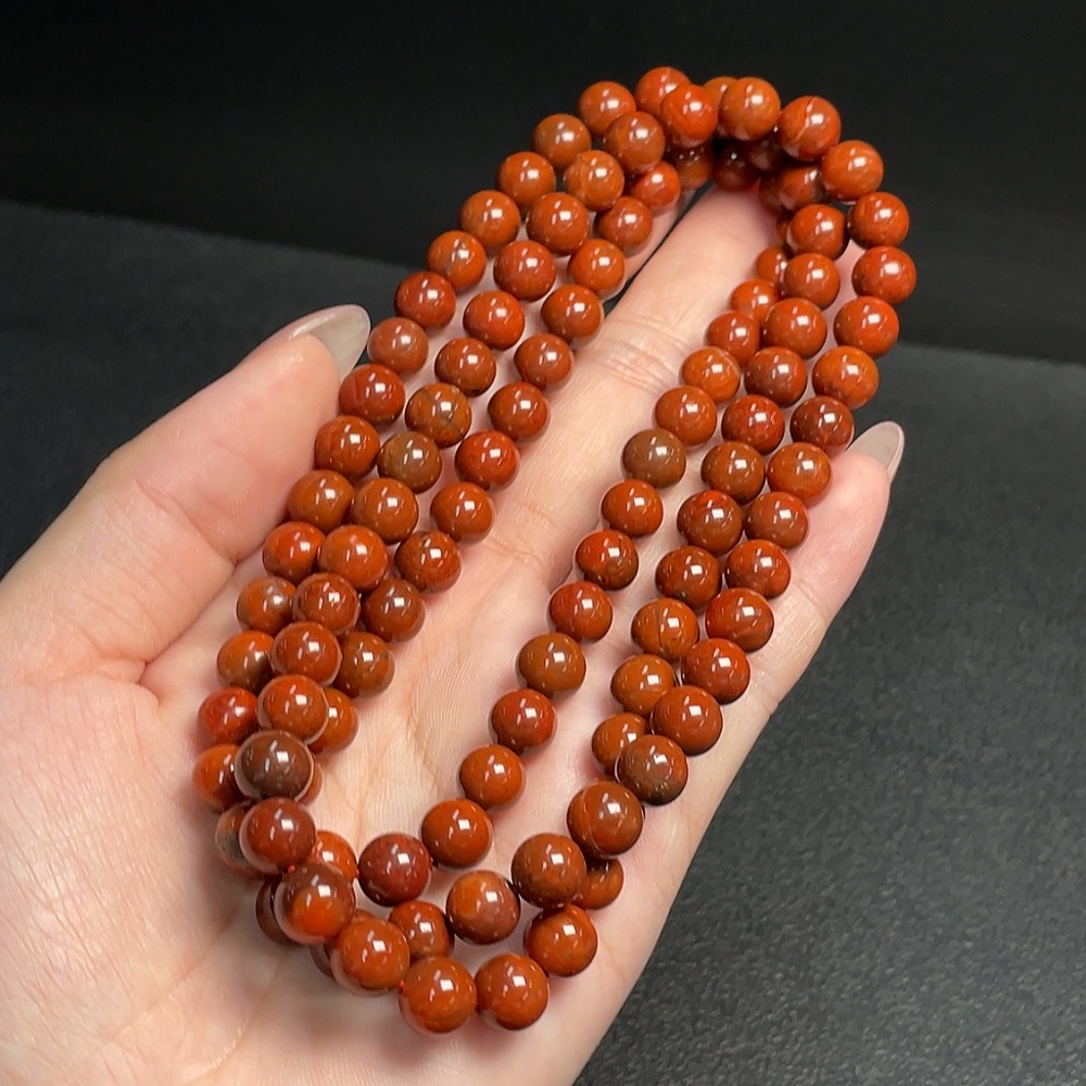 South Red Agate Bead Strand with Visible Organic Matter, Total Weight Approx. 67.25g, Size About 7.5mm