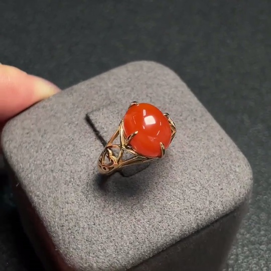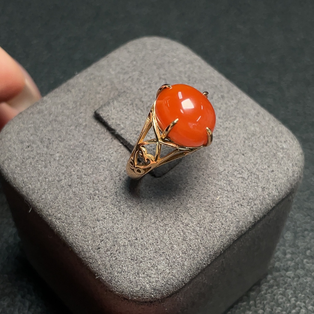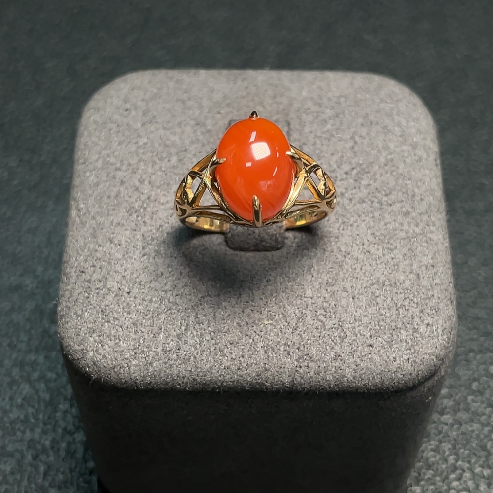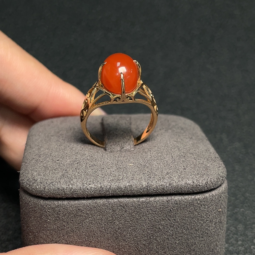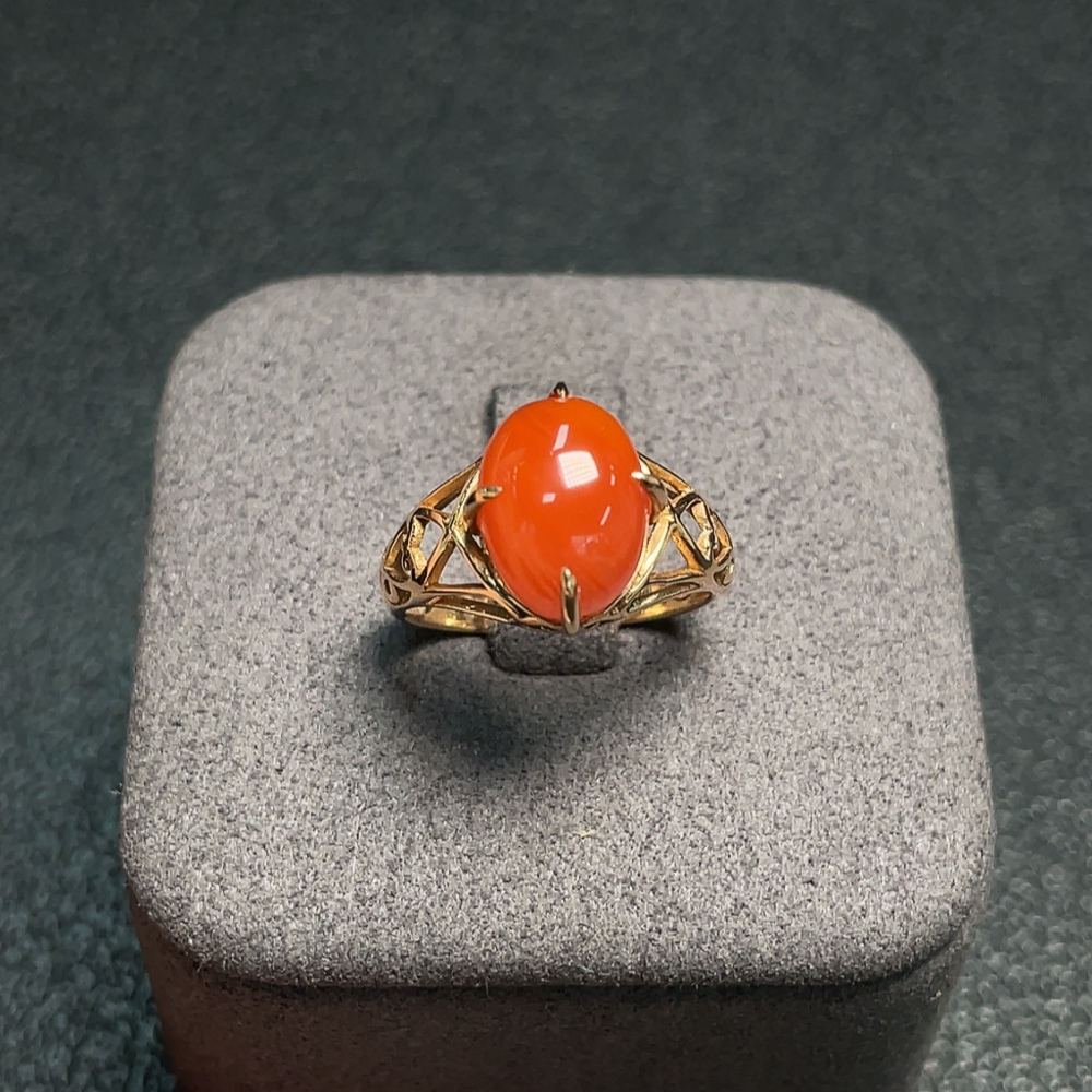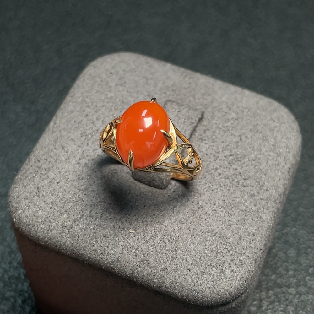 South Red Agate Ring 18K Gold Total Weight Approx. 3.0g Size 10