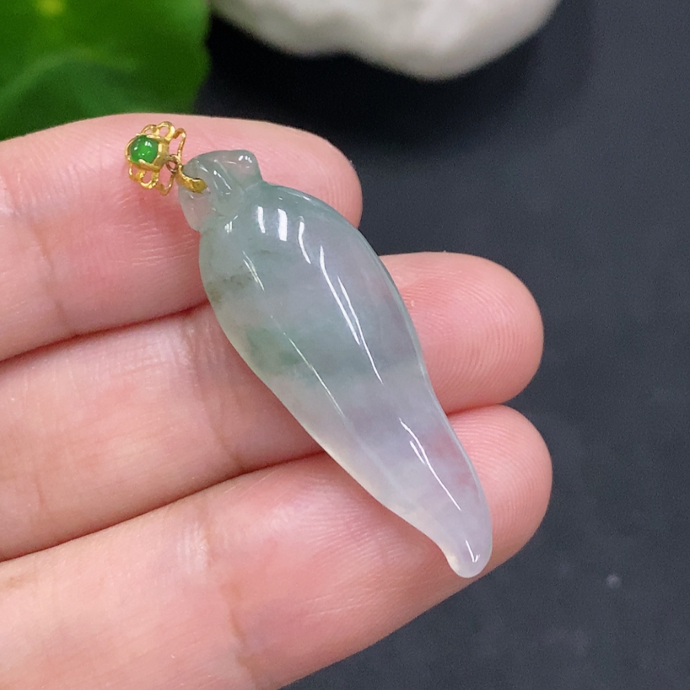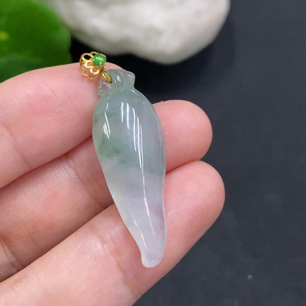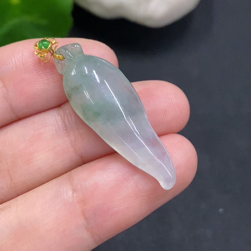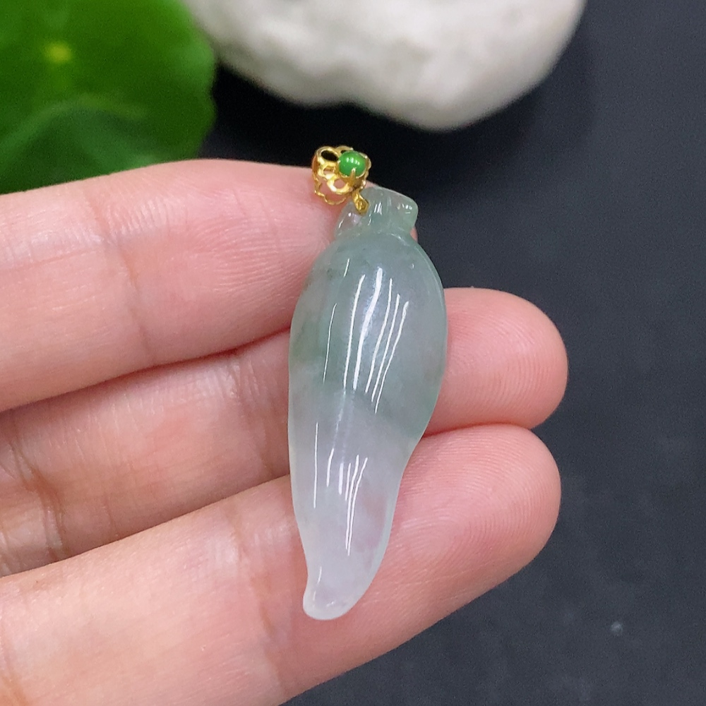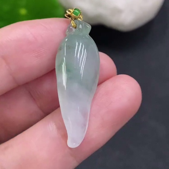 Jadeite Auspicious Gourd Pendant with 18K Gold Clasp, Total Weight 3.3g