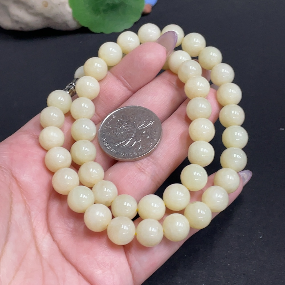 Hetian Jade Bead Necklace, Approx. 9.3mm, Total Weight Approx. 63.4g