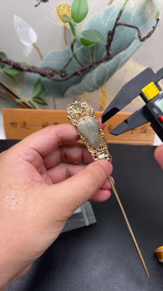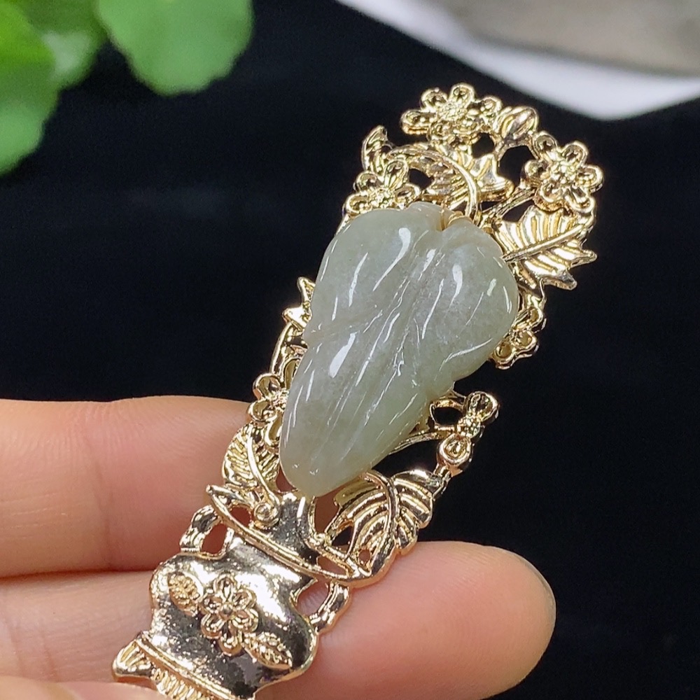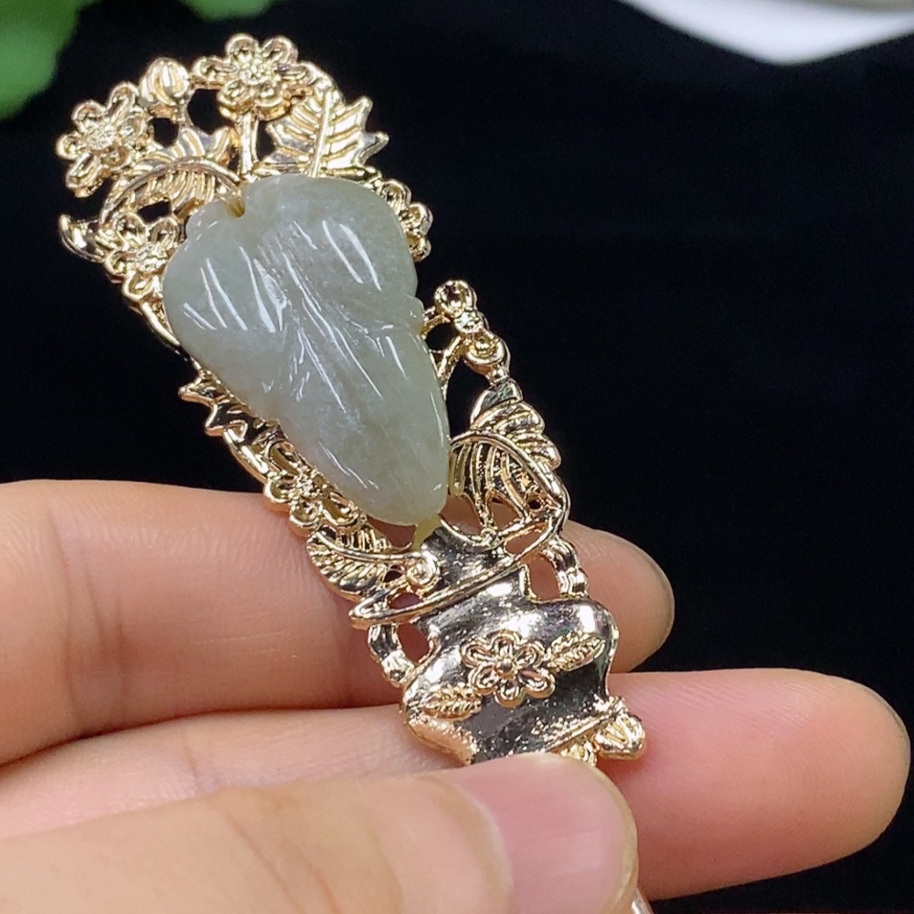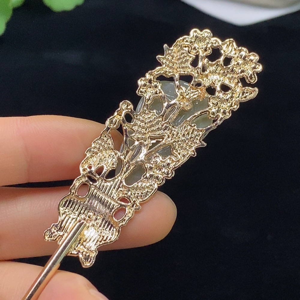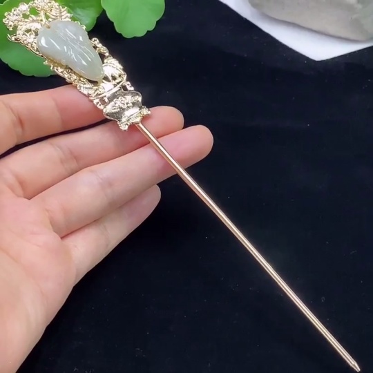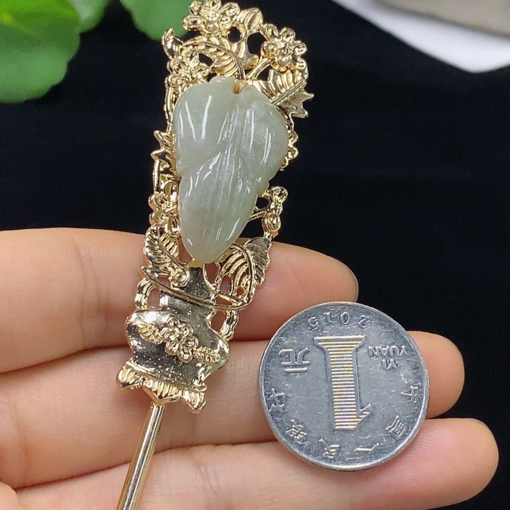 Jadeite Inlaid Hairpin Non-Gold Total Weight Approx. 14.74g