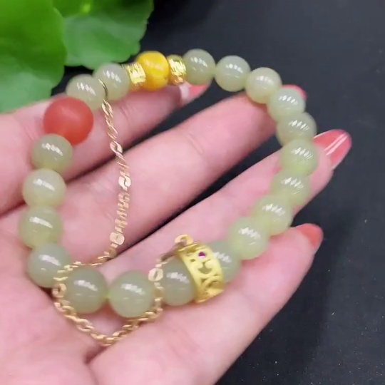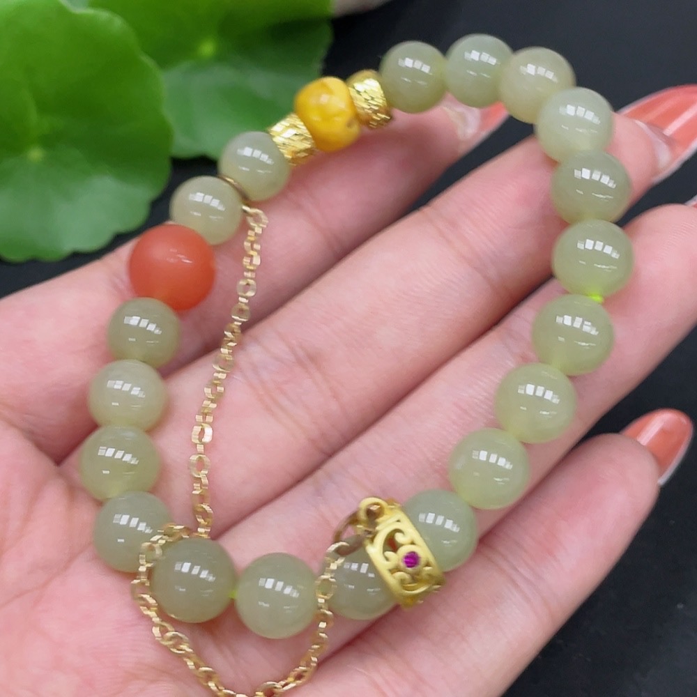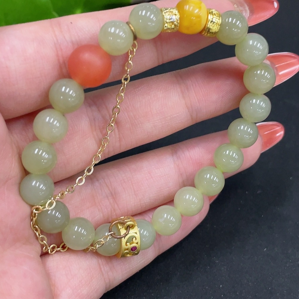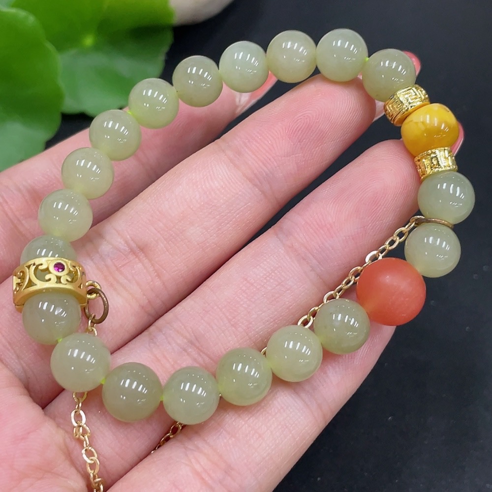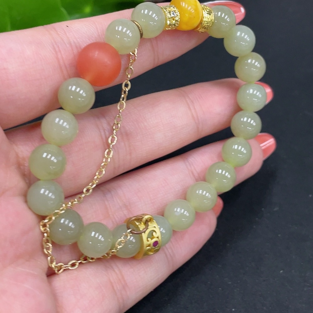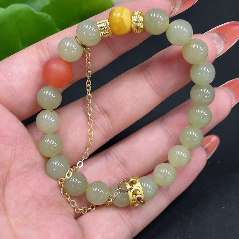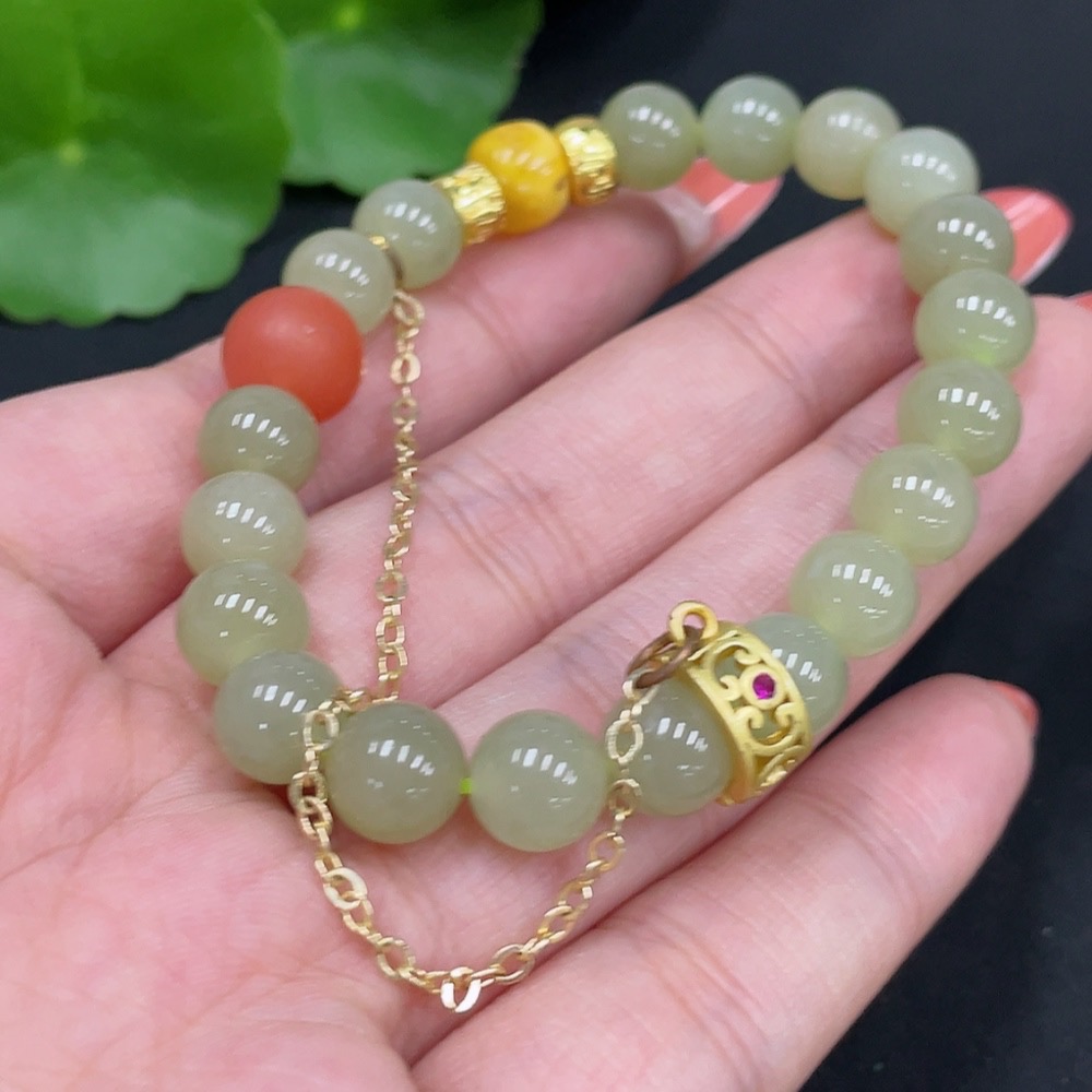 Hetian Jade Bracelet, Approx. 7.7mm, Total Weight Approx. 18.7g, Beads Not Hetian Jade, Not Gold