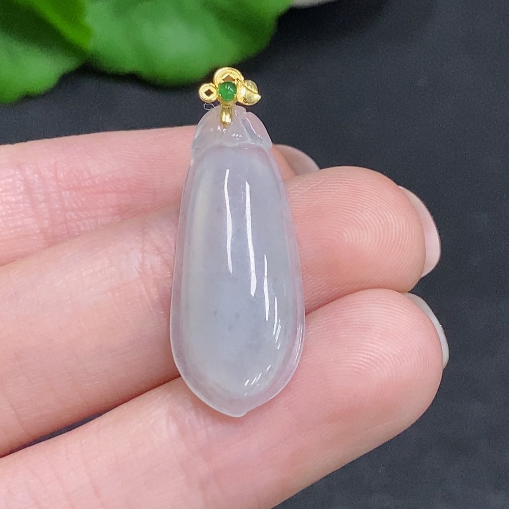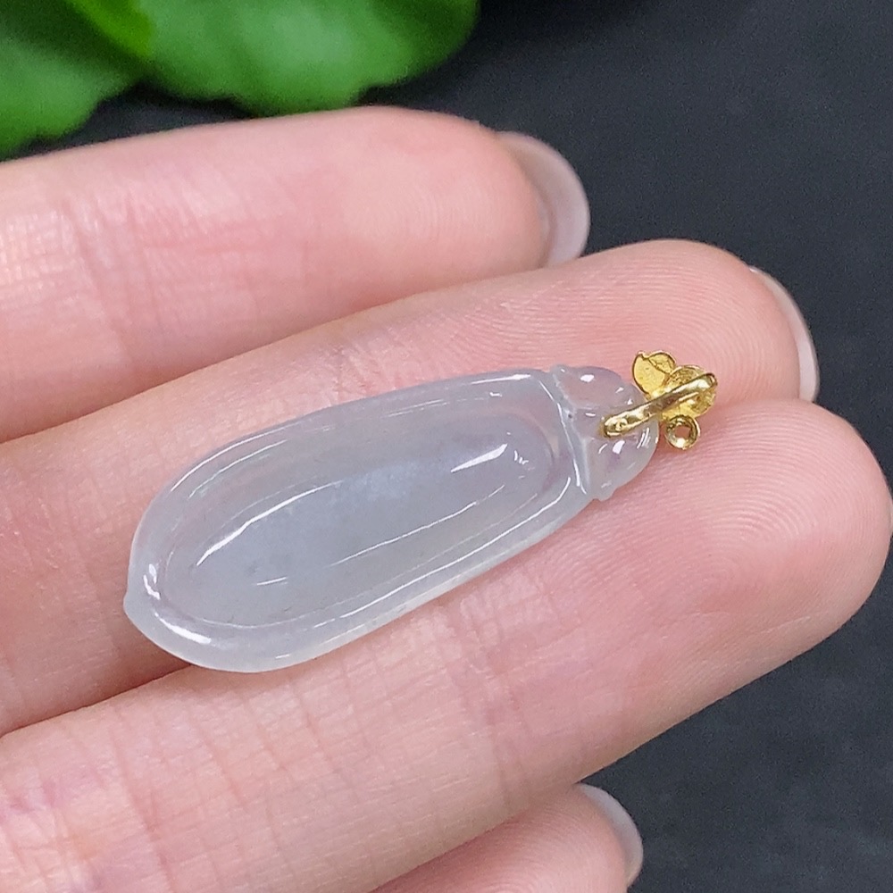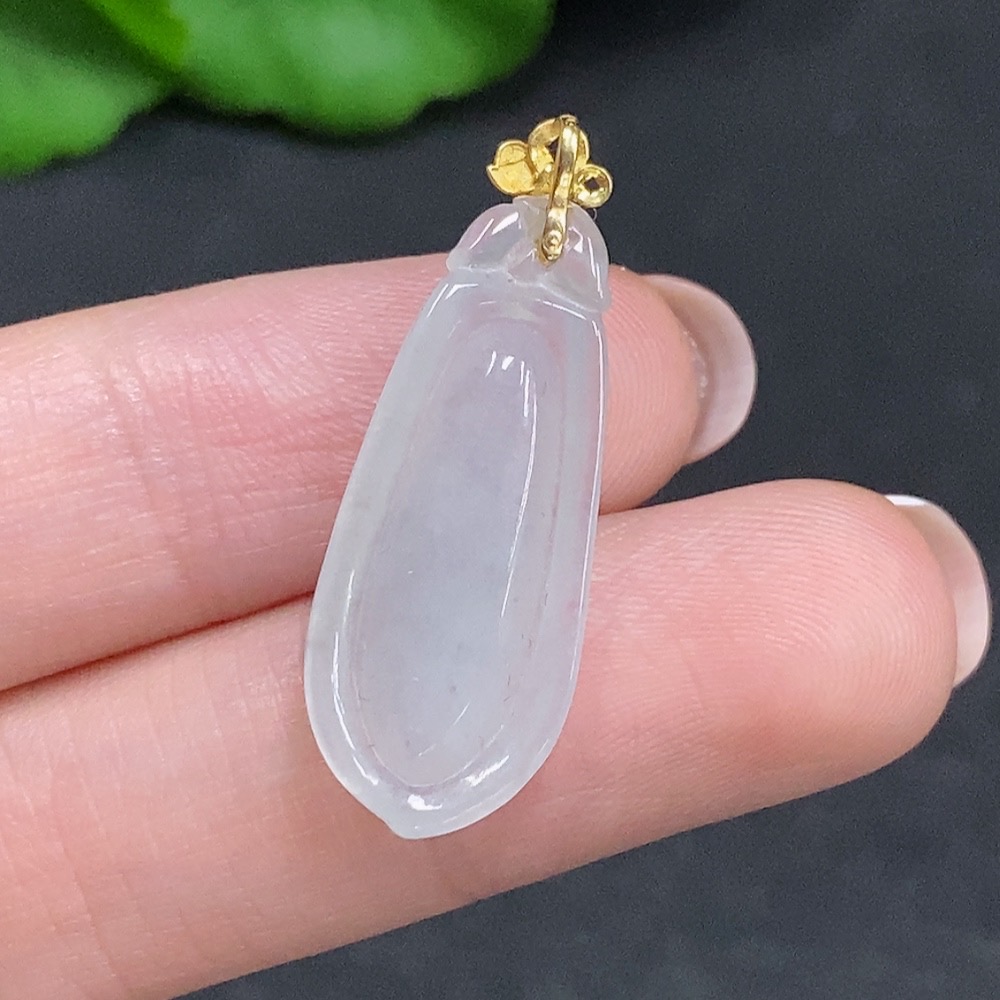 Jadeite Auspicious Melon Pendant with 18K Gold Clasp, Total Weight Approximately 2.2g