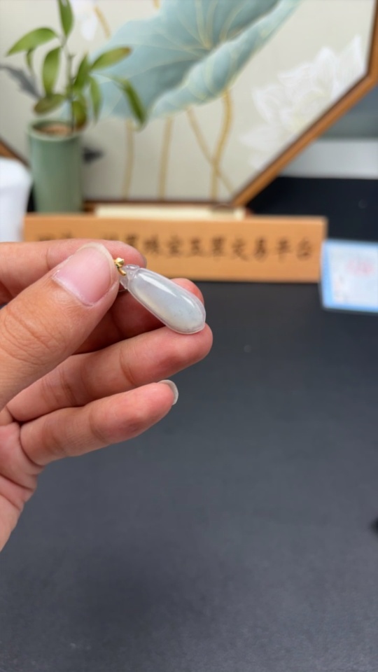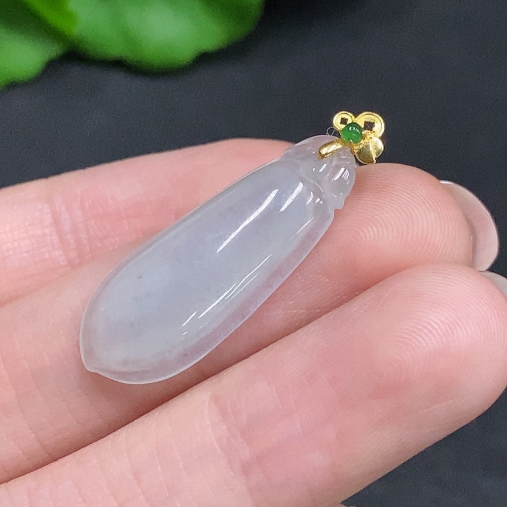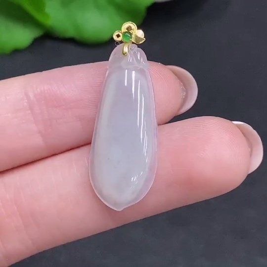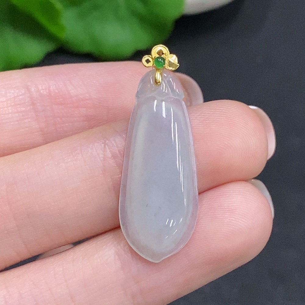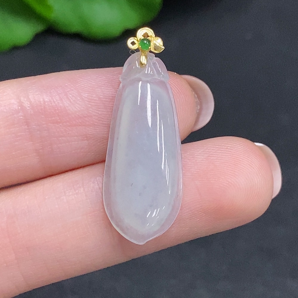Jadeite Auspicious Melon Pendant with 18K Gold Clasp, Total Weight Approximately 2.2g