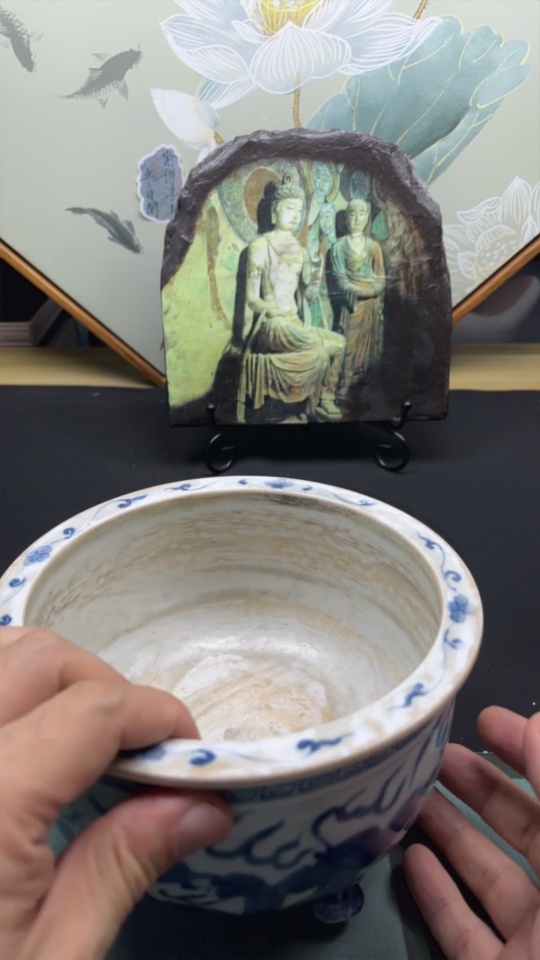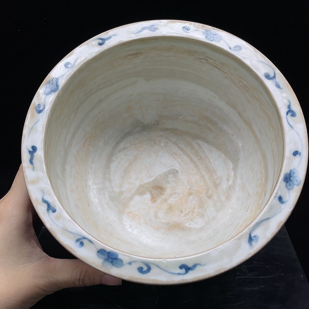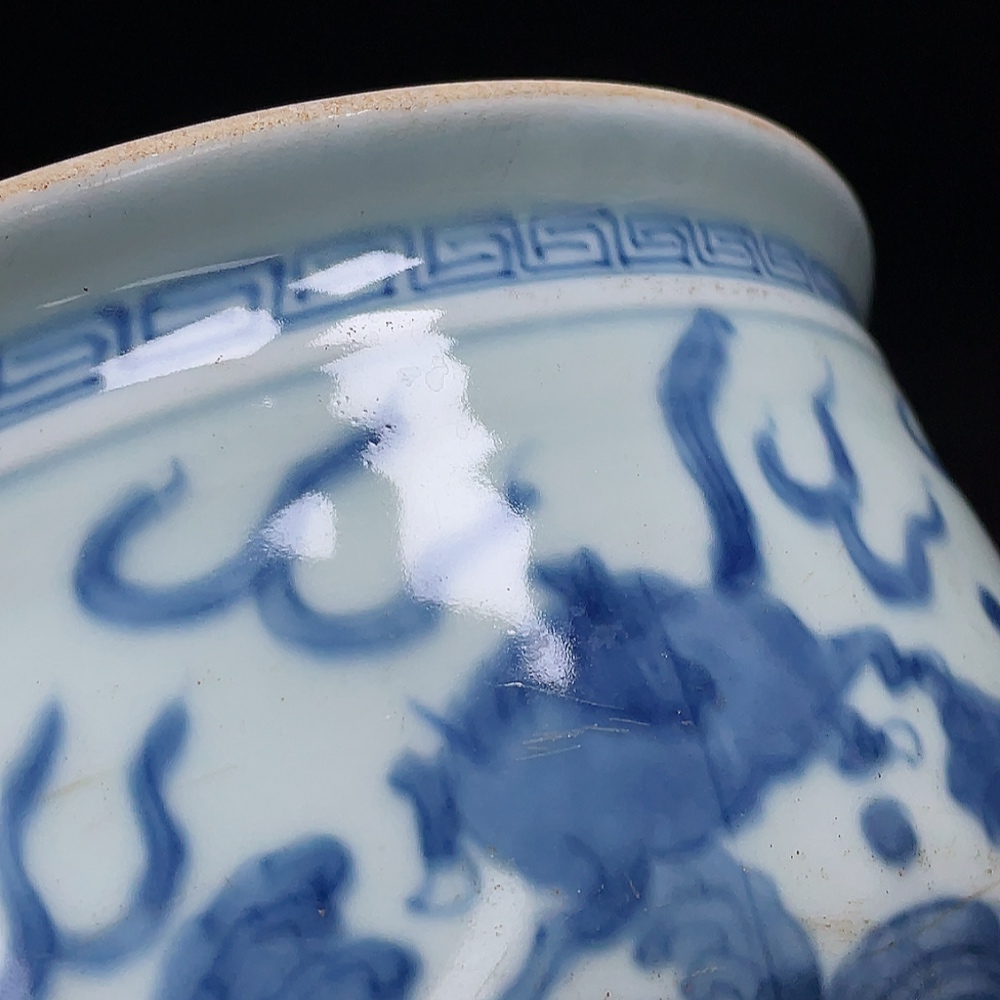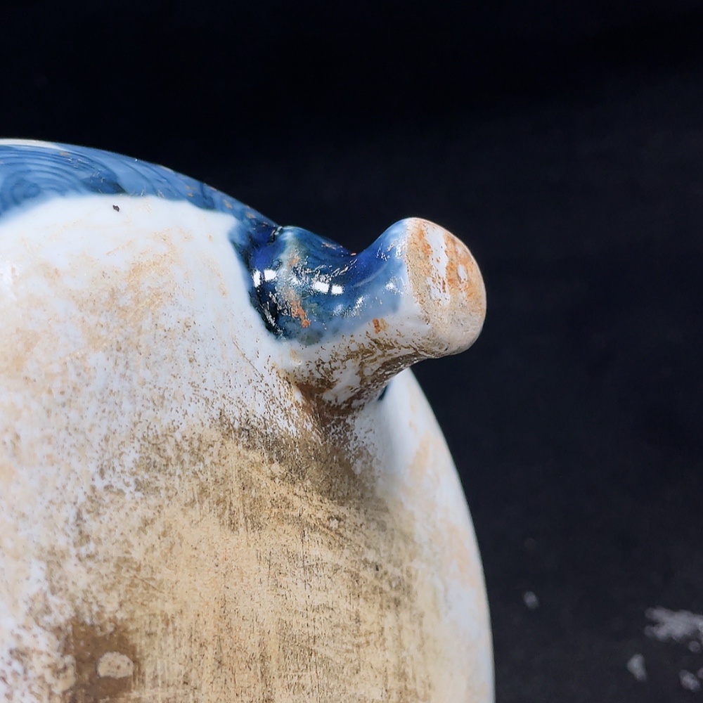 Porcelain, intact, blue-and-white sea horse pattern tripod incense burner, size as per actual item