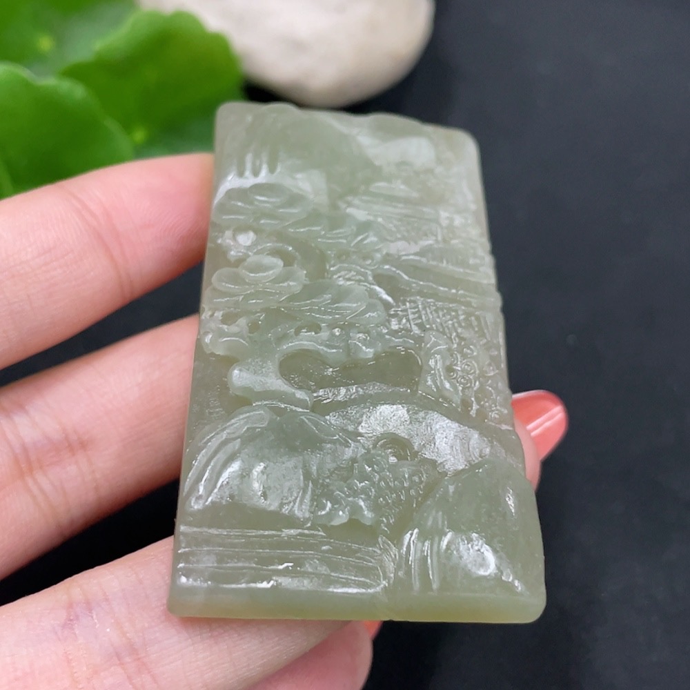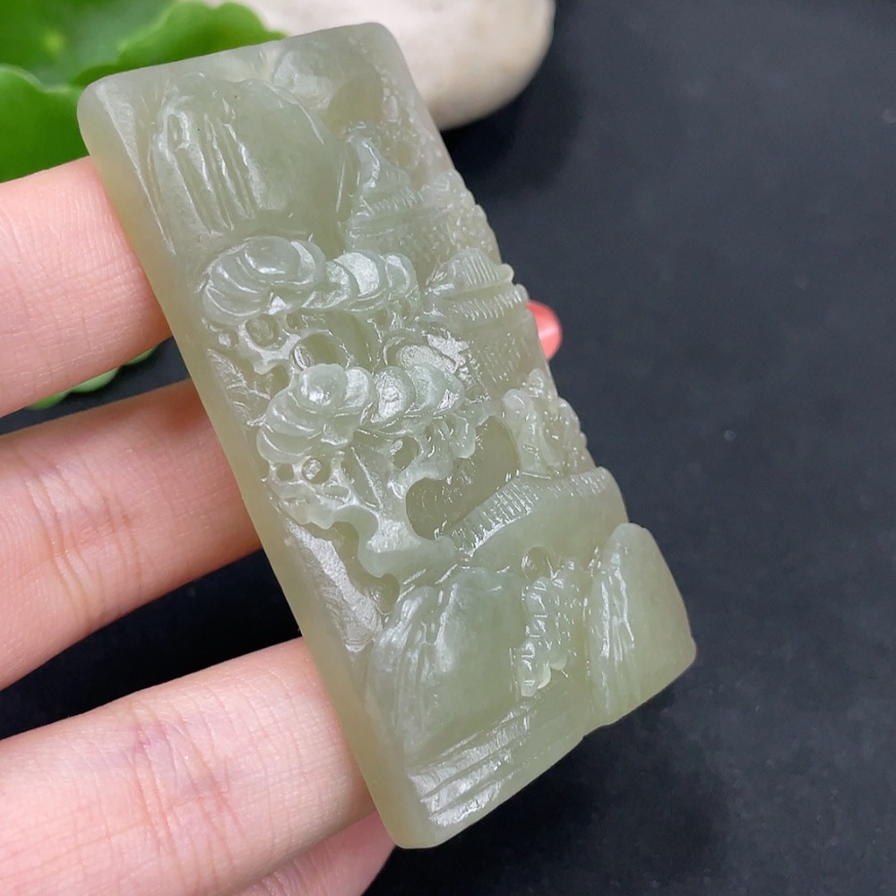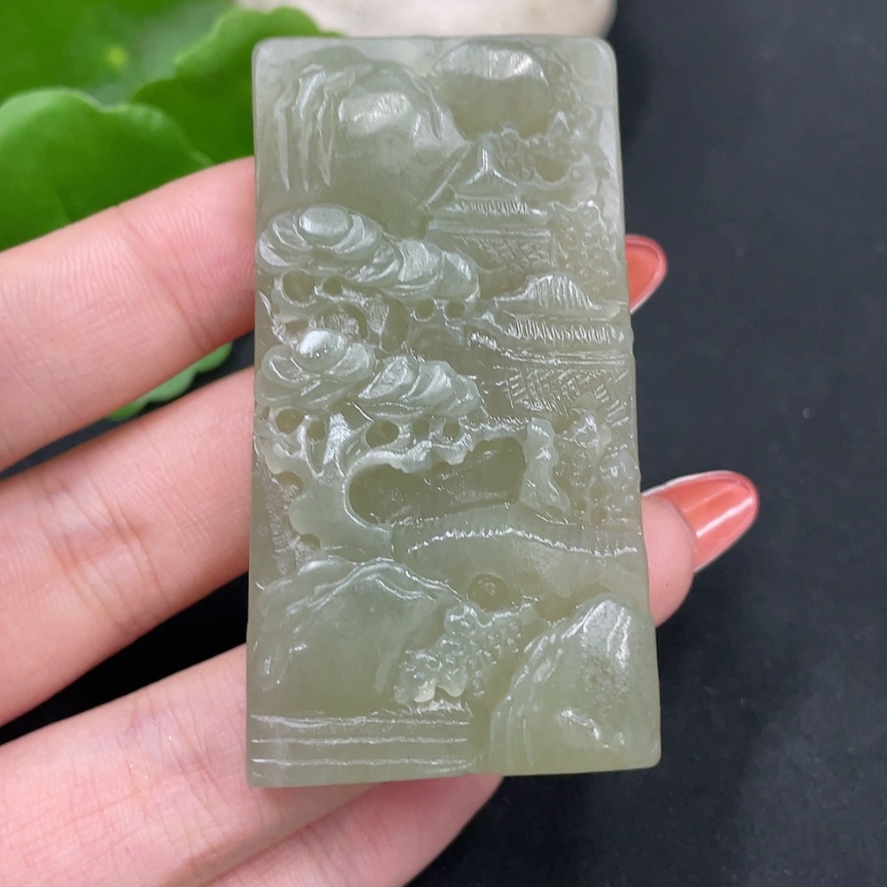 Hetian Jade Pendant Landscape Plaque Total Weight Approx. 39.7g