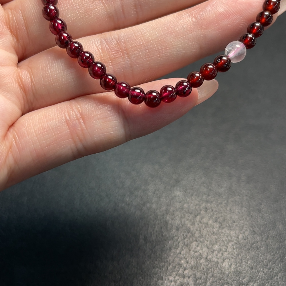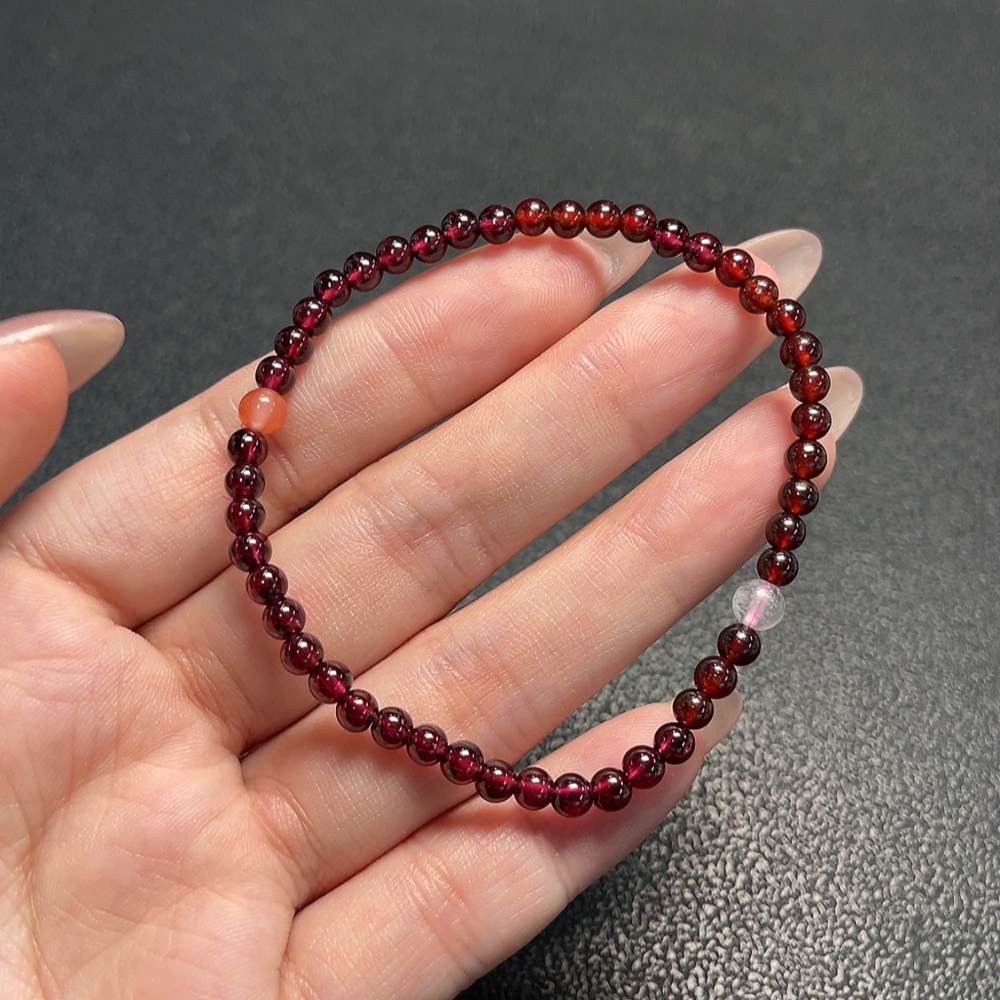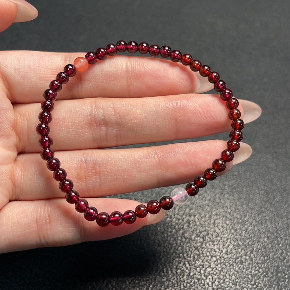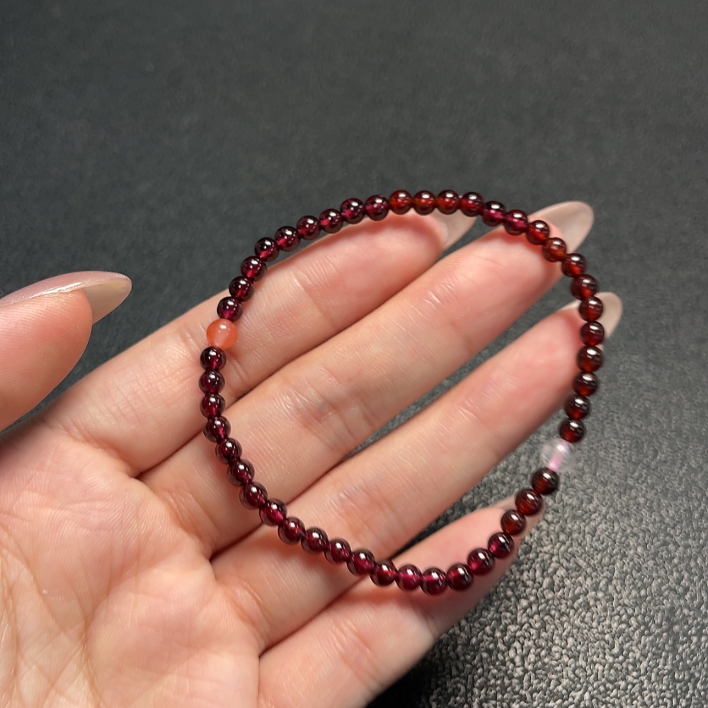 Garnet Bracelet with South Red Agate, Non-Natural Matching Stones, Total Weight Approx. 6.31g, Size About 4mm