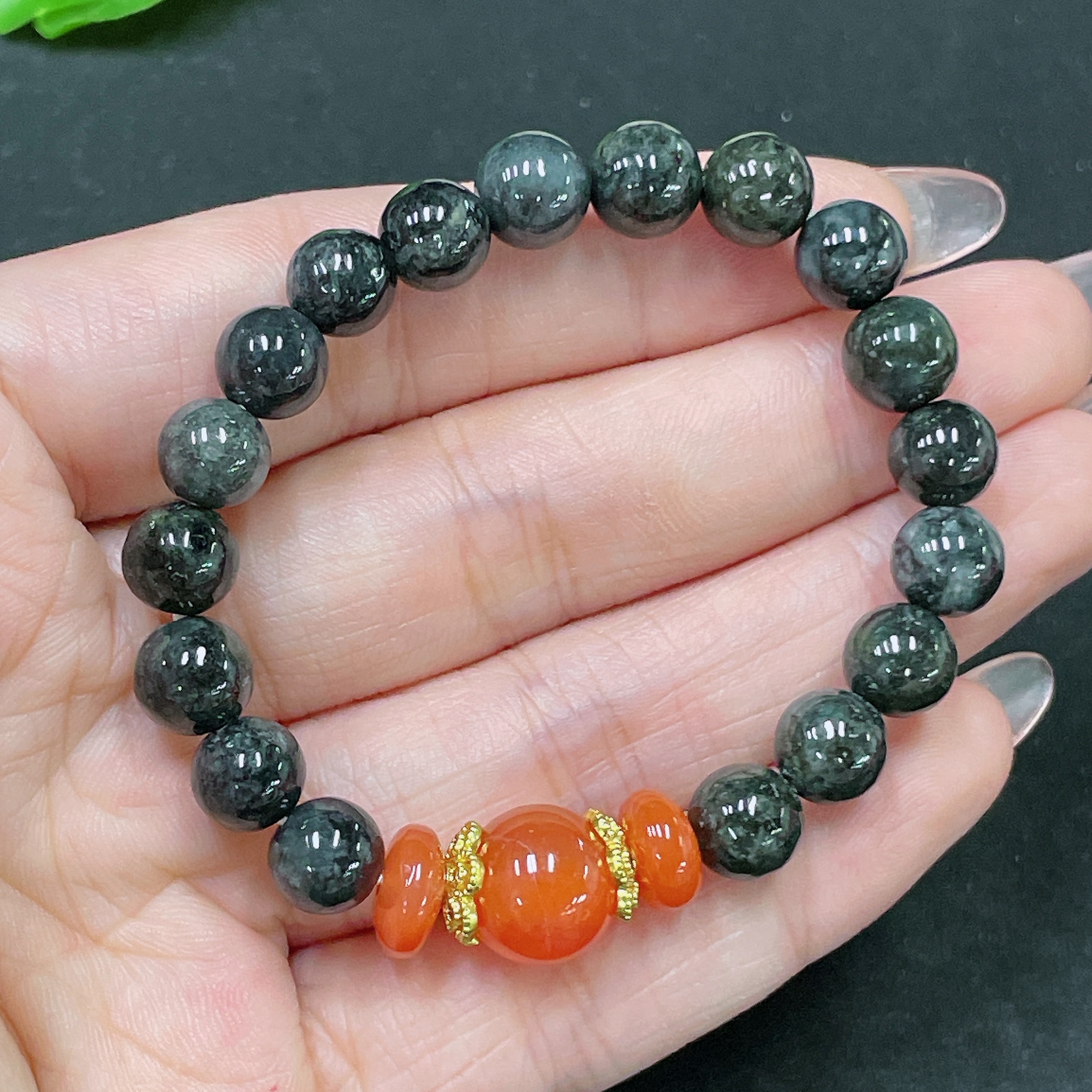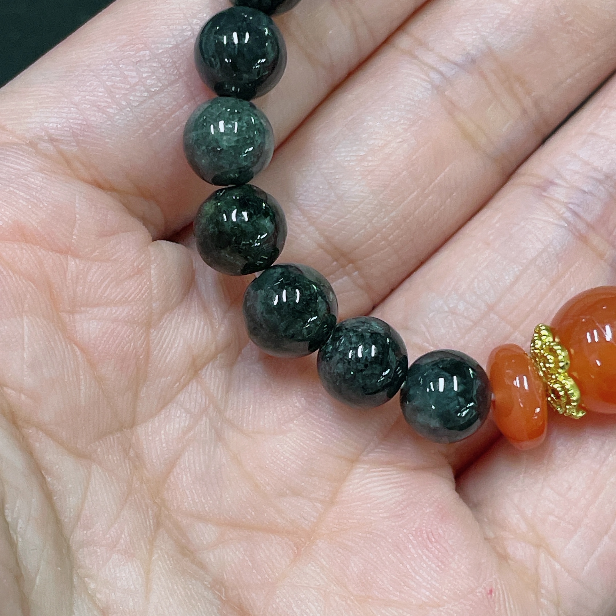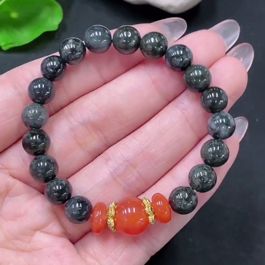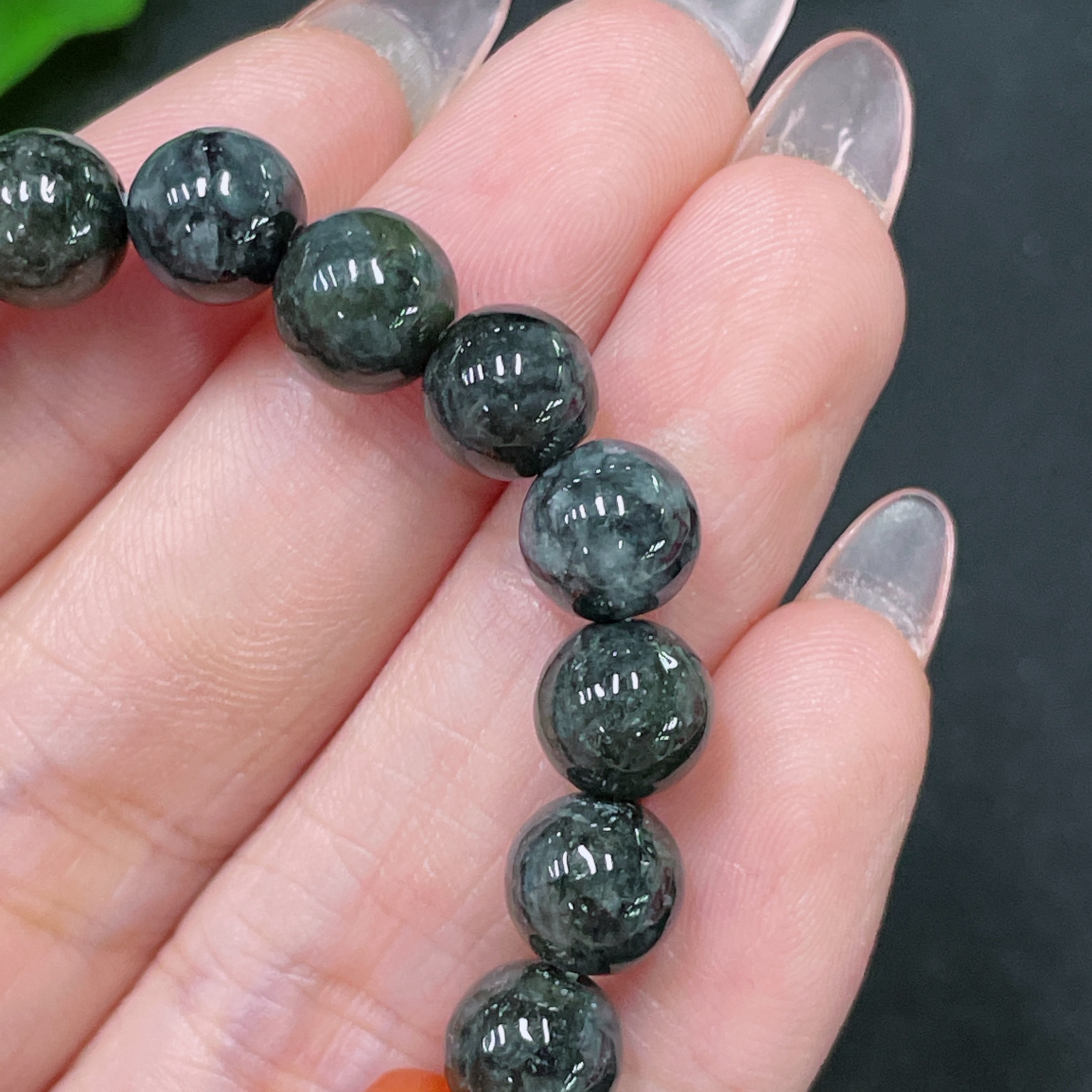 Jadeite Bracelet, Non-A Grade Beads, Non-Gold, Total Weight Approx. 18g, Size About 7.6mm