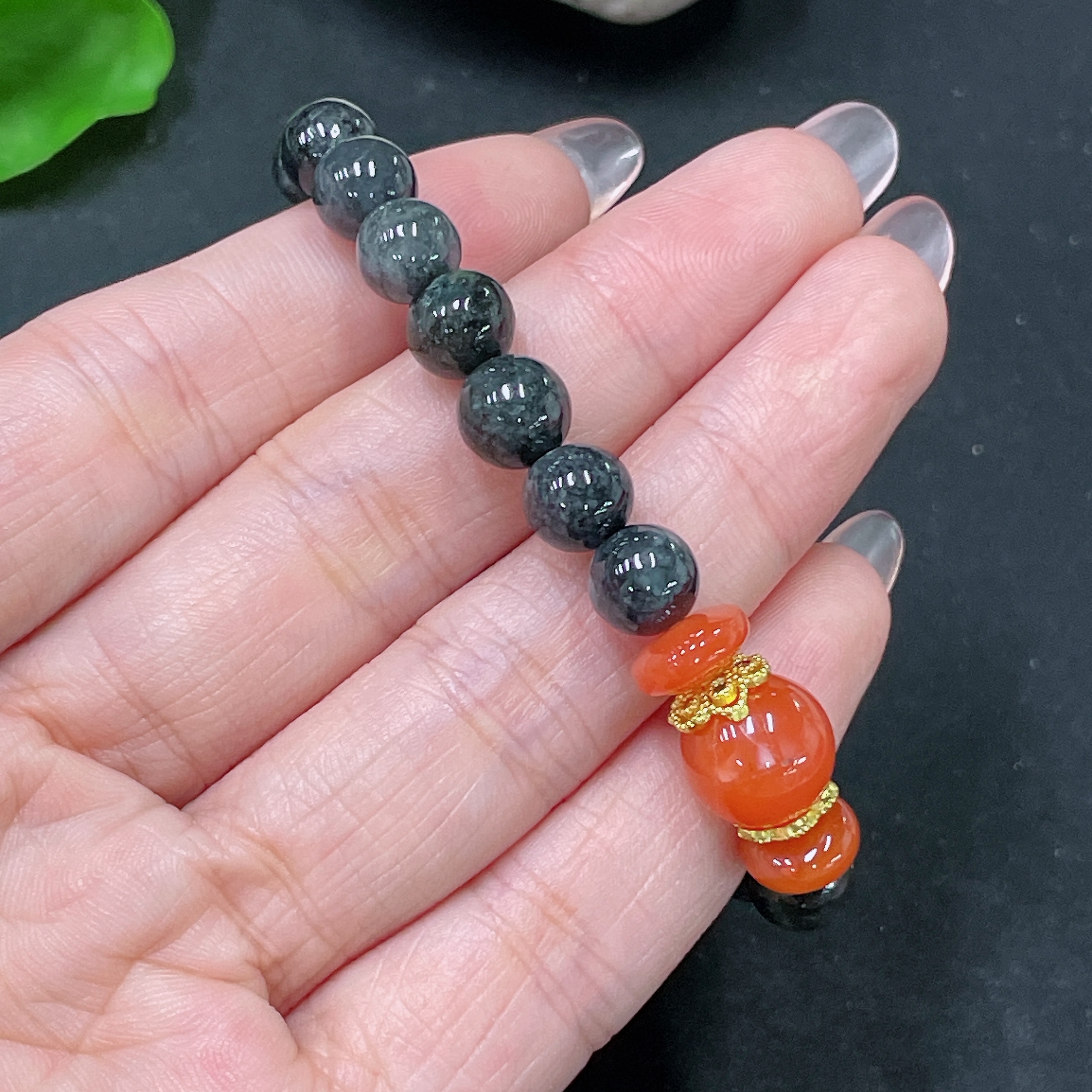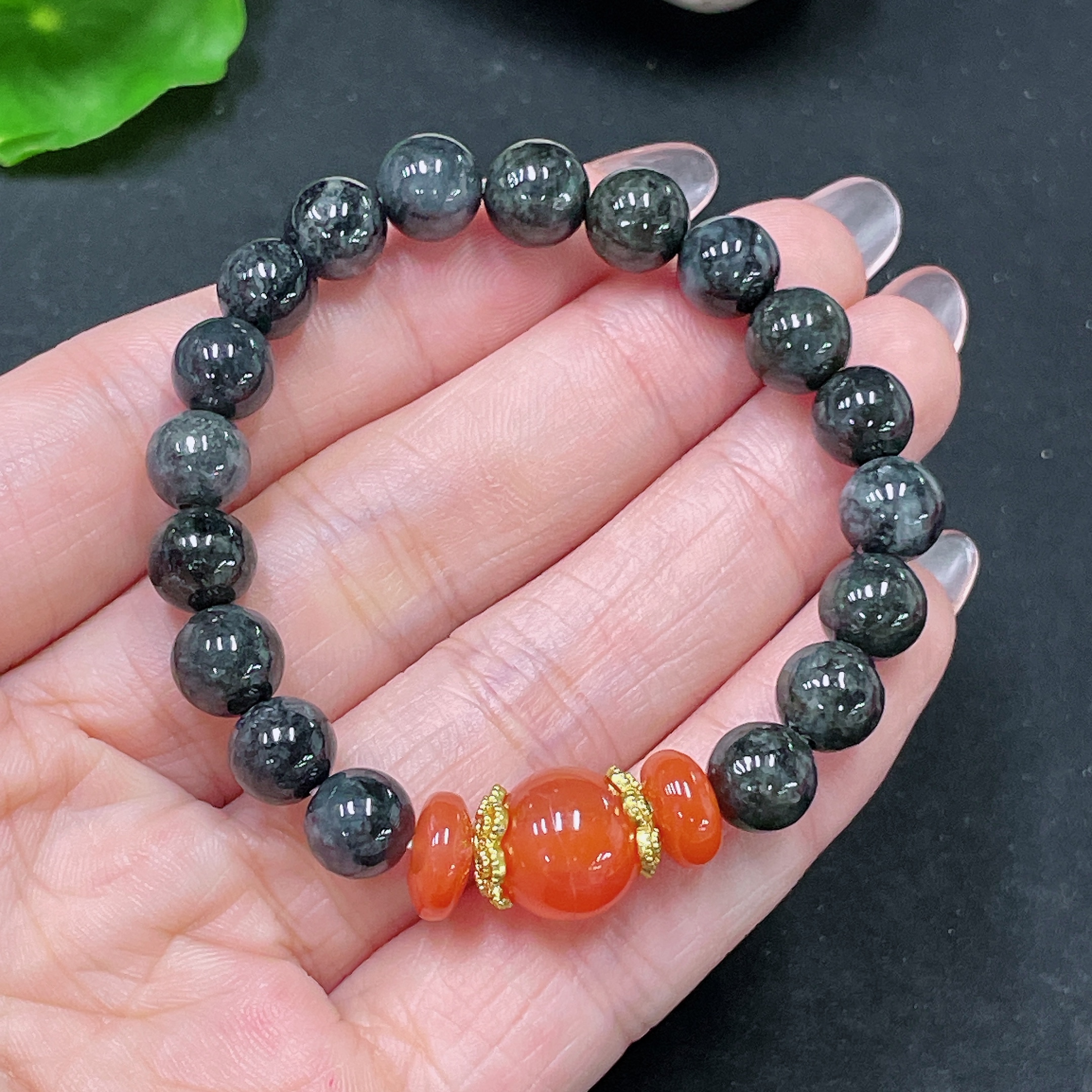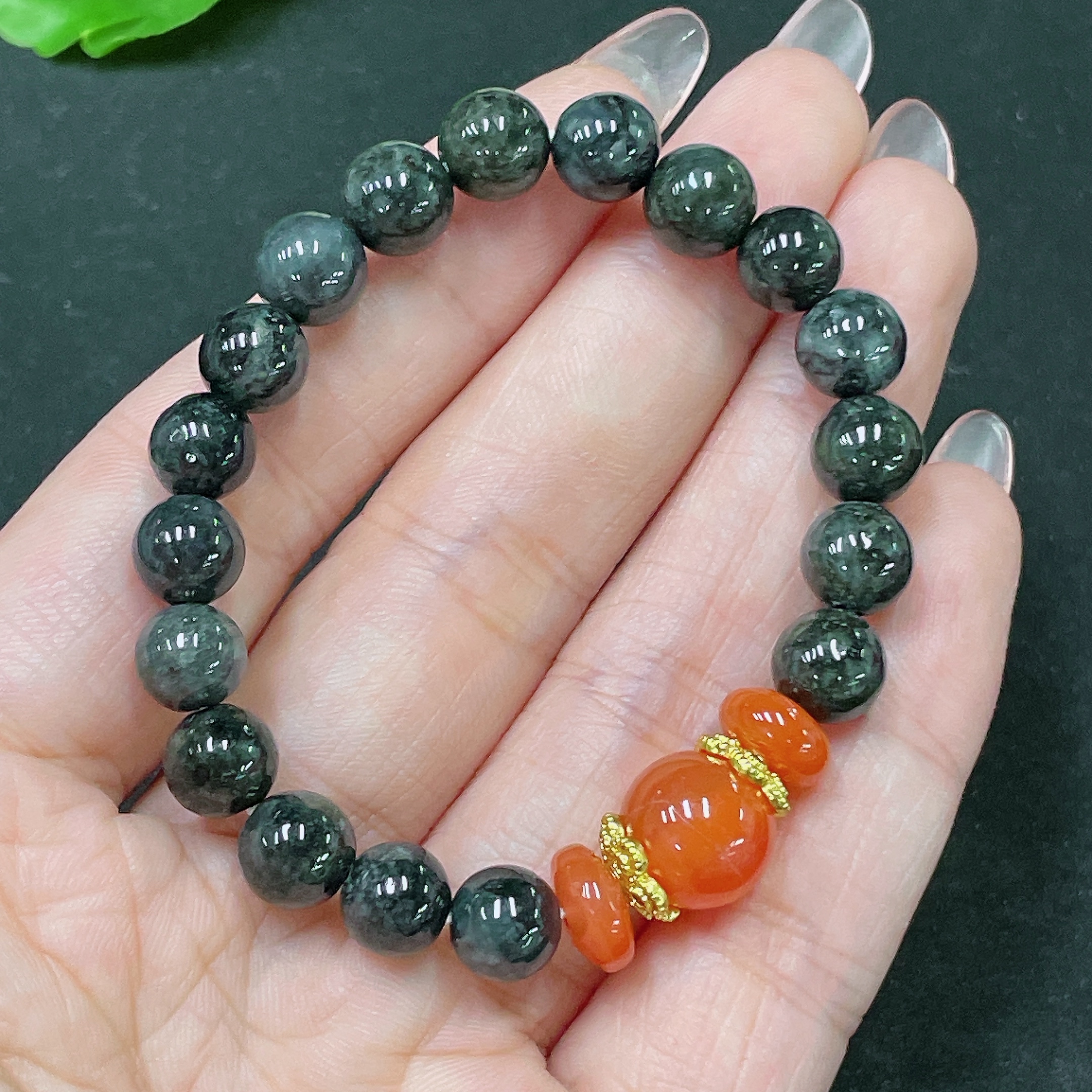 Jadeite Bracelet, Non-A Grade Beads, Non-Gold, Total Weight Approx. 18g, Size About 7.6mm