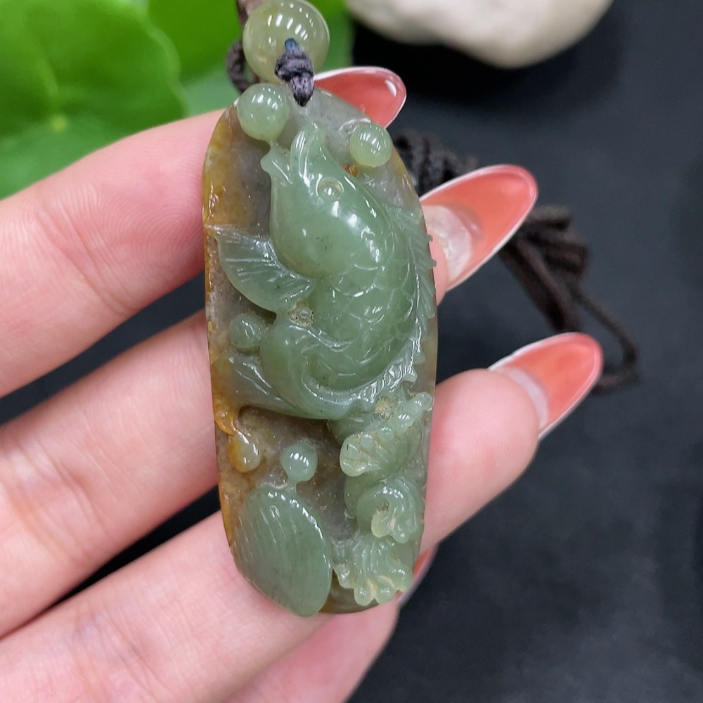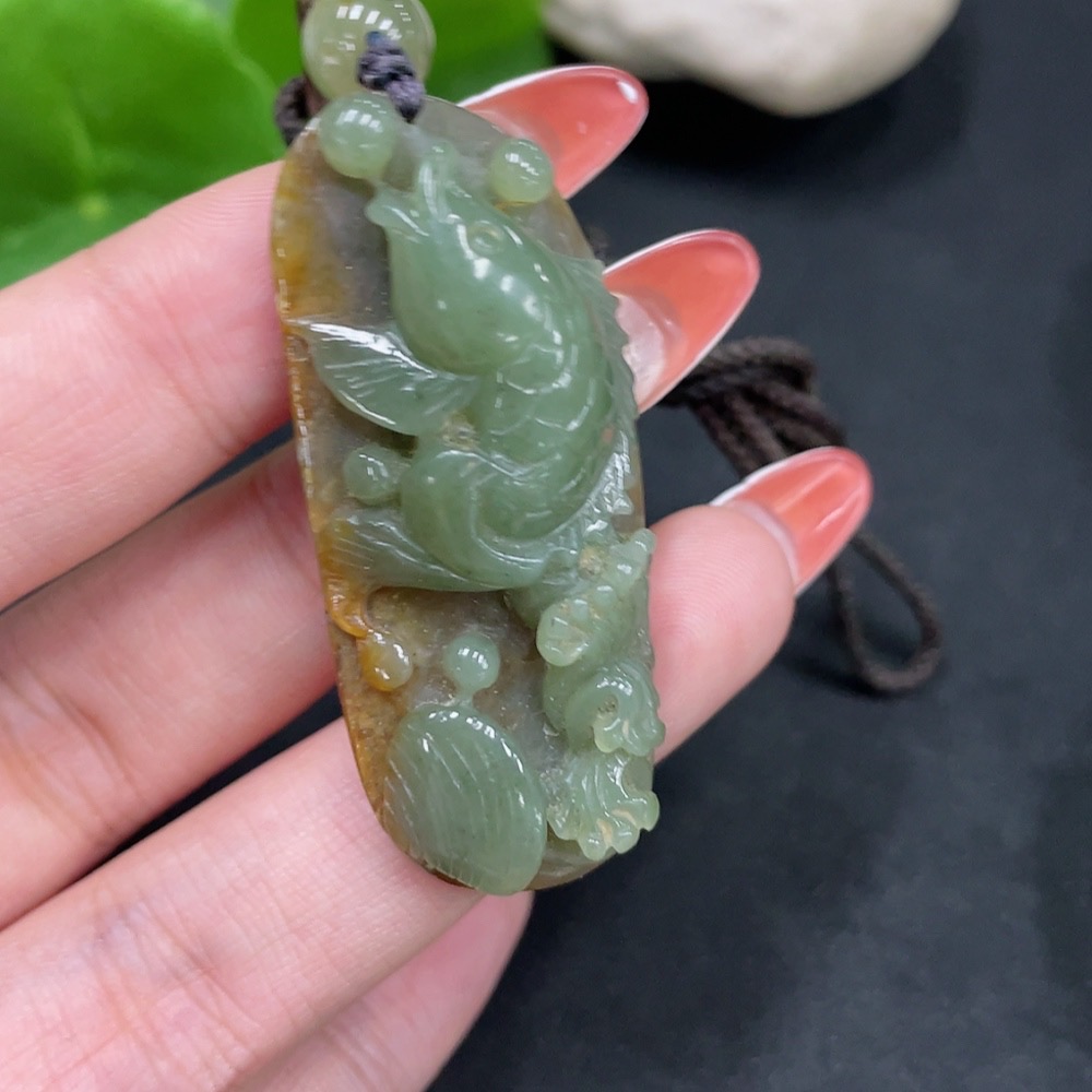 Hetian Jade Pendant Abundant Every Year Undetermined Skin Color Cause Total Weight (including rope) Approx. 16.5g