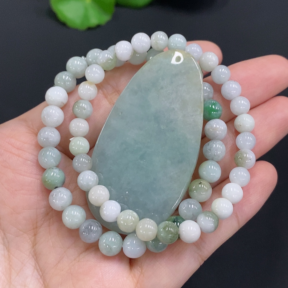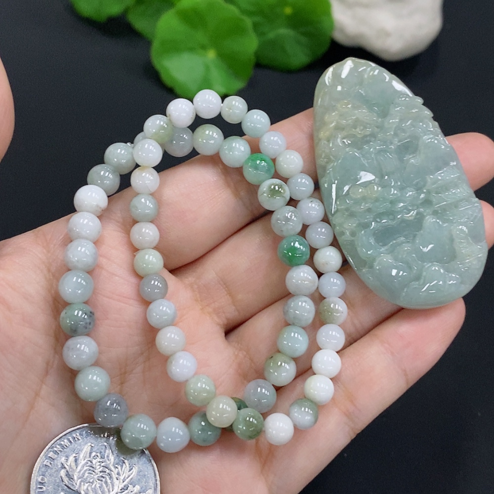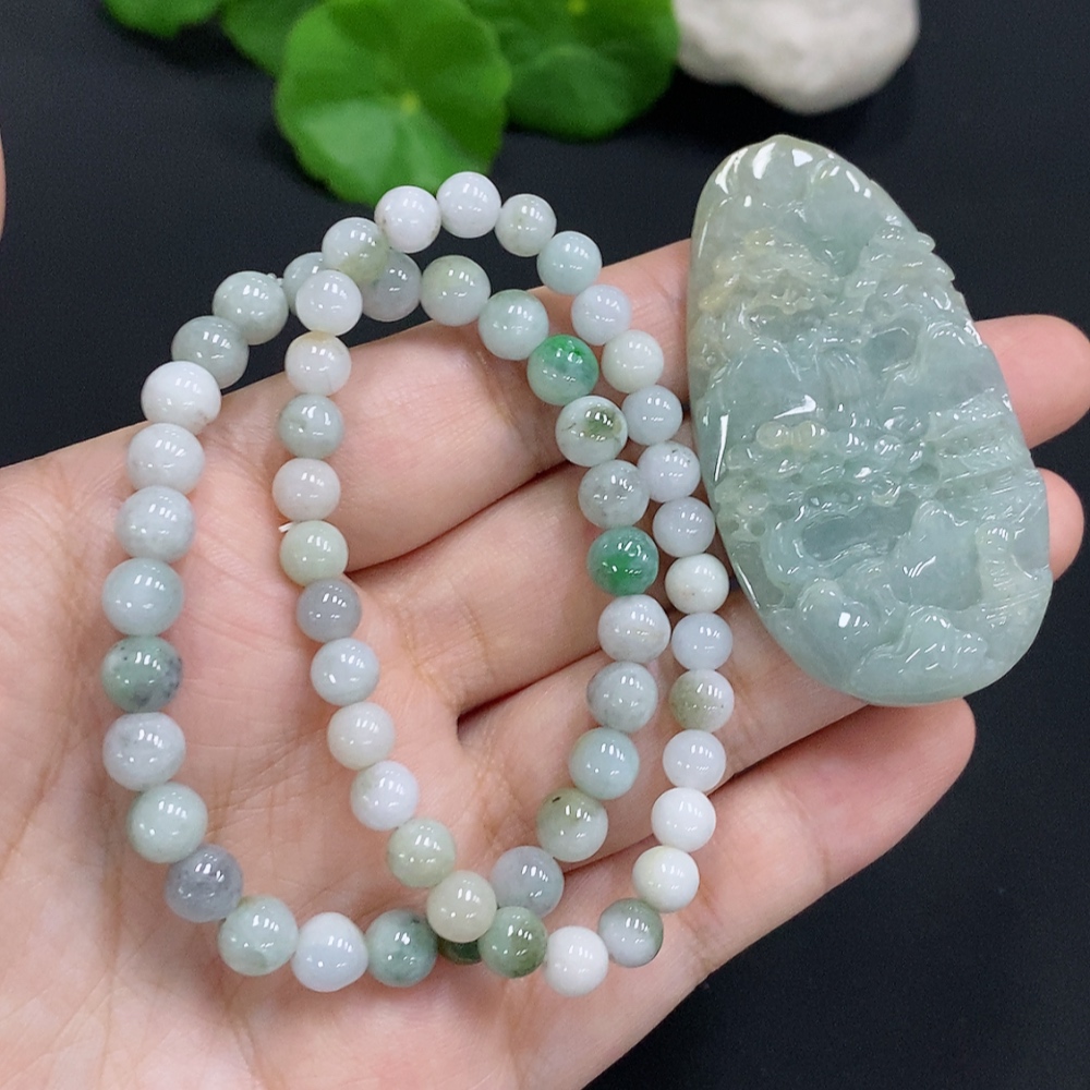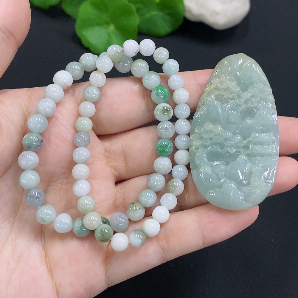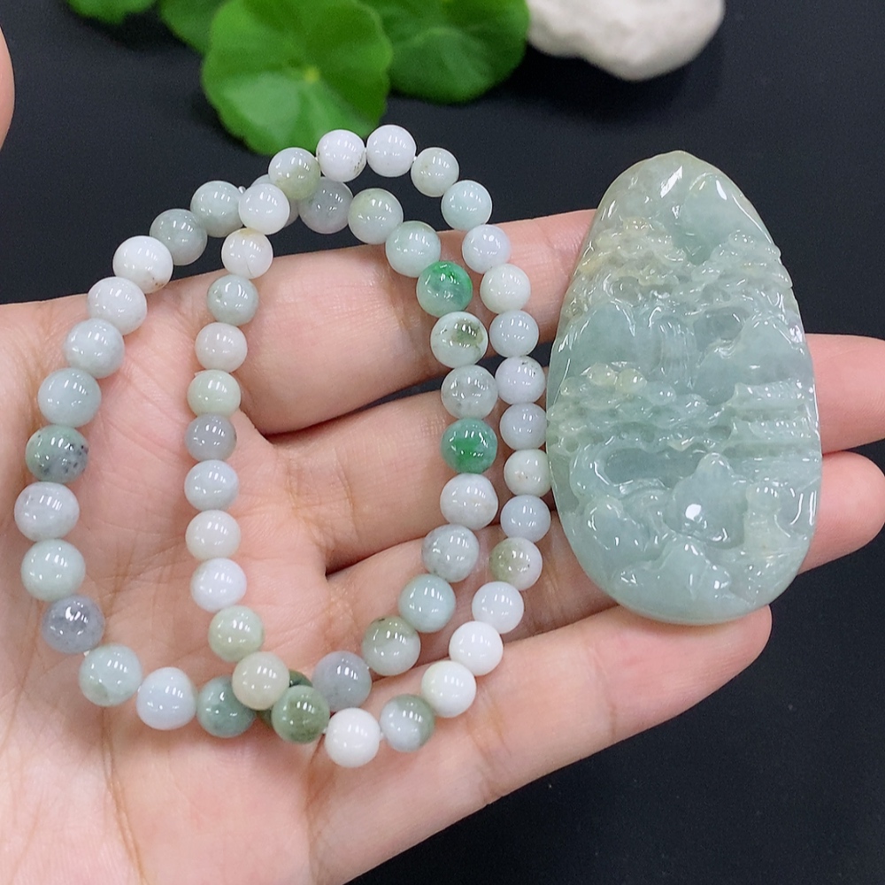 Jadeite Landscape Pendant with Beaded Necklace Sell as a Lot