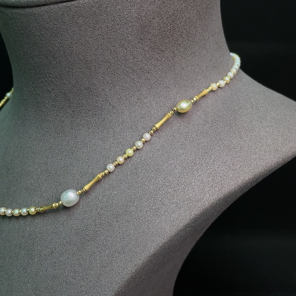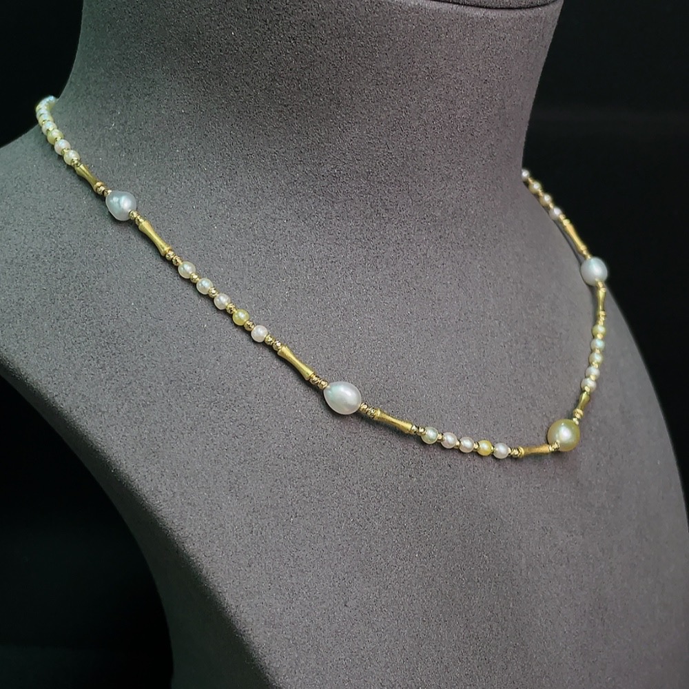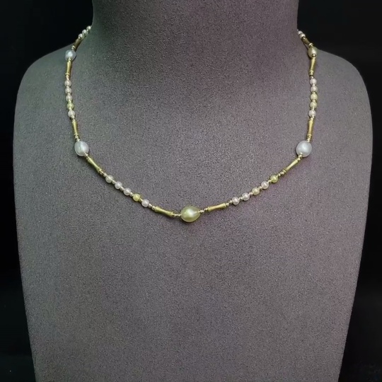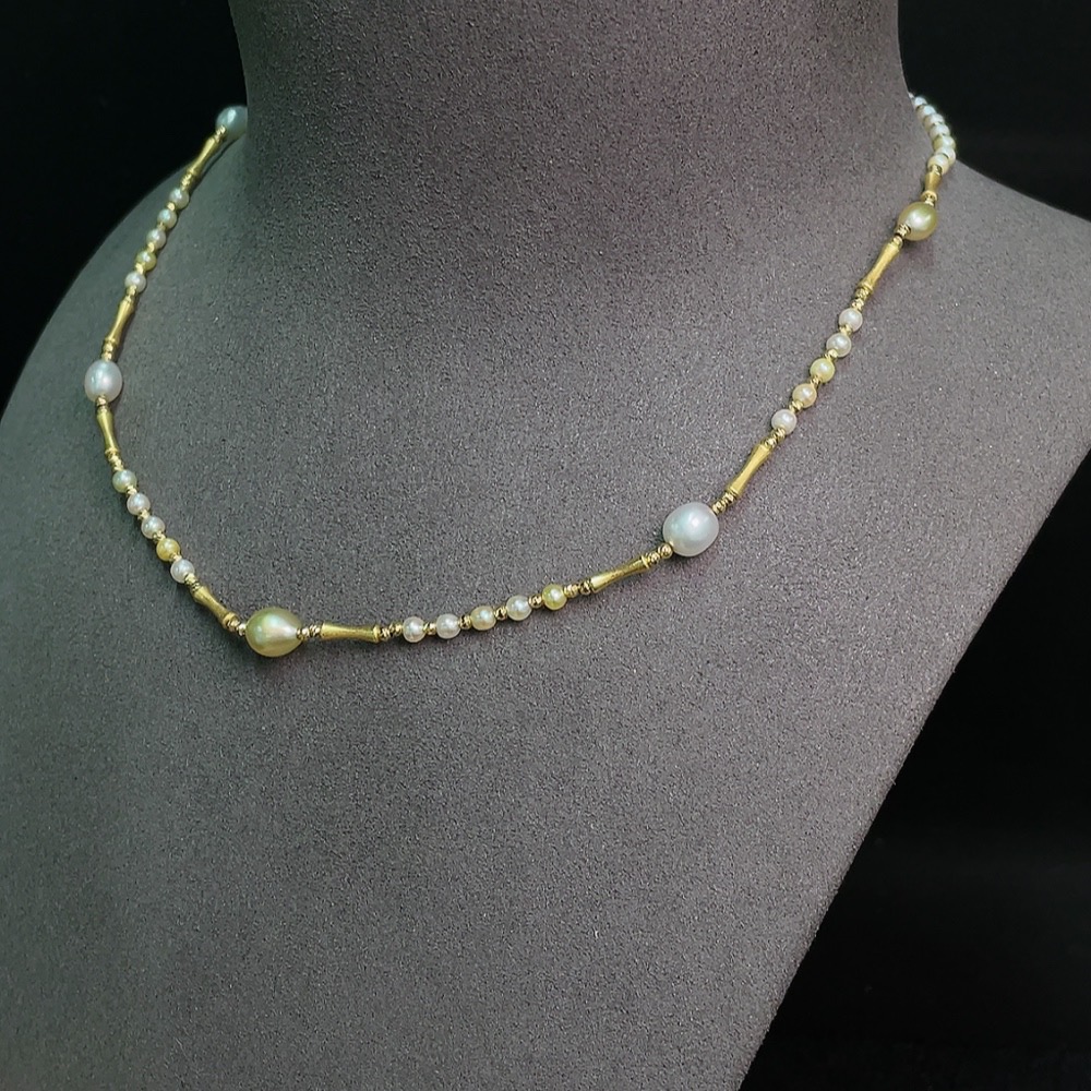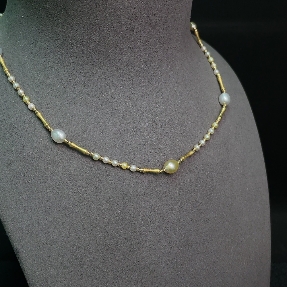 Seawater pearl necklace with undetermined color origin, marked red as non-gold, pendant Au99%, rest 18k gold, total weight approx. 8.07g, size 2.7-6.3mm