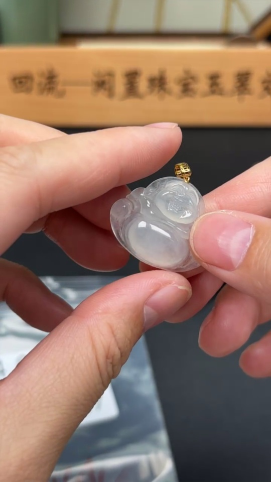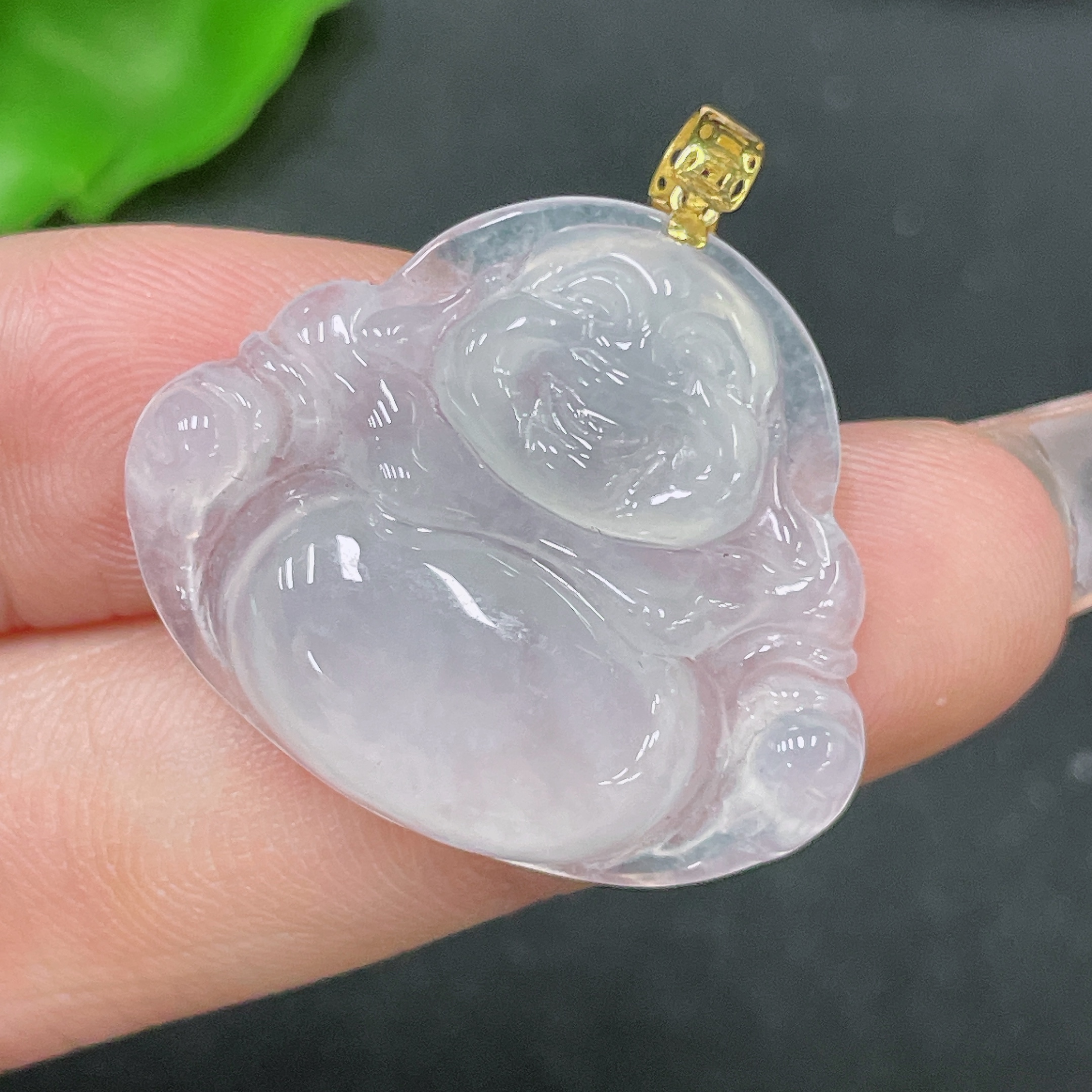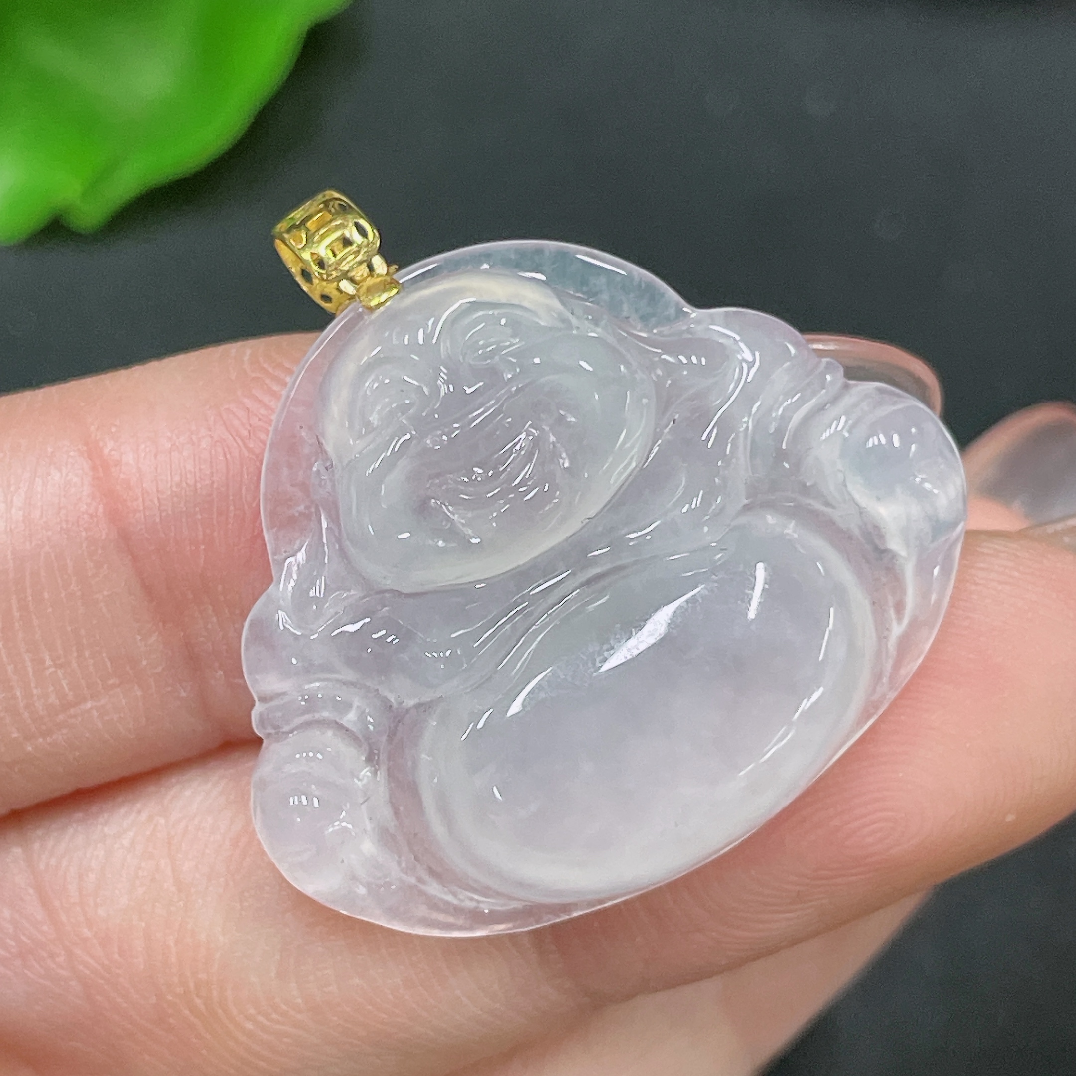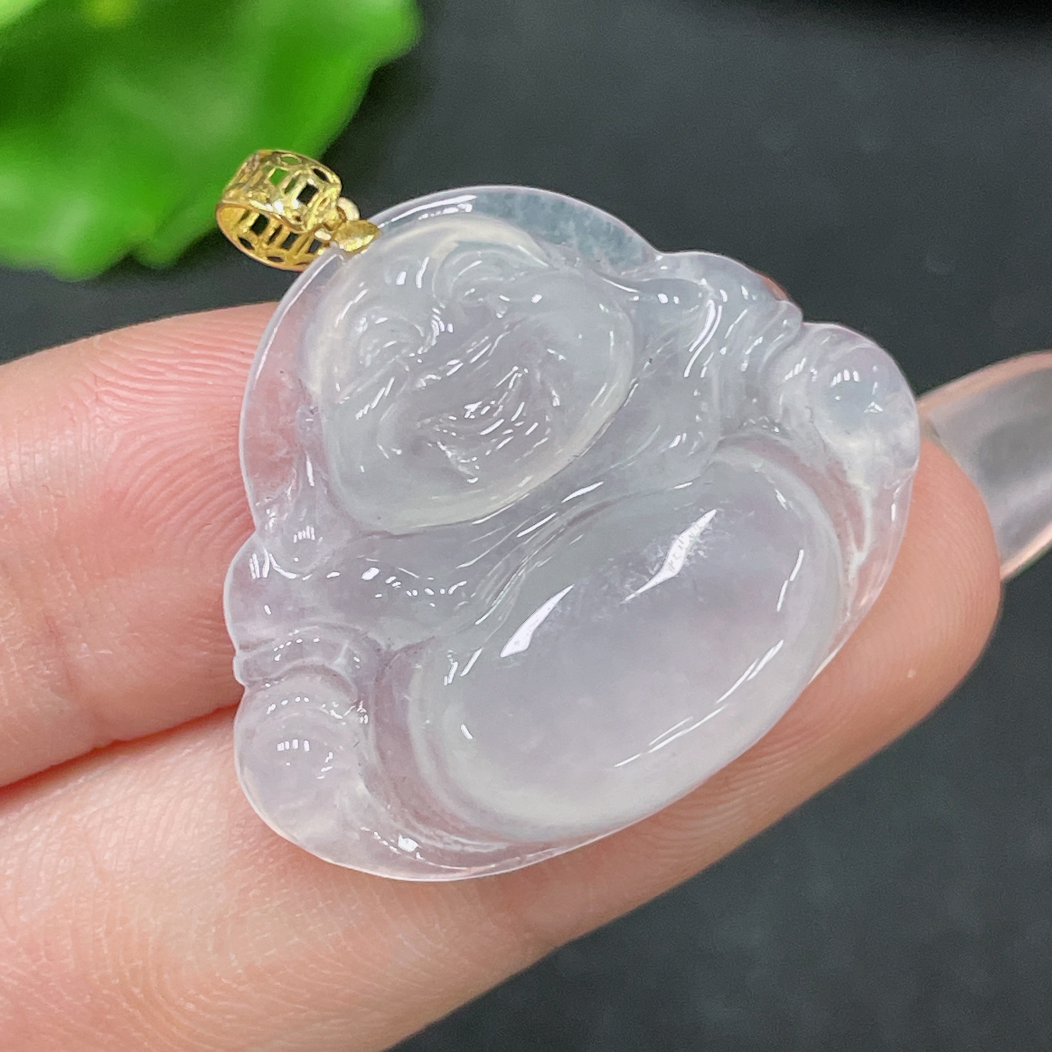 Jadeite Pendant Buddha with 18k Bezel Total Weight Approx. 4.74g