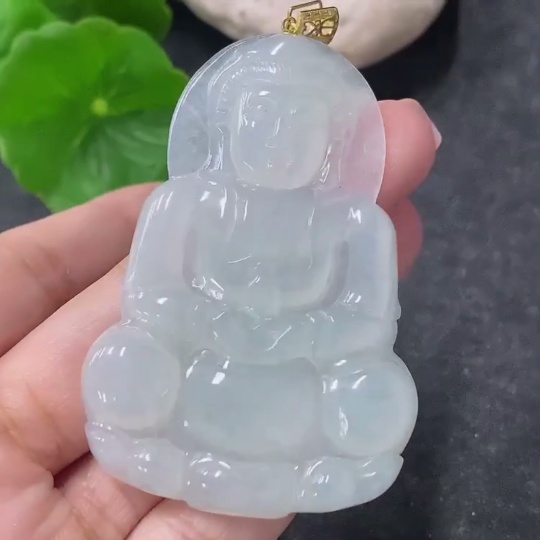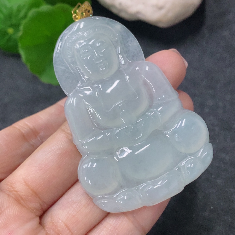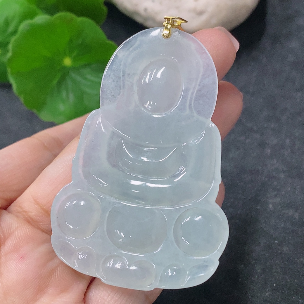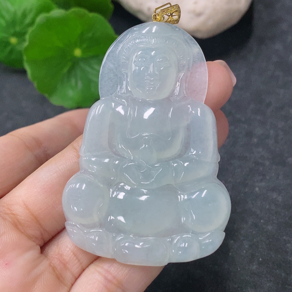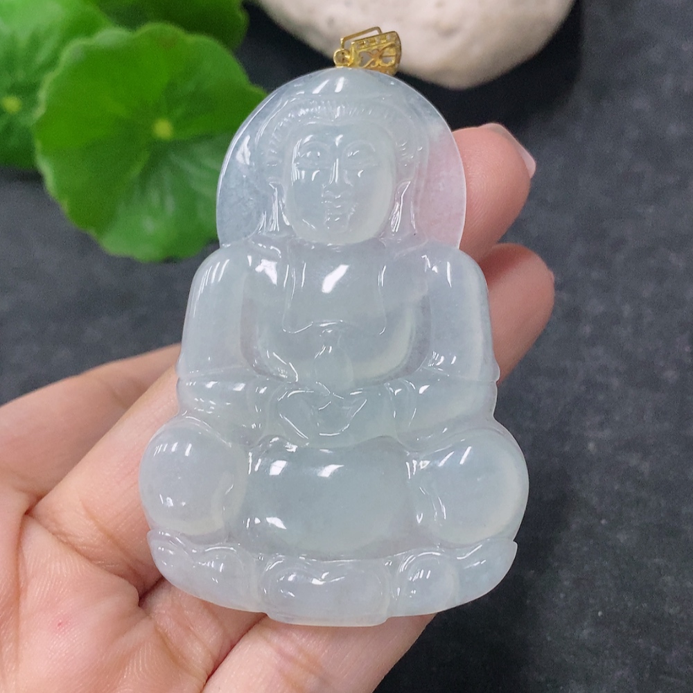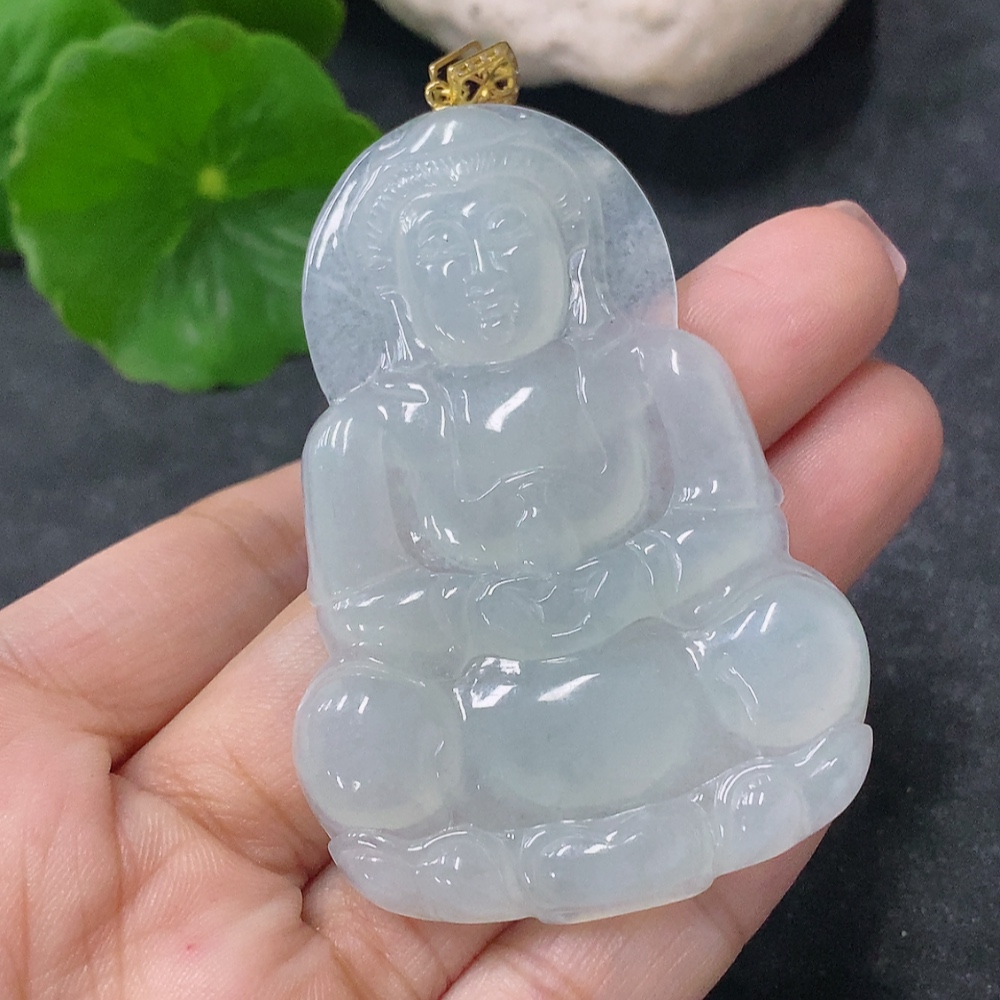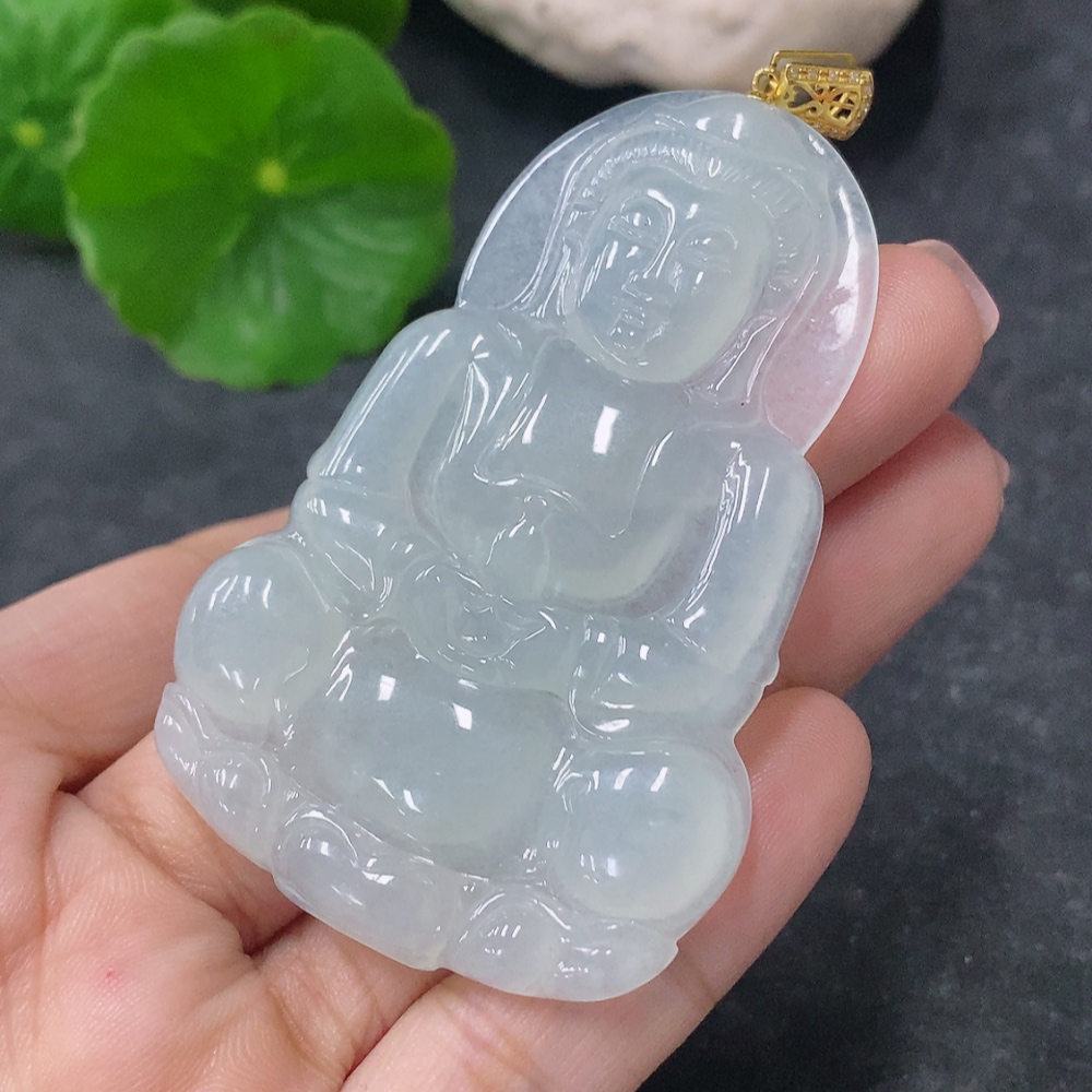 Jadeite Pendant Guanyin with 18K Gold and Diamond Accents, Total Weight Approximately 19.84g