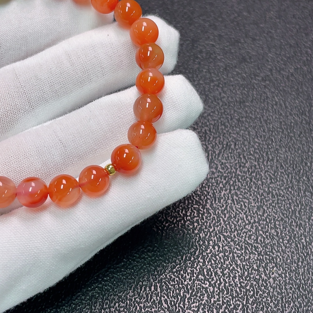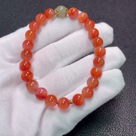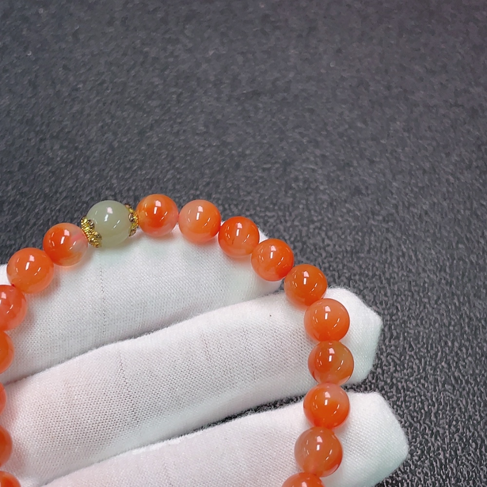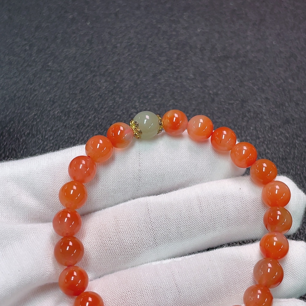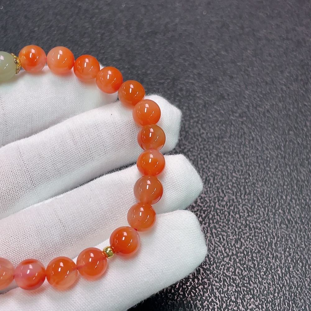 Nanzhu Agate Bracelet with Visible Organic Matter, Total Weight Approx. 15g, Size 7.4mm, Paired with Hetian Jade, Beads Gold Content 99%, Others Non-Gold