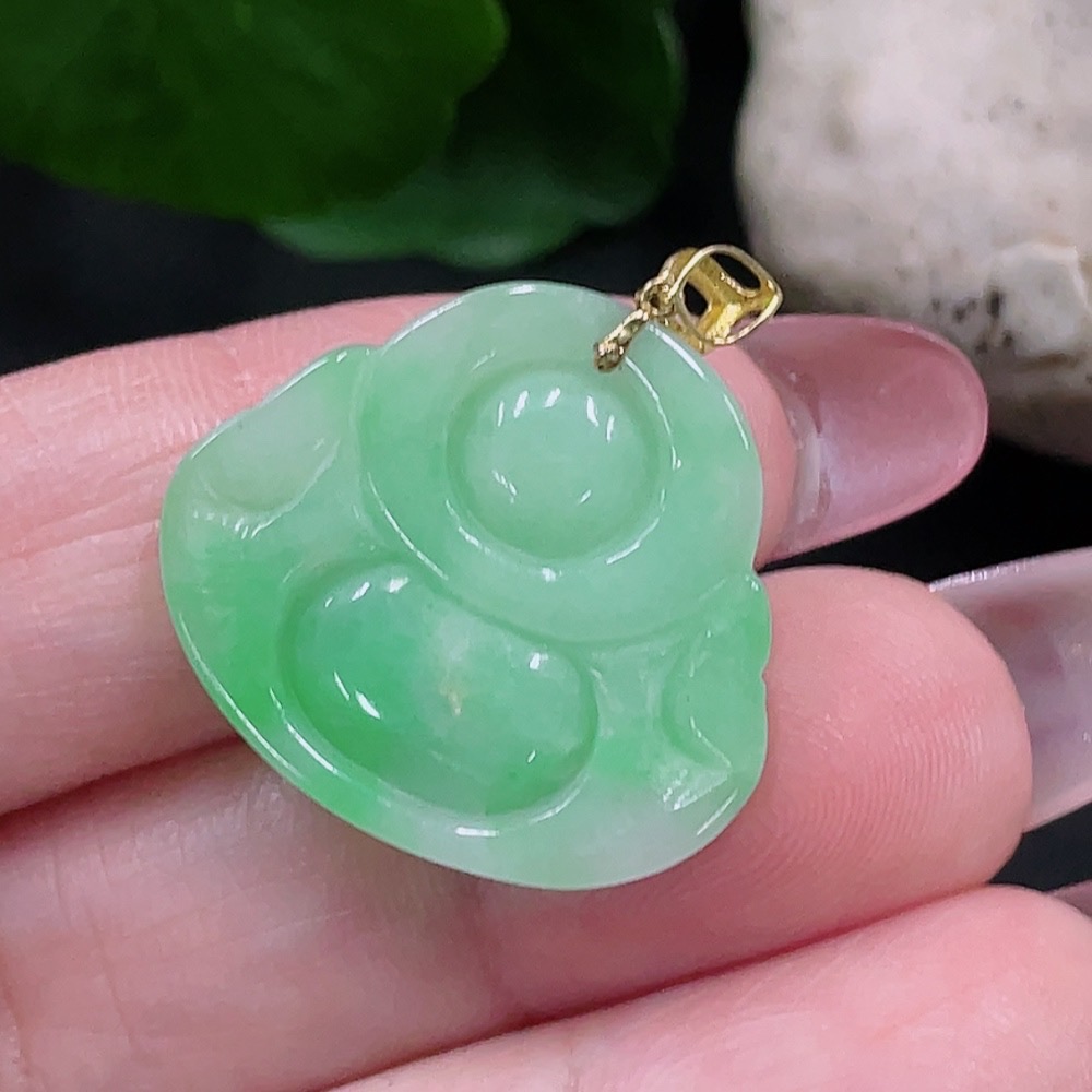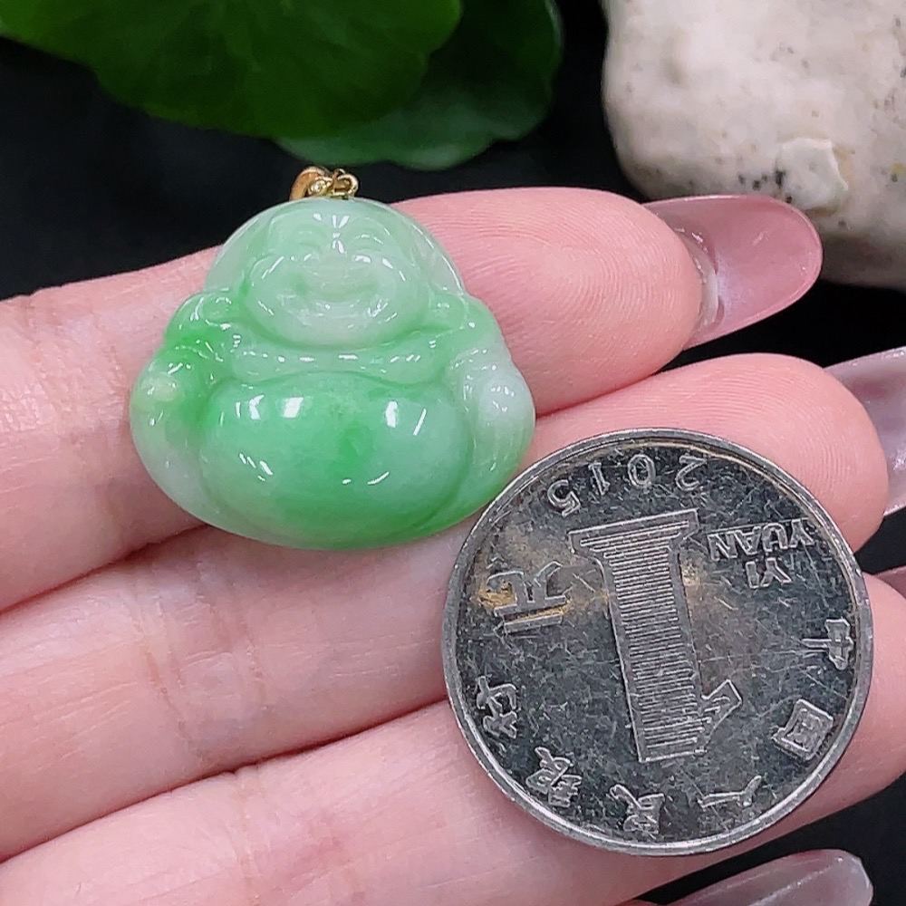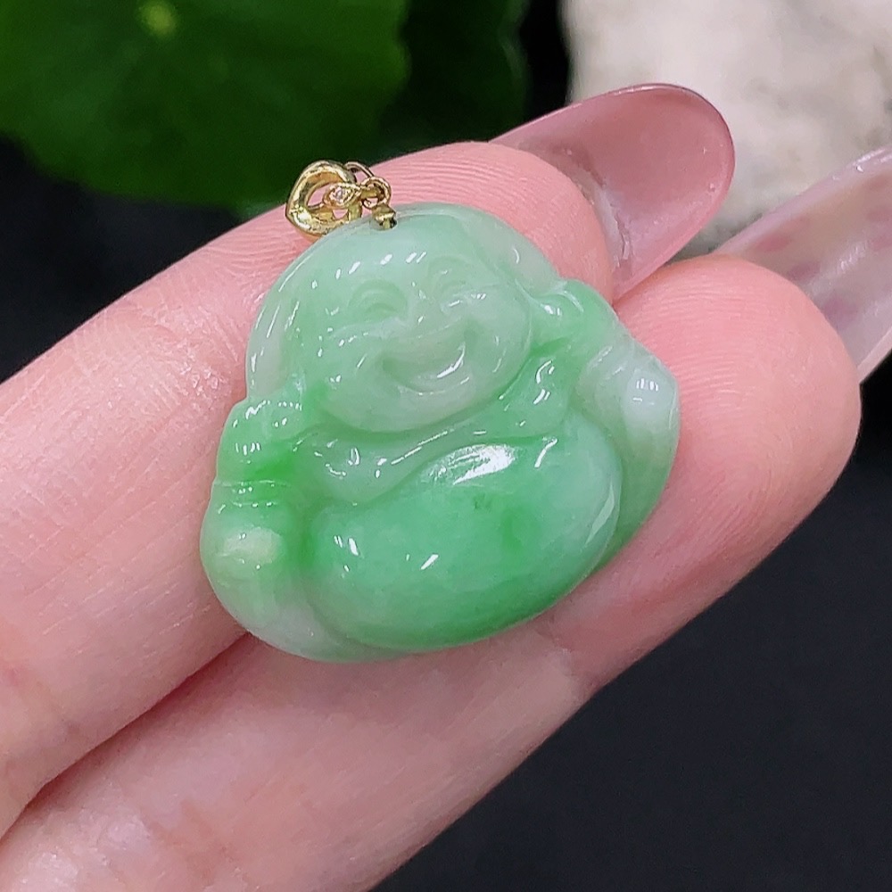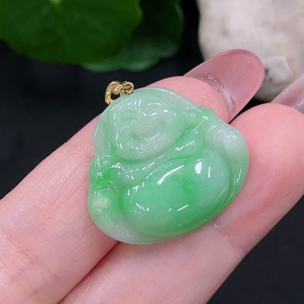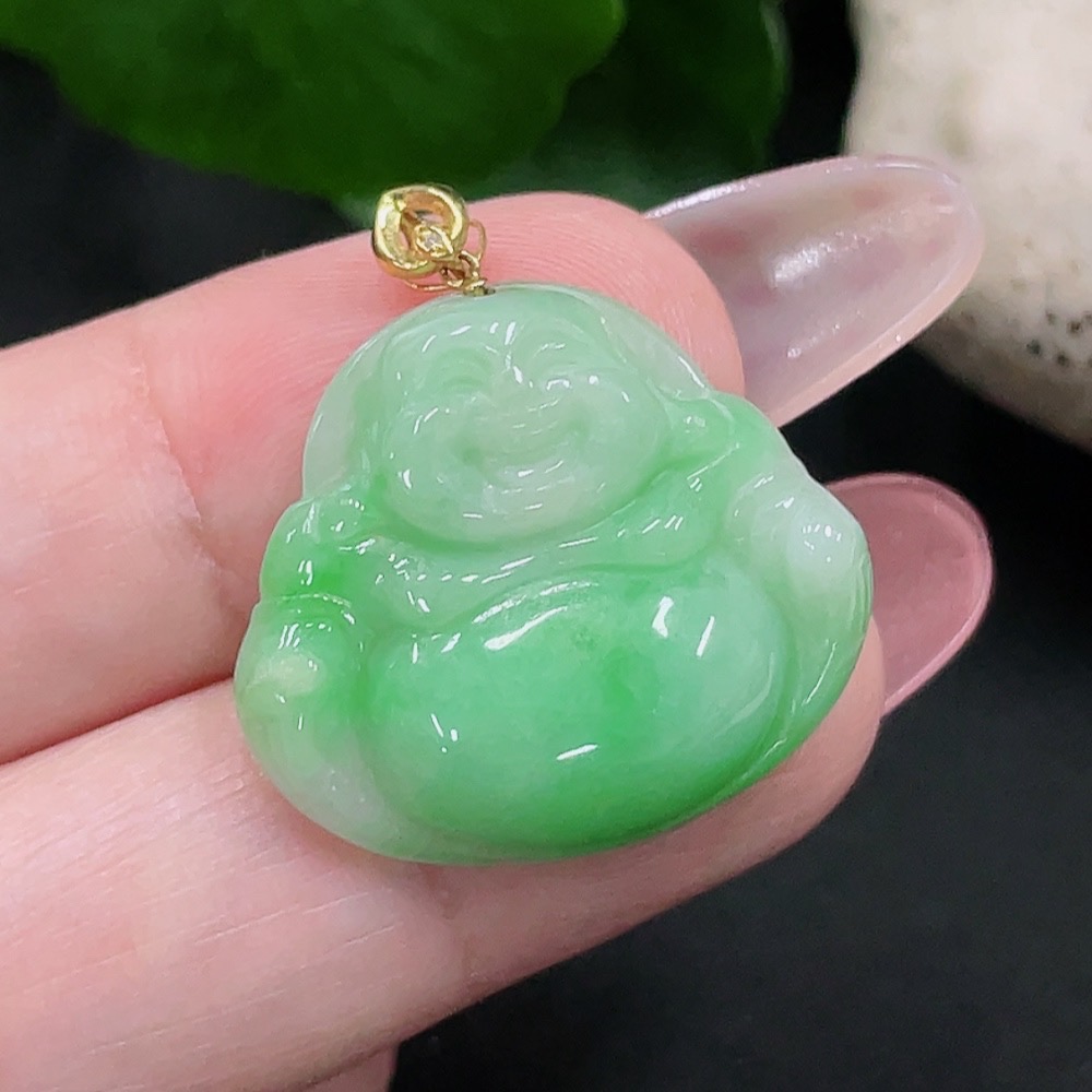 Jadeite Buddha Pendant 18K Gold Total Weight Approx. 4g