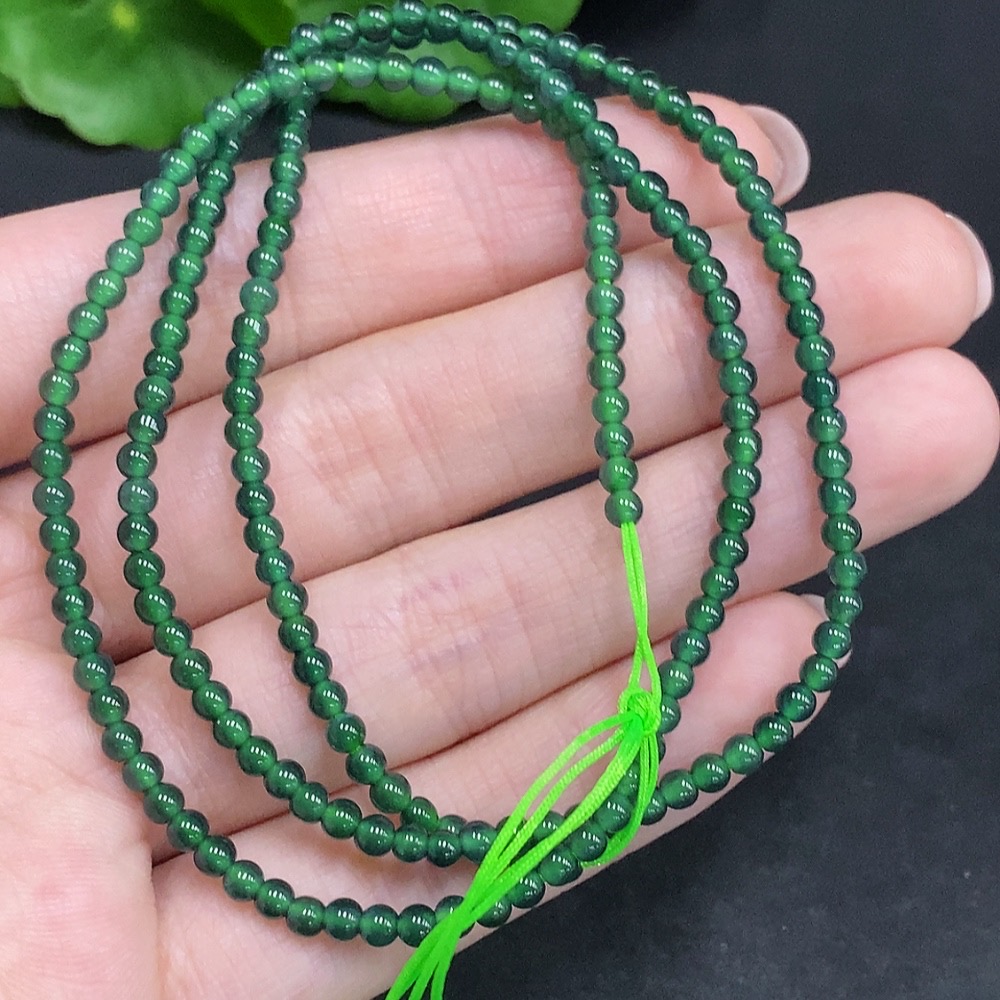 Jadeite Bead Necklace, Total Weight Approx. 8g, Bead Size Approx. 2.8mm