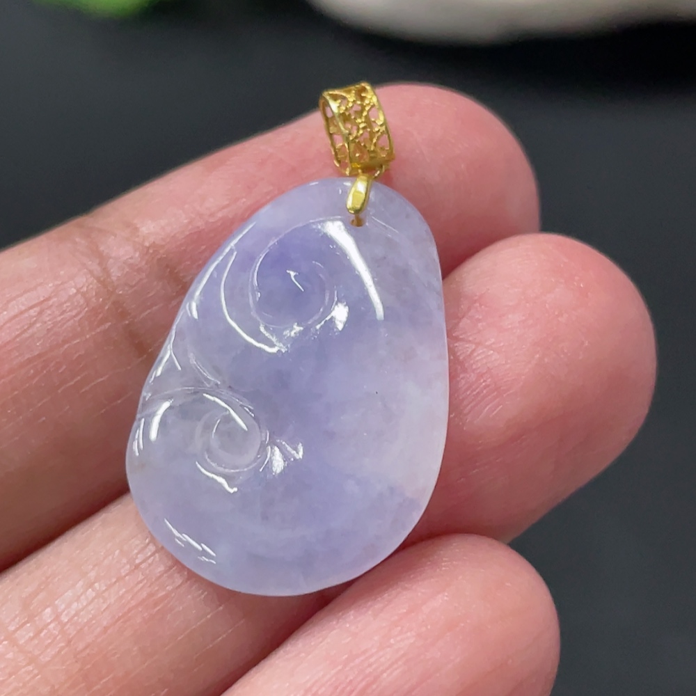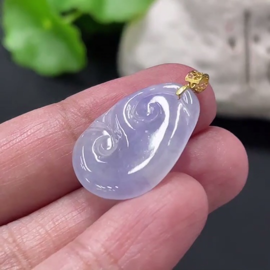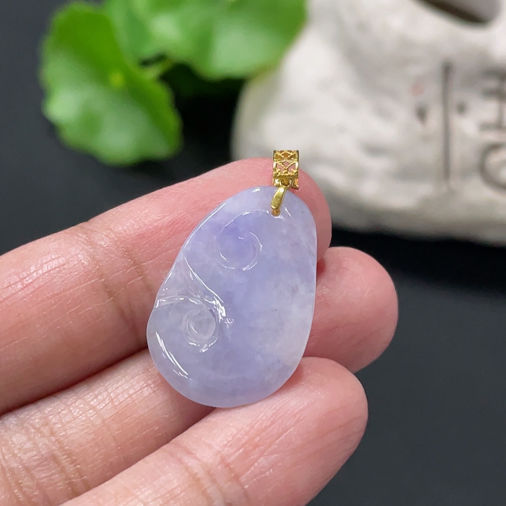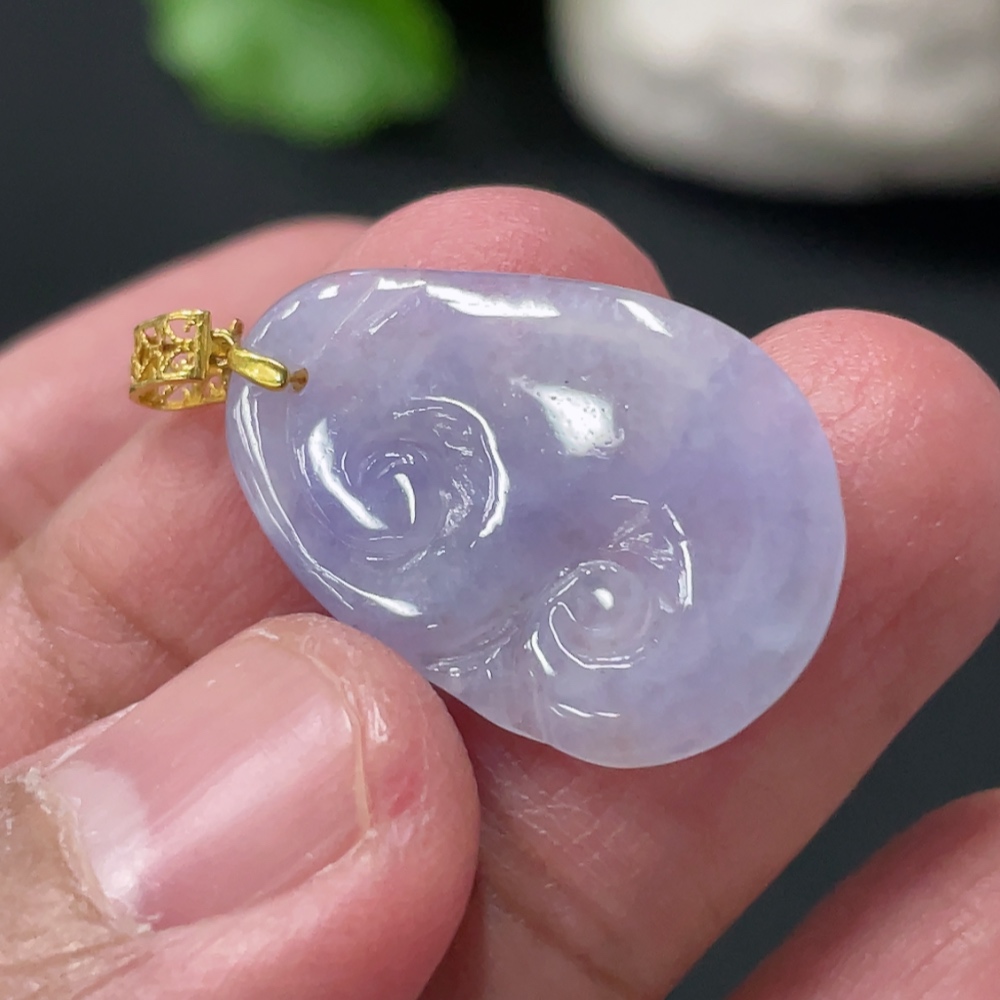 Jadeite Ruyi Pendant with 18k Gold Clasp, Total Weight Approx. 1.6g