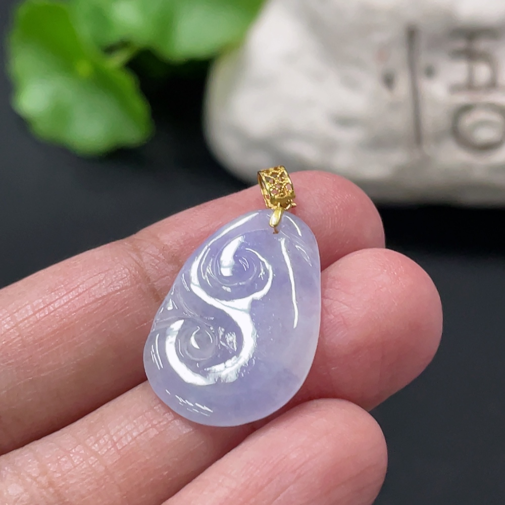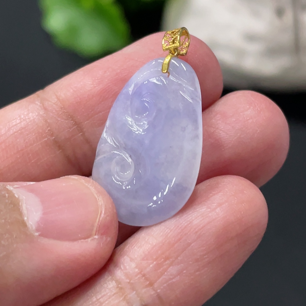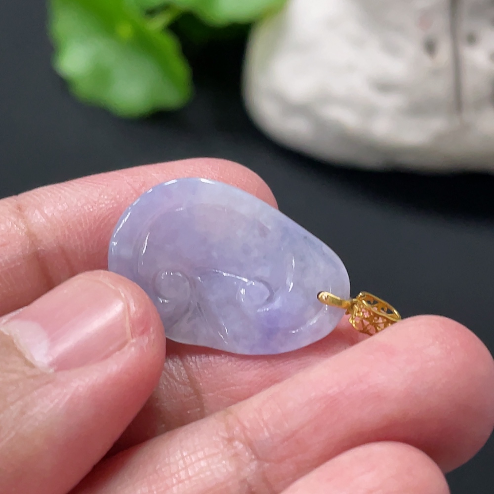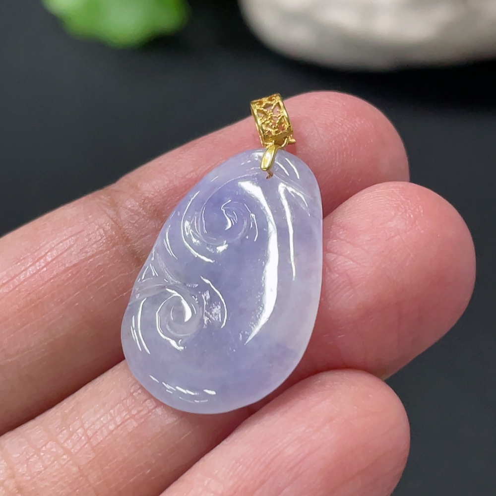 Jadeite Ruyi Pendant with 18k Gold Clasp, Total Weight Approx. 1.6g