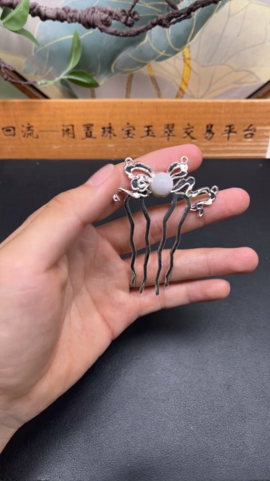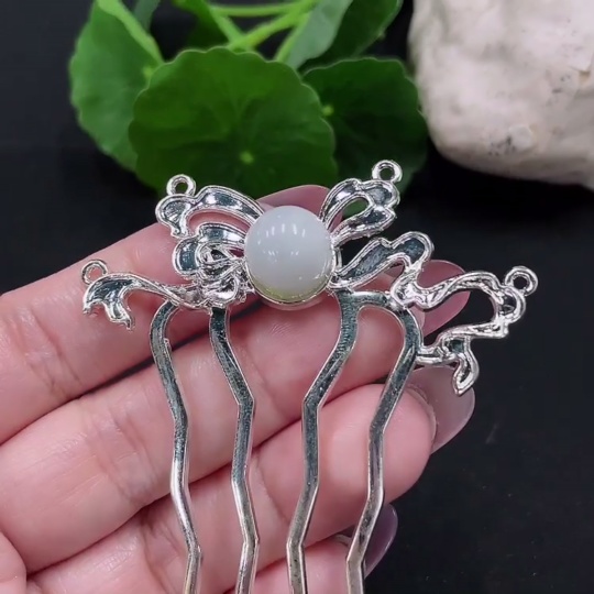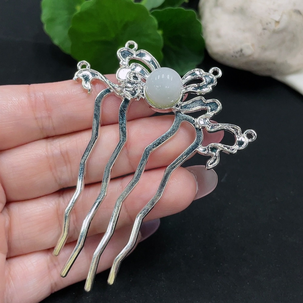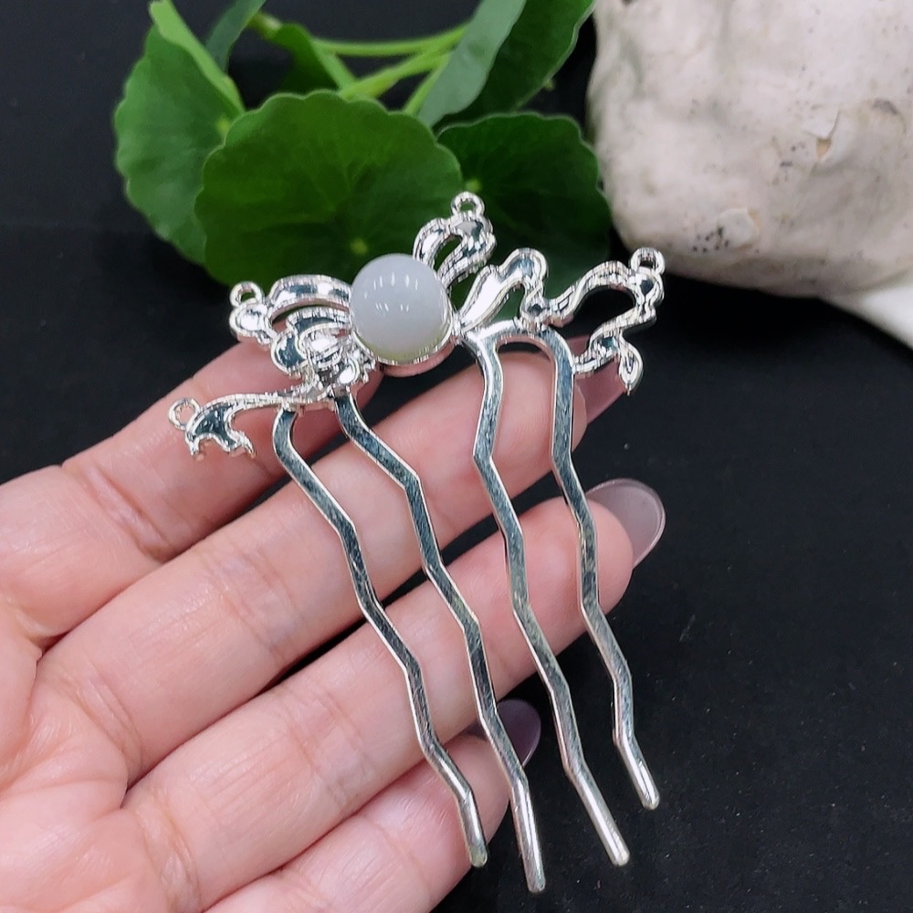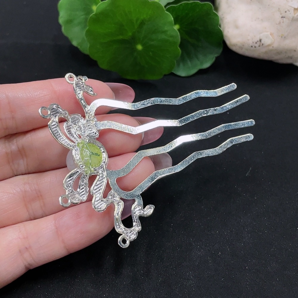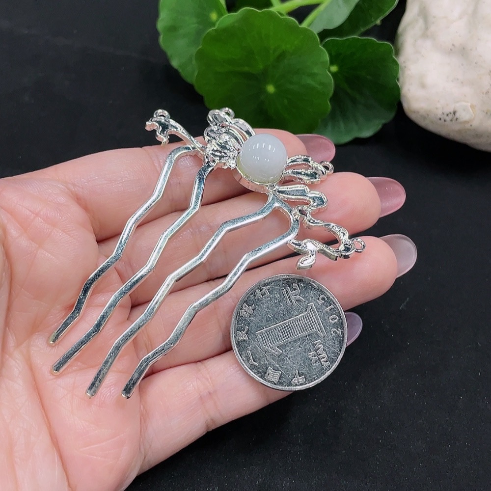 Jadeite Hair Accessory Non-Gold Inlaid Total Weight Approx. 9.43g