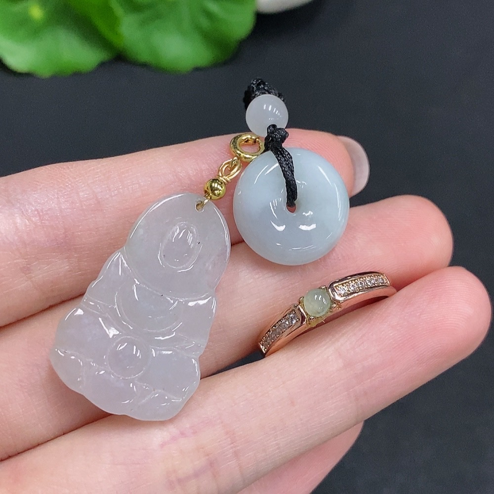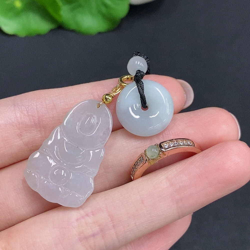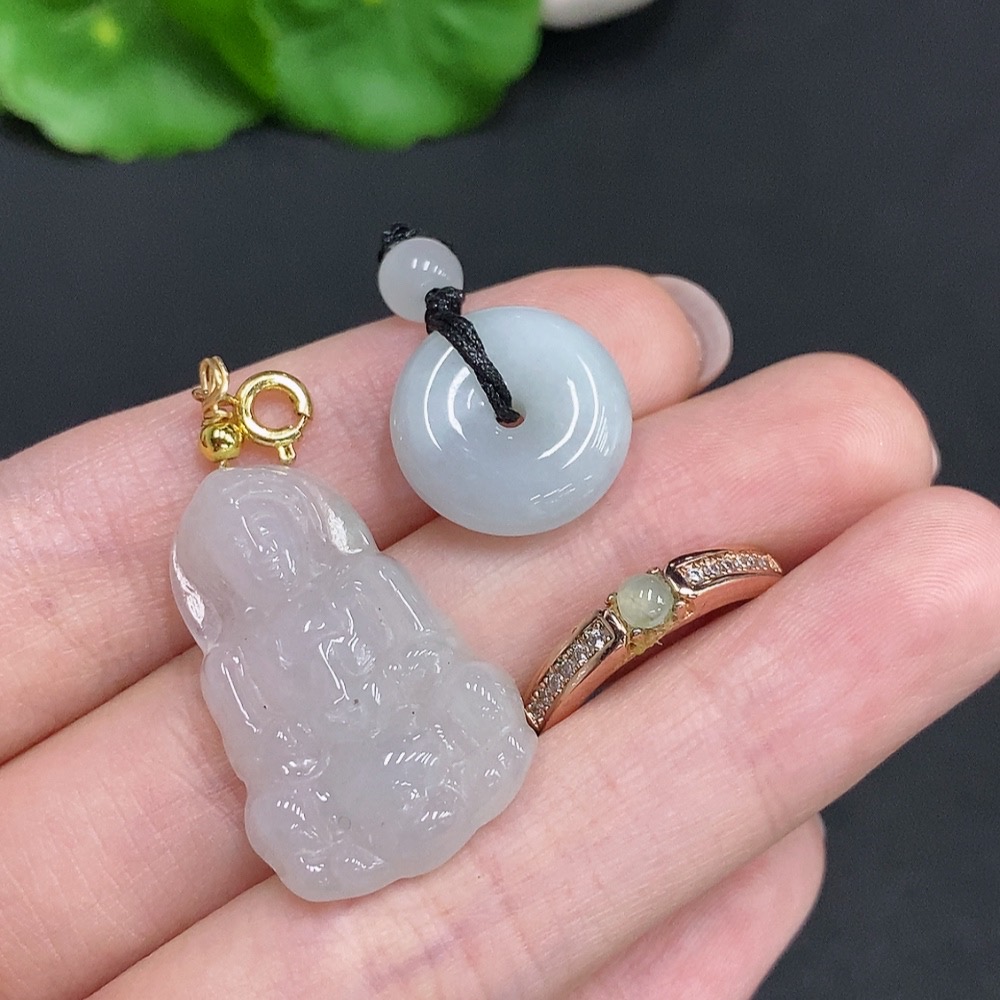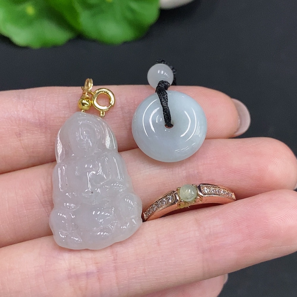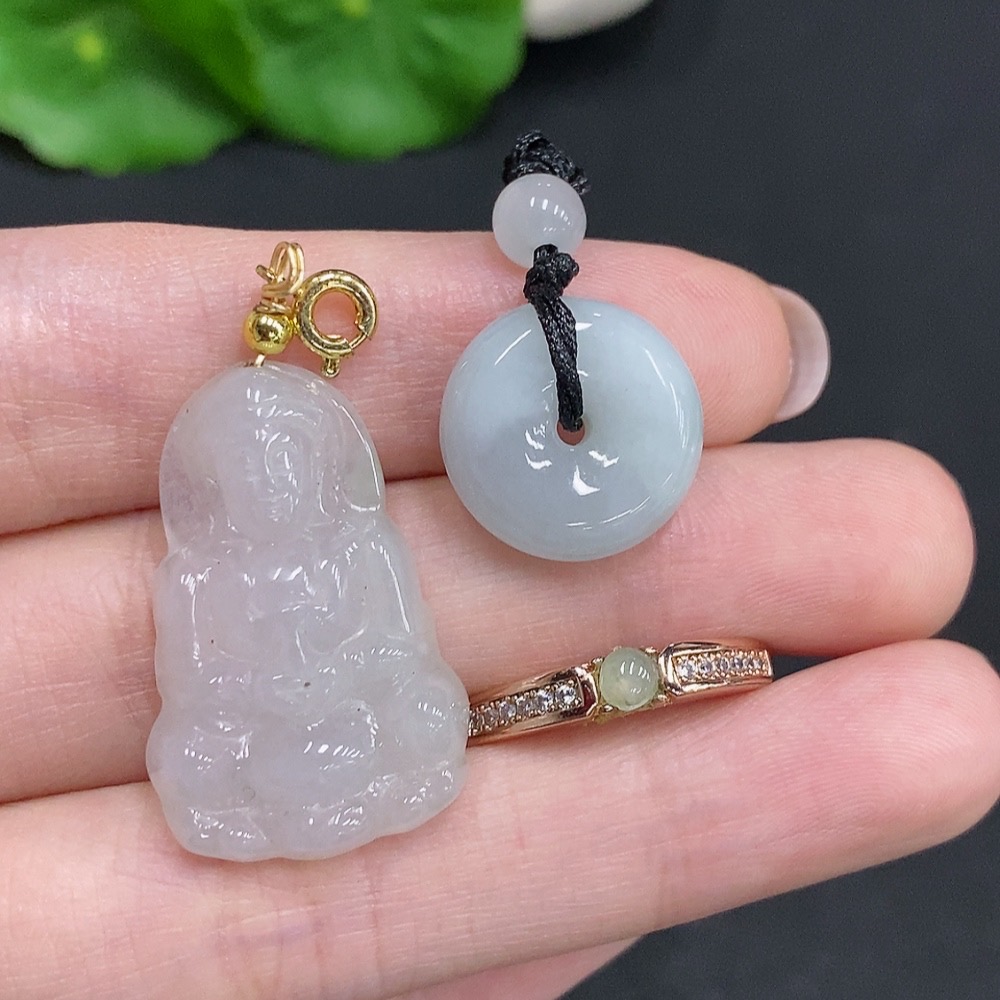 Jadeite Pendant + Cabochon Ring Sell as a Lot Non-Gold Setting Adjustable Size