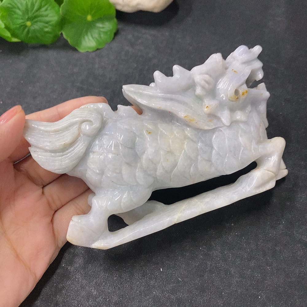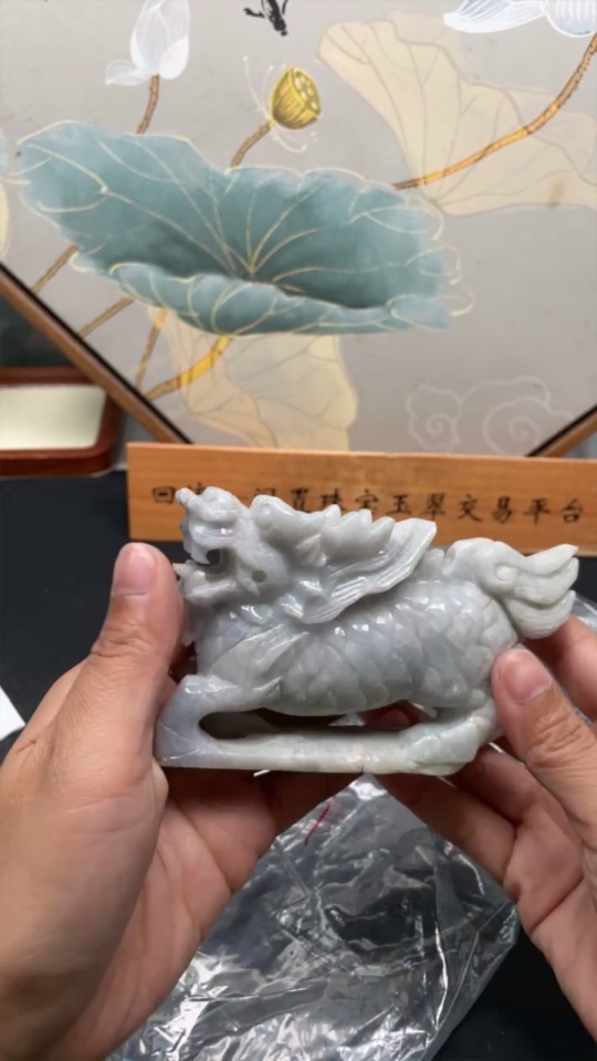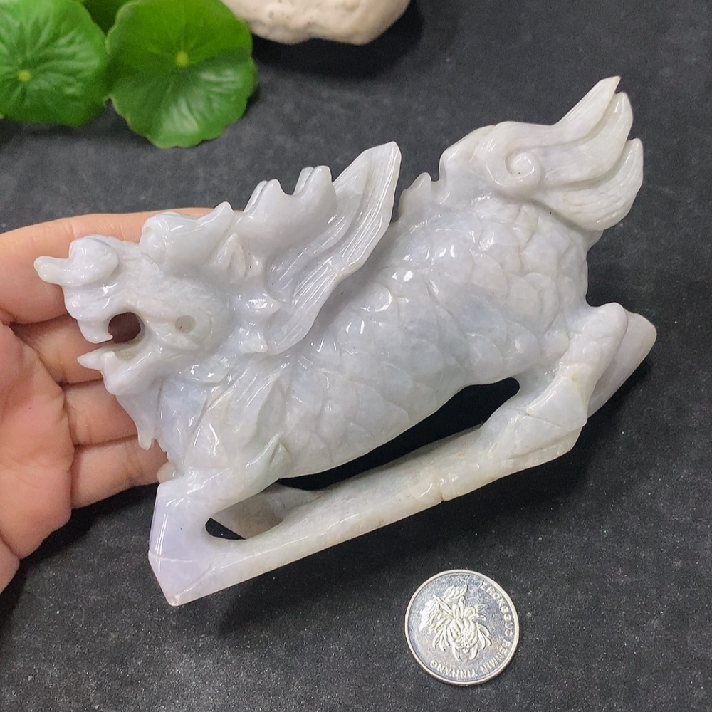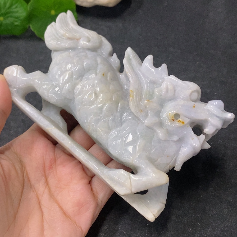 Jadeite Ornament Auspicious Beast Total Weight Approx. 369g