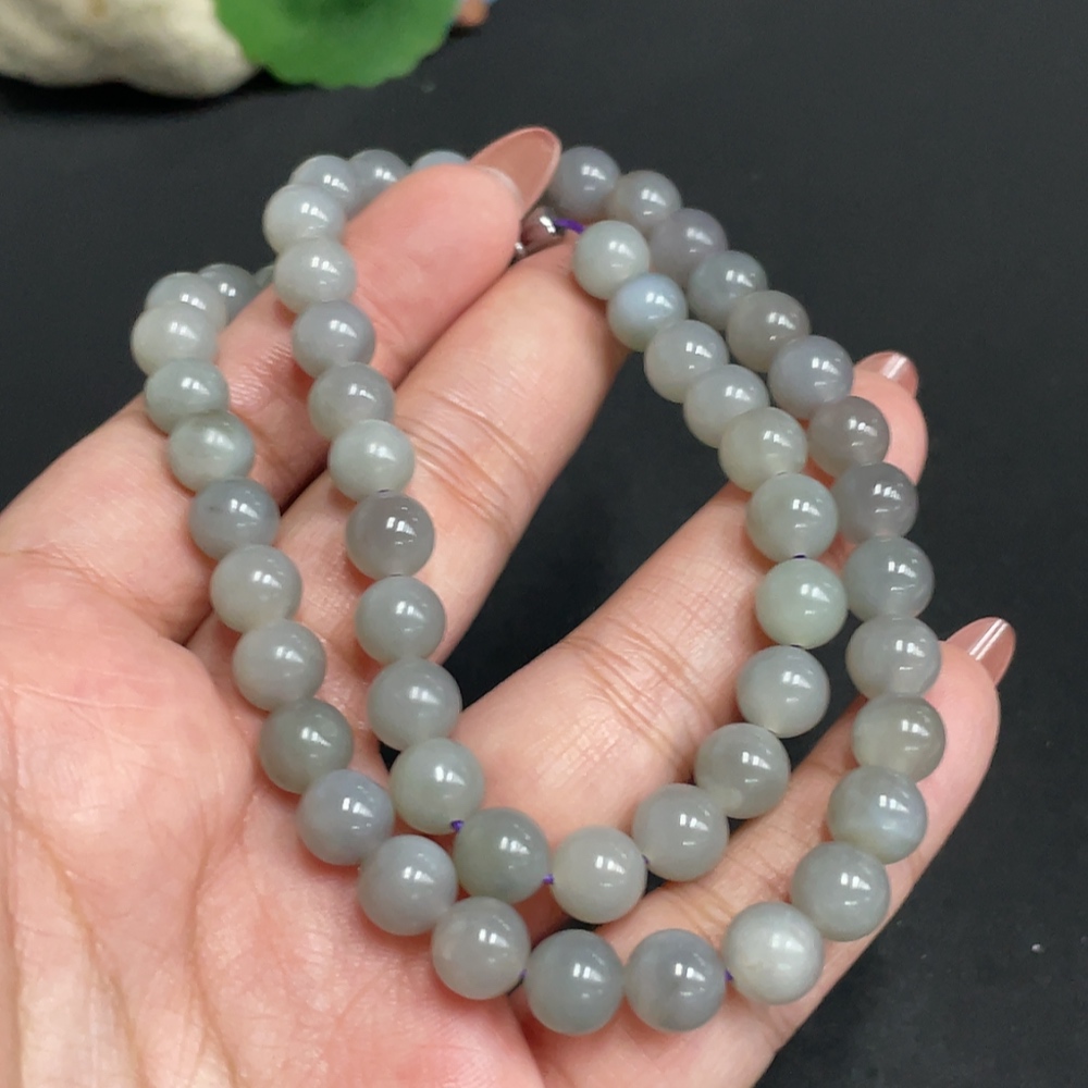Hetian Jade Bead Necklace Approx. 7.7 mm Total Weight Approx. 43g